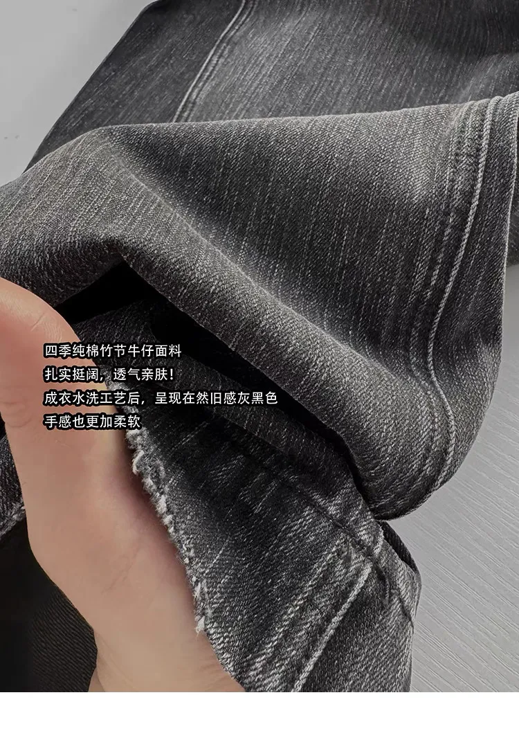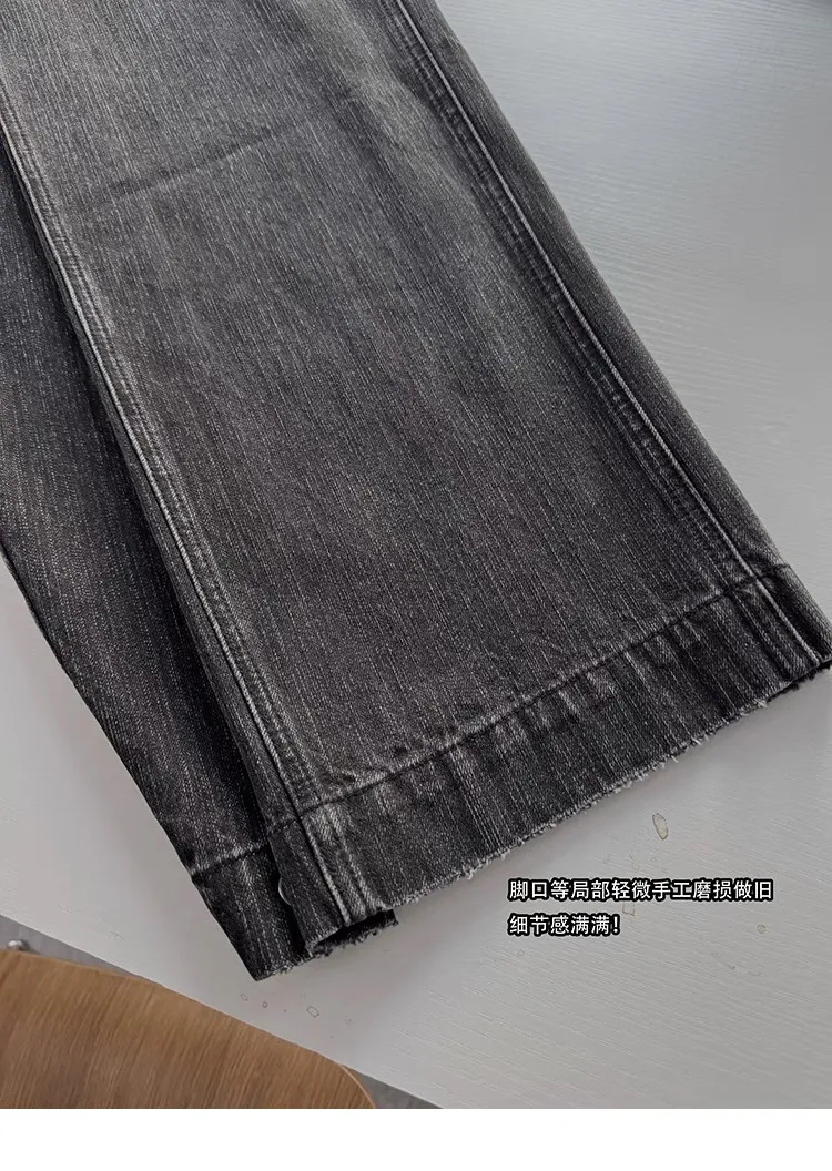AUROCEAN 收腰廓形 竹節紋 牛仔褲(淺灰色)