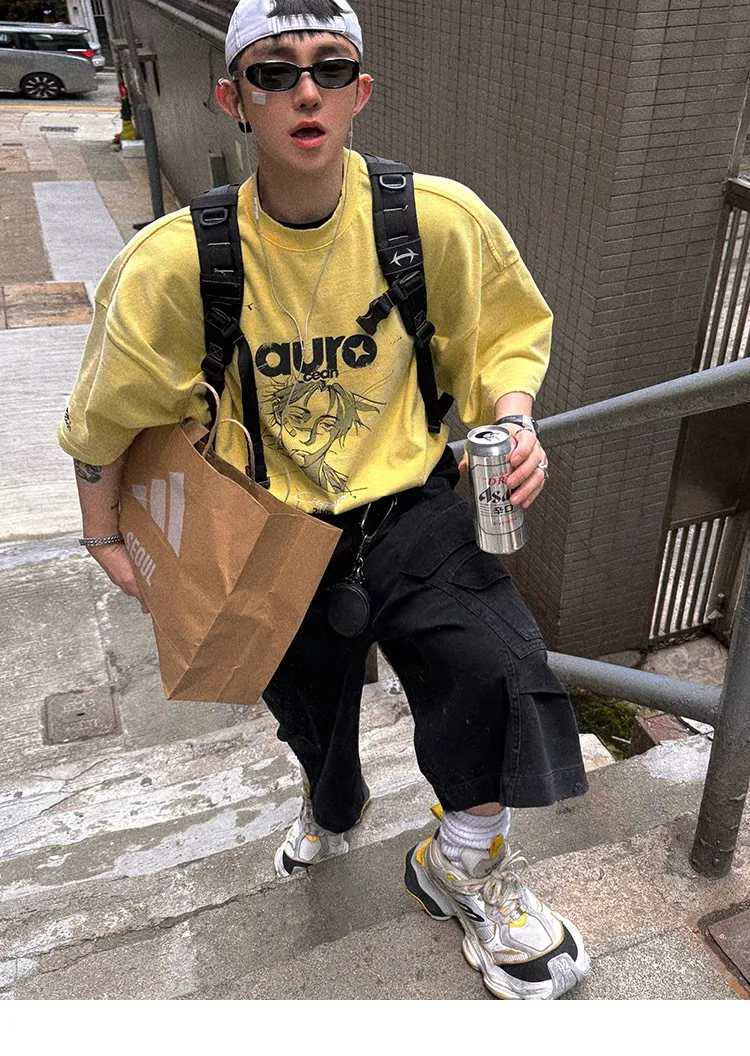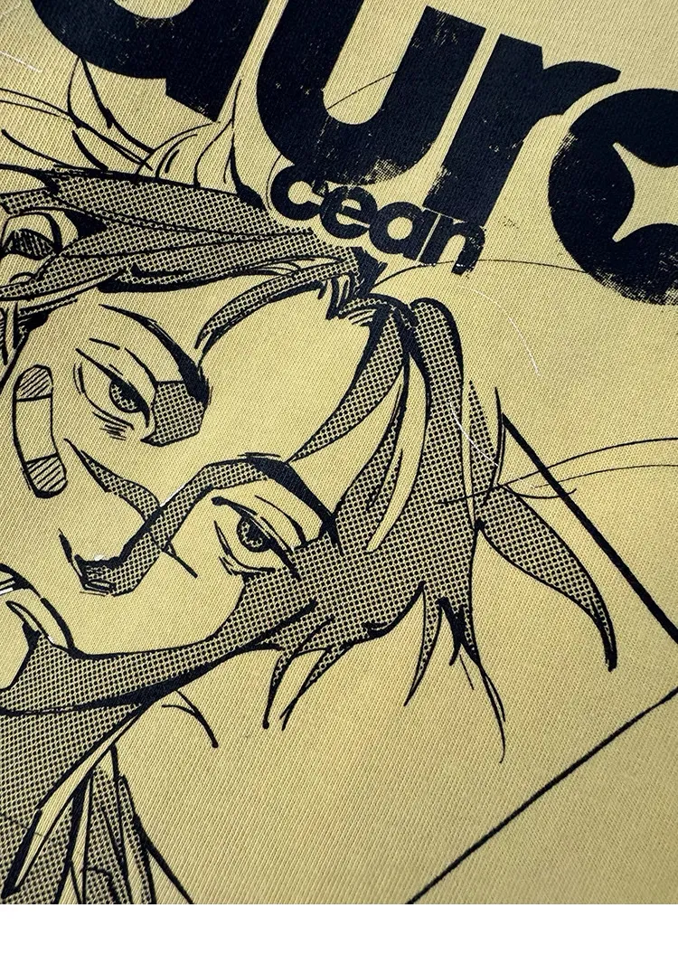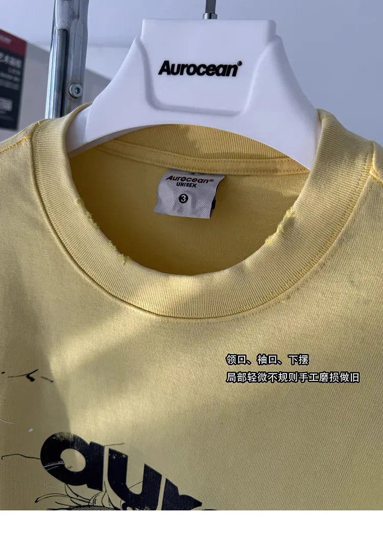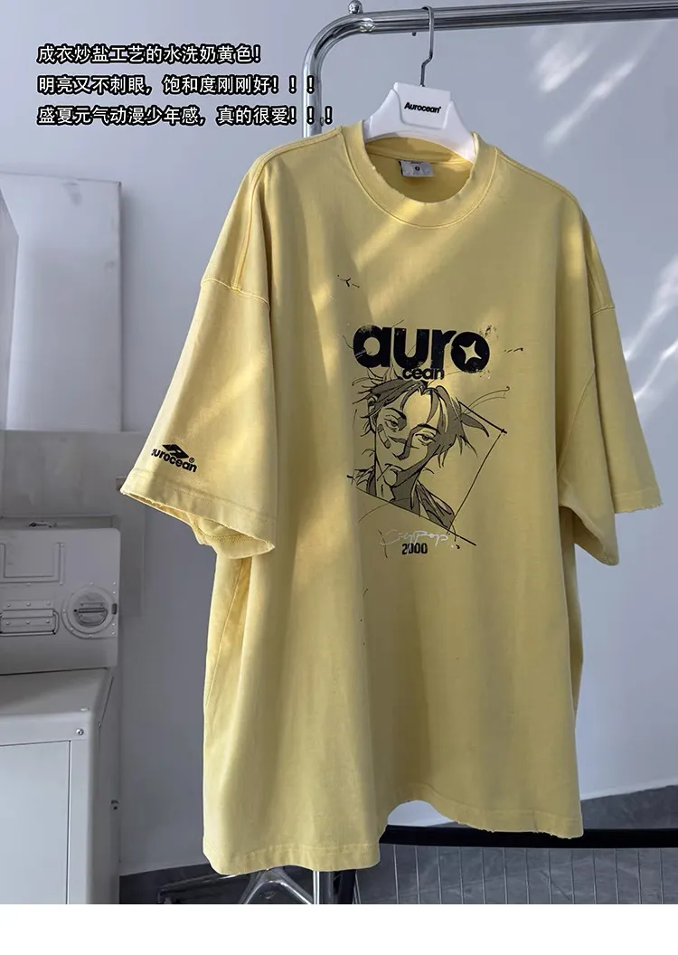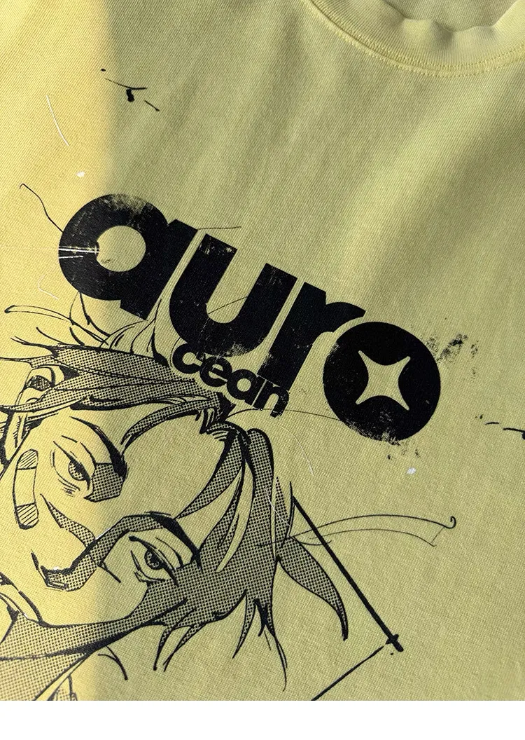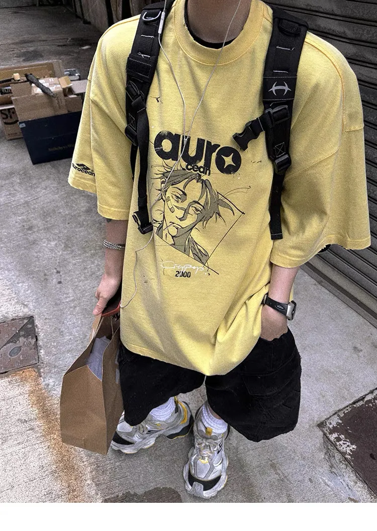AUROCEAN 喪臉脹相 做舊日漫 OVERSIZE 短袖(奶黃色)