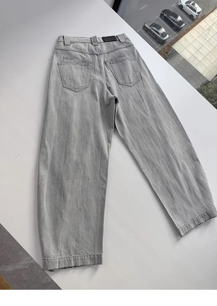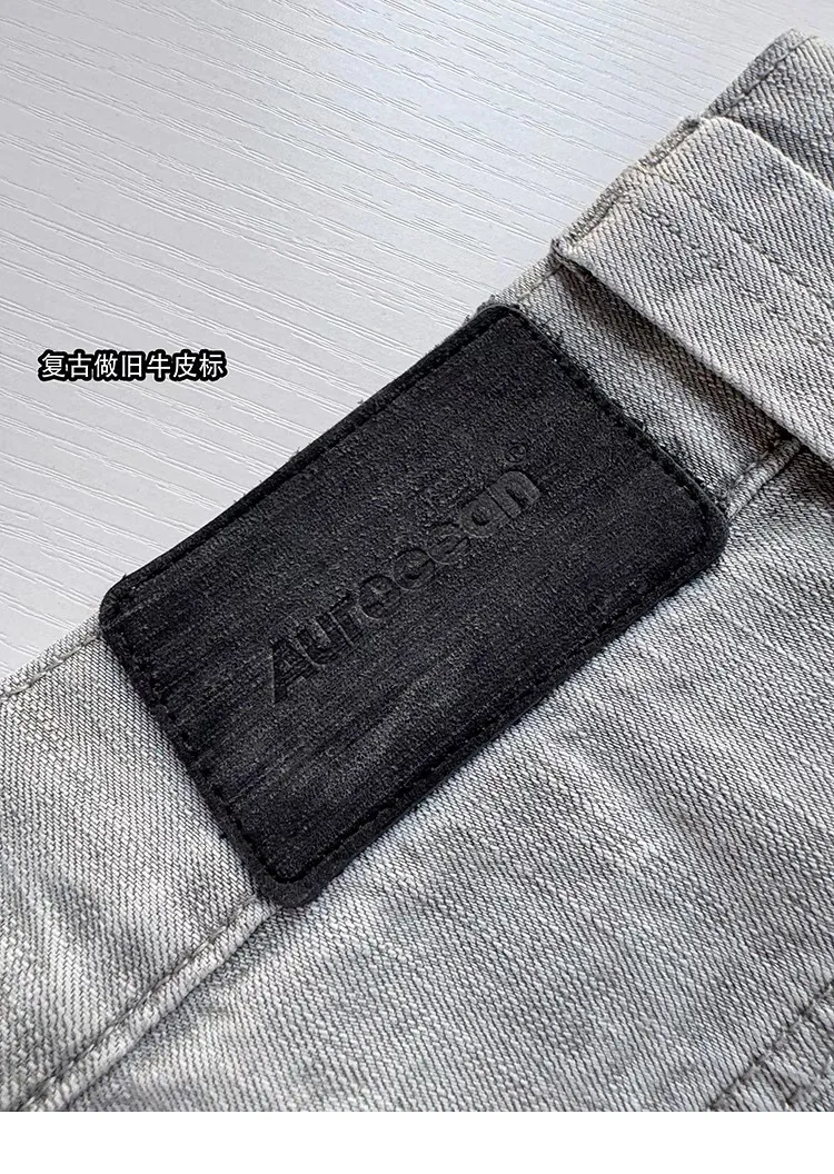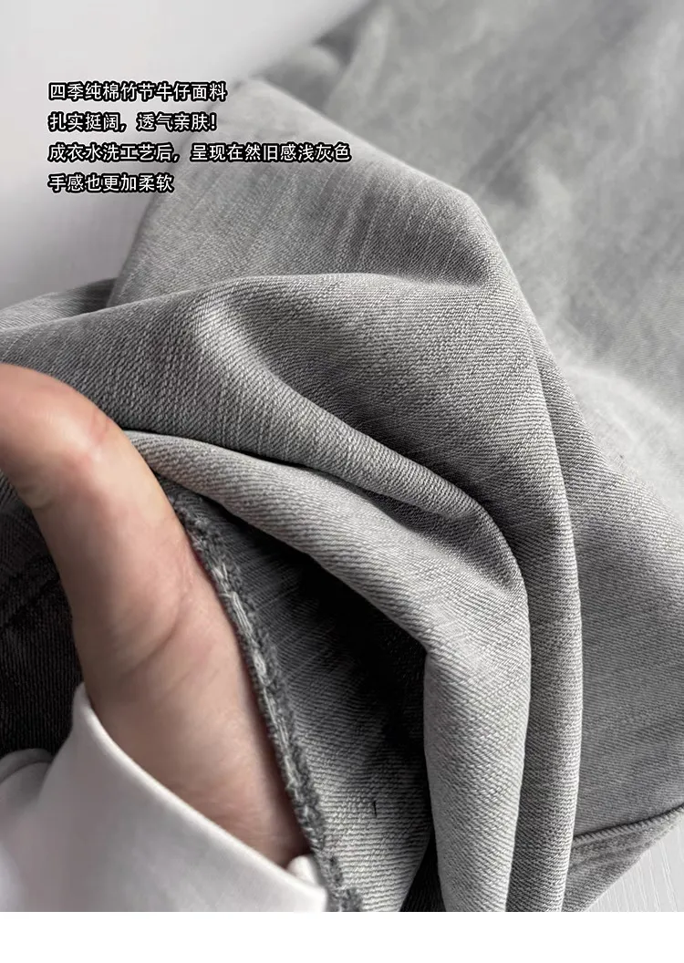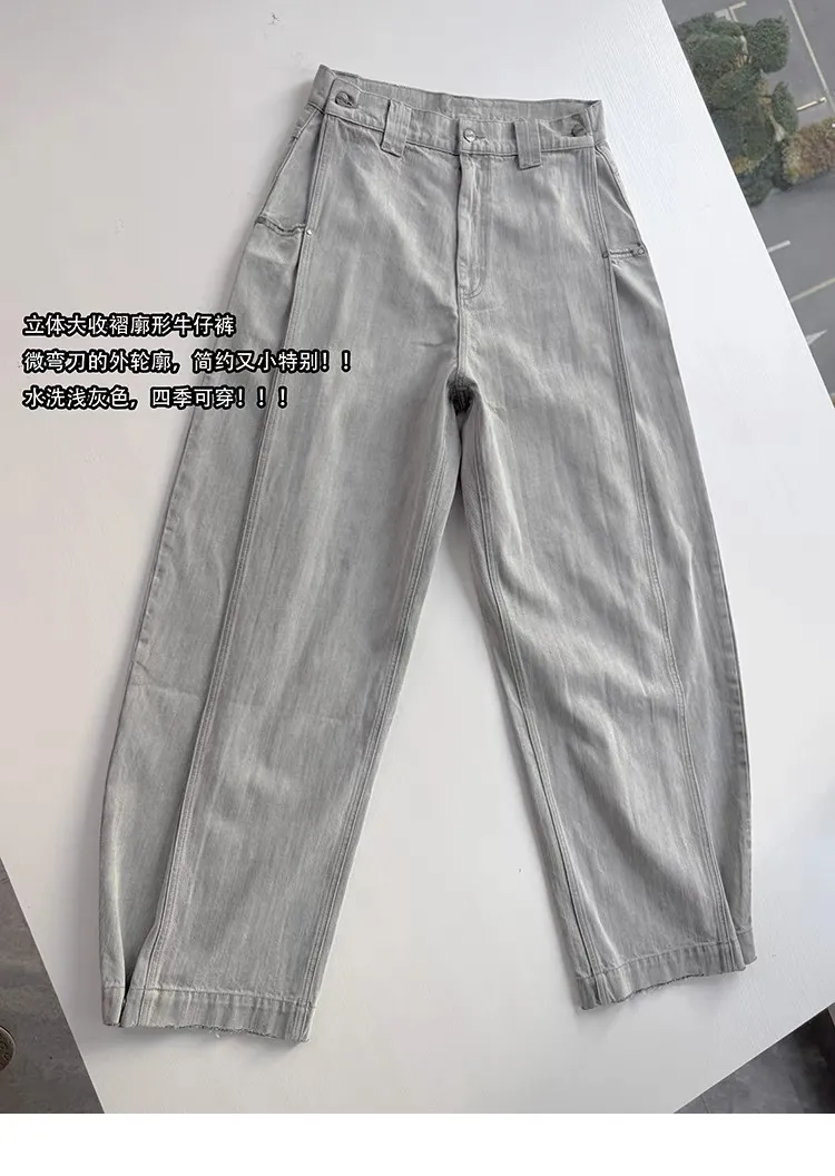 AUROCEAN 收腰廓形 竹節紋 牛仔褲(淺灰色)
