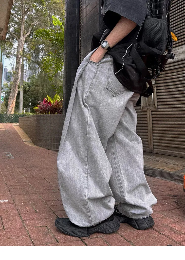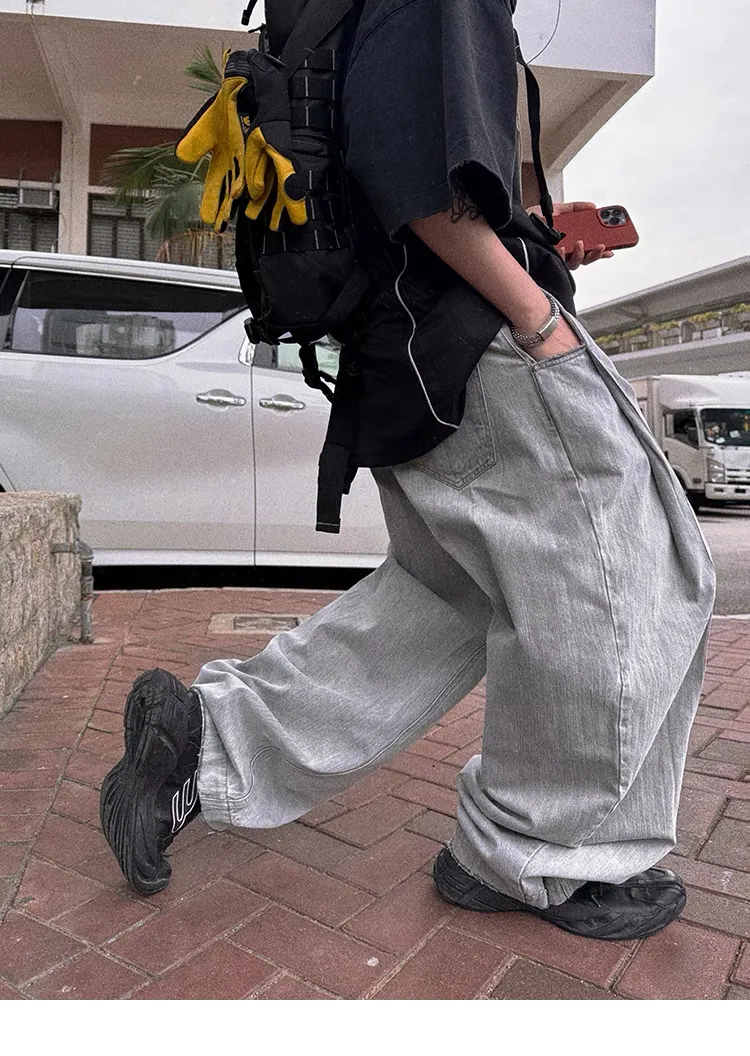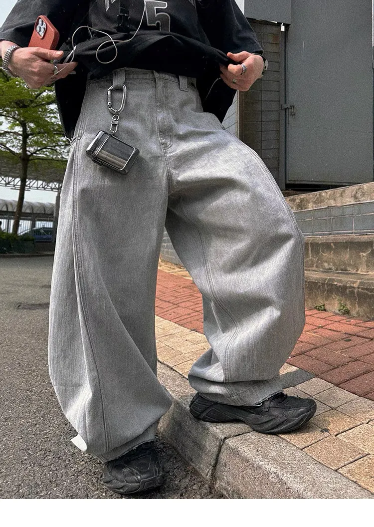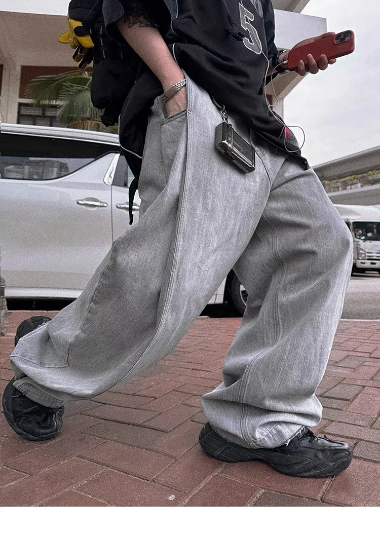 水洗漸層 潑漆 彎刀褲 牛仔褲(水洗灰色)