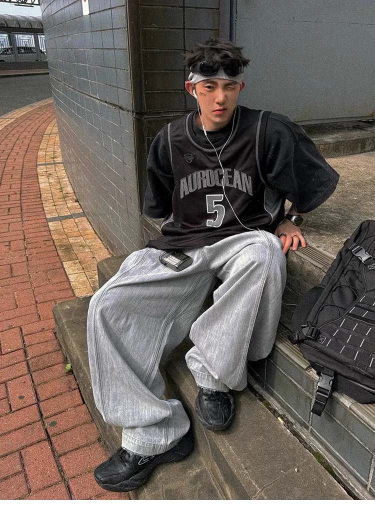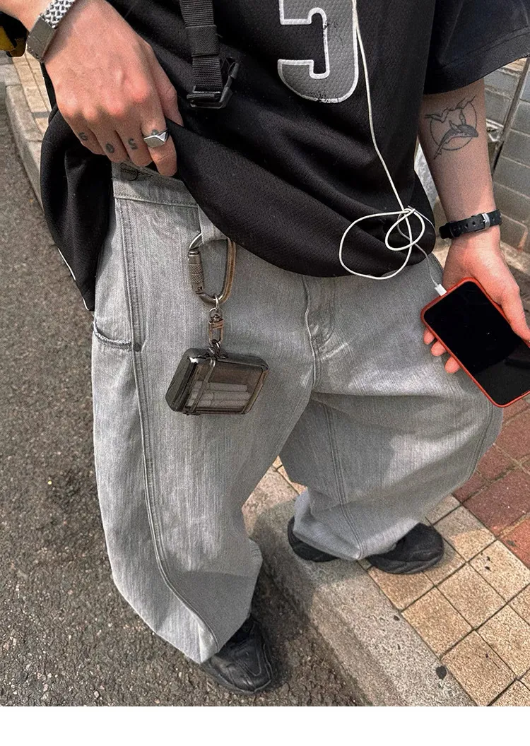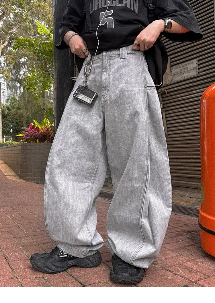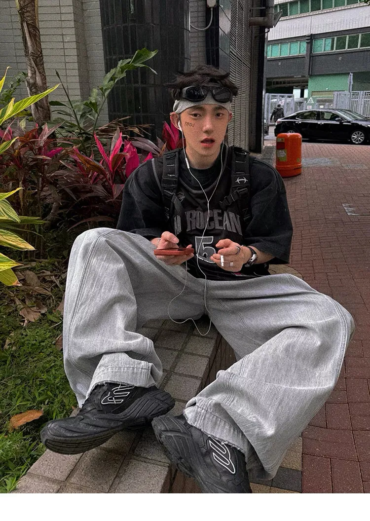 水洗漸層 潑漆 彎刀褲 牛仔褲(水洗灰色)