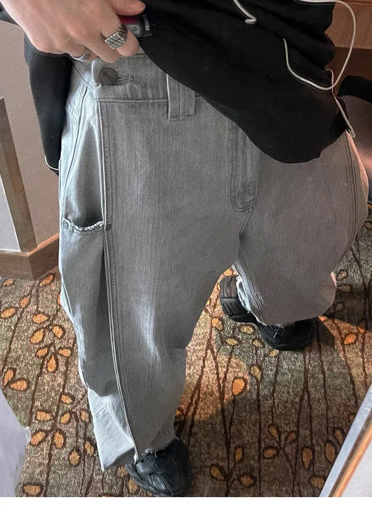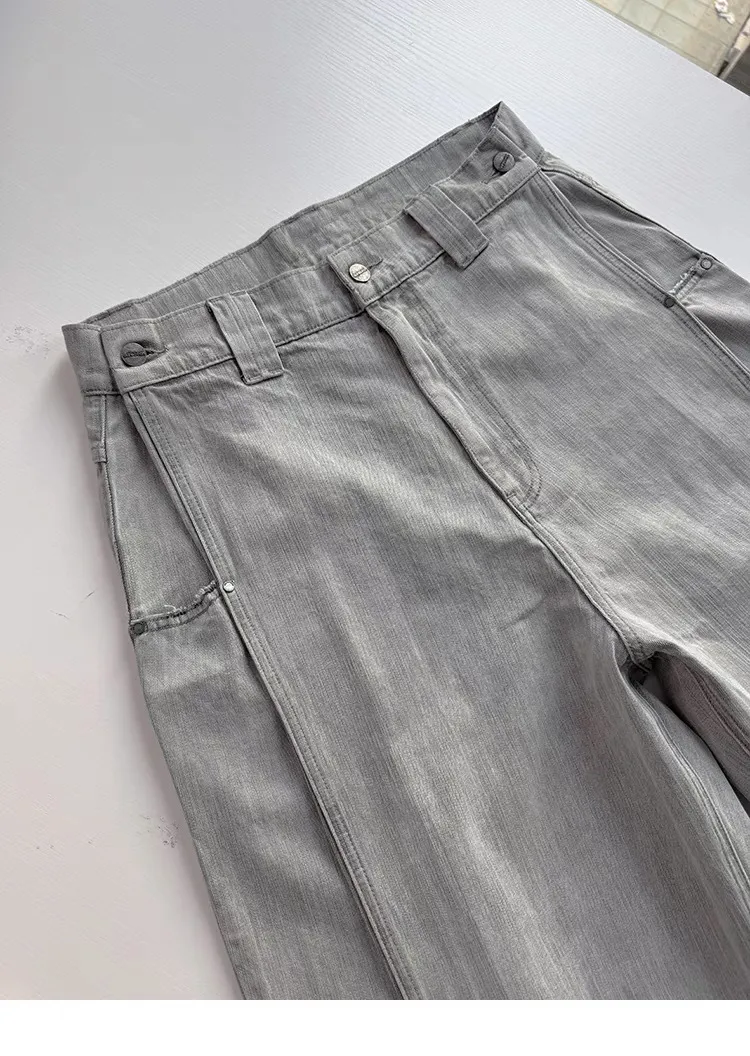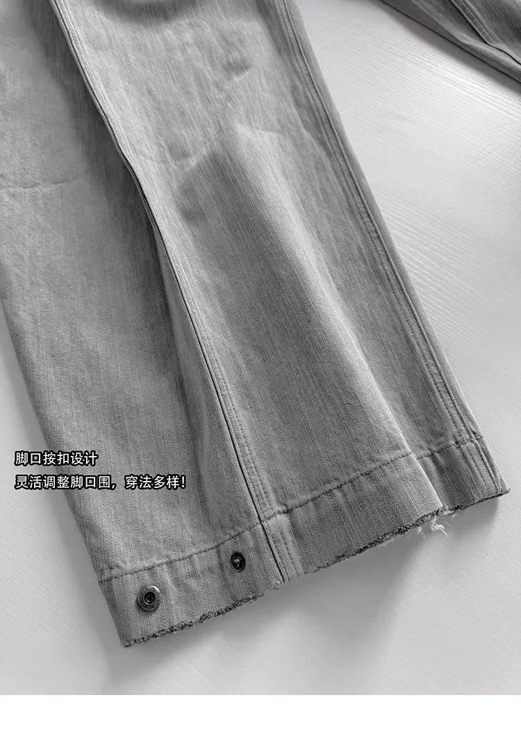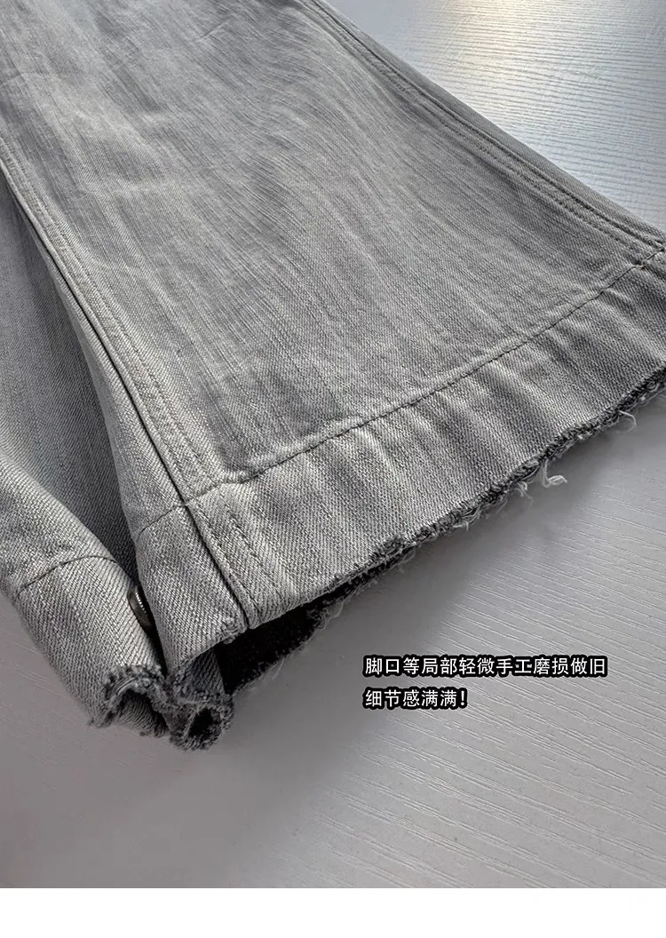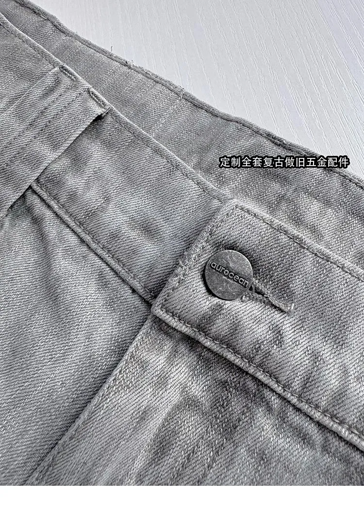 AUROCEAN 雙口袋 做舊破壞 廓形工裝 七分褲(銀灰色)
