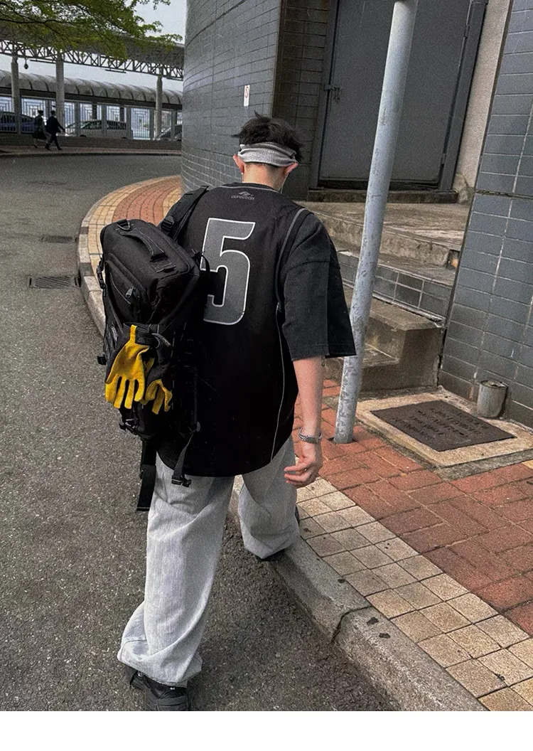 AUROCEAN 雙口袋 水洗做舊 寬大 七分褲(水洗黑色)