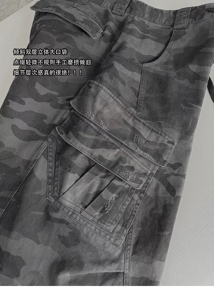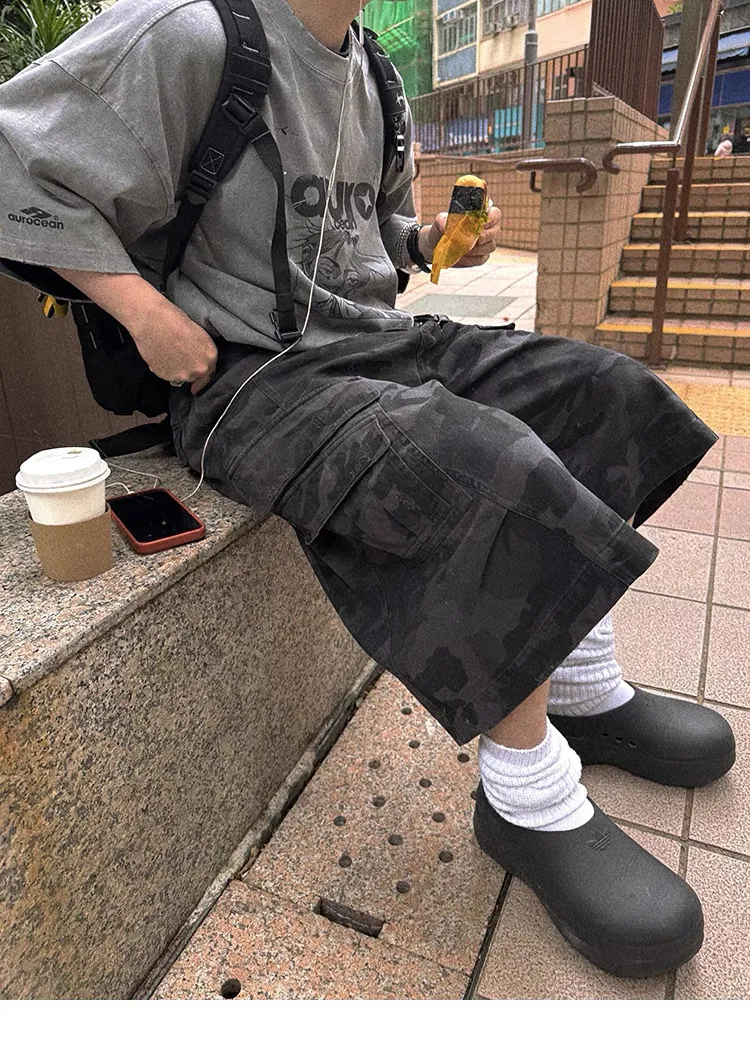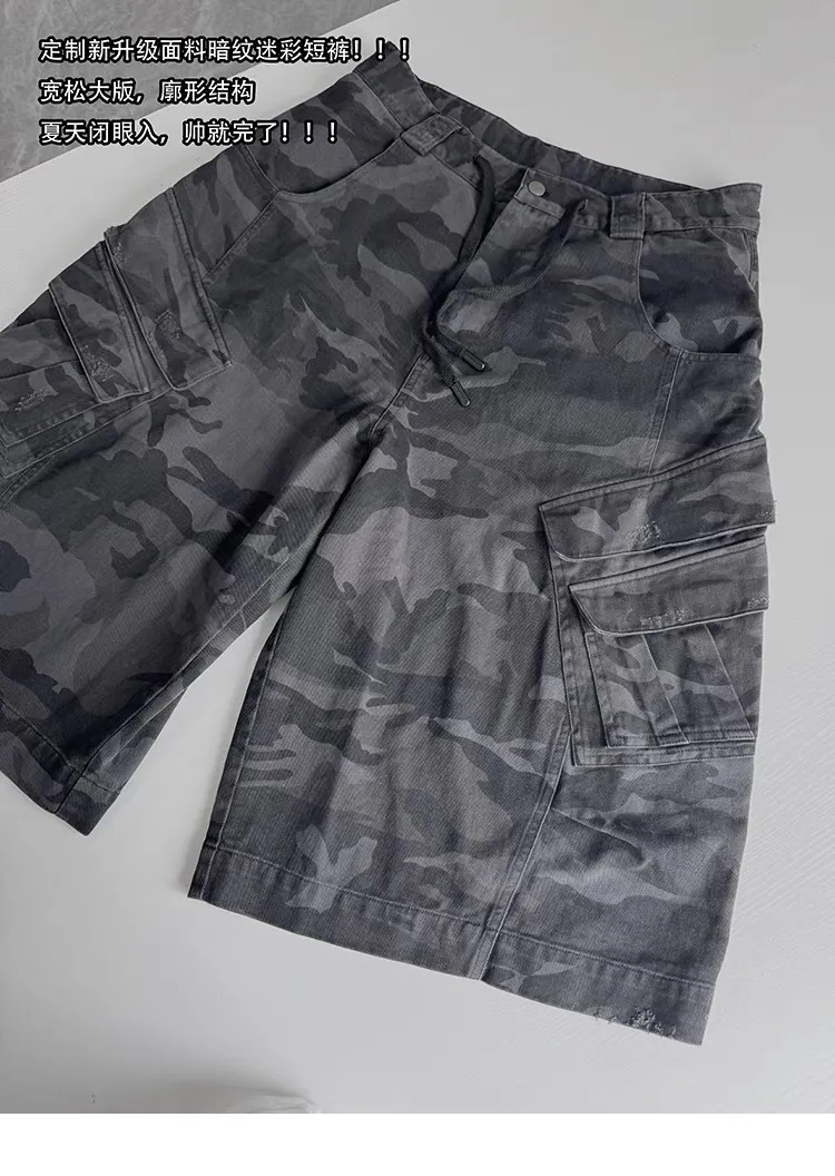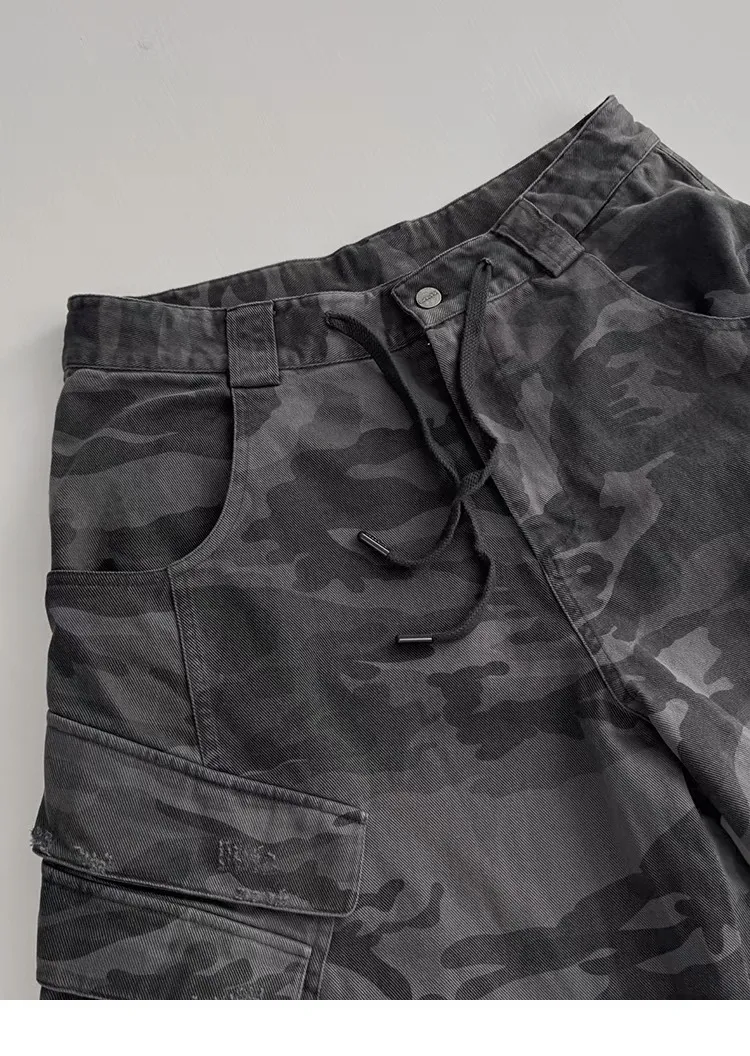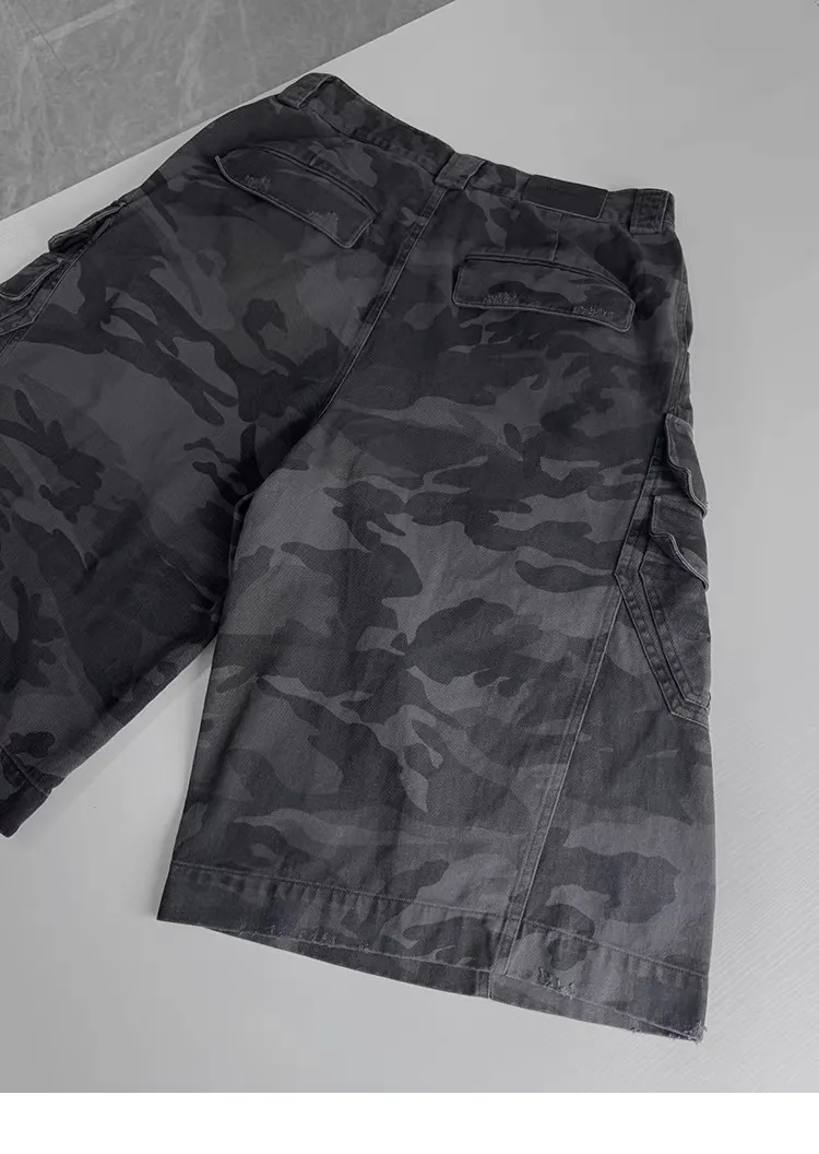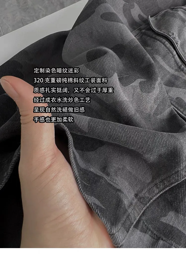 AUROCEAN 迷彩暗紋 雙口袋 廓形 七分褲(新迷彩色)