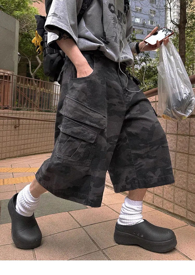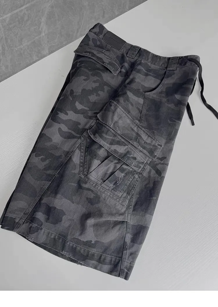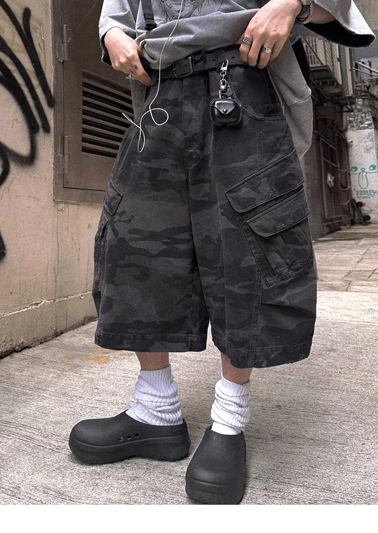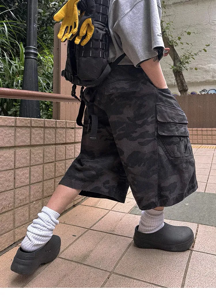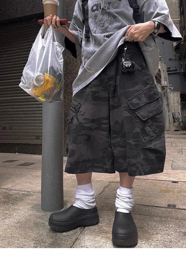 AUROCEAN 迷彩暗紋 雙口袋 廓形 七分褲(新迷彩色)