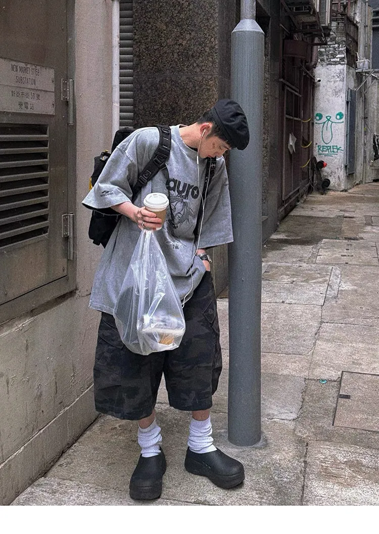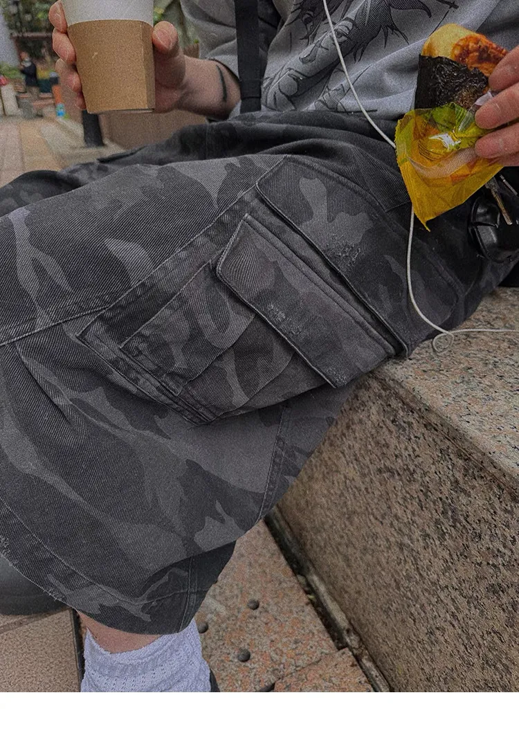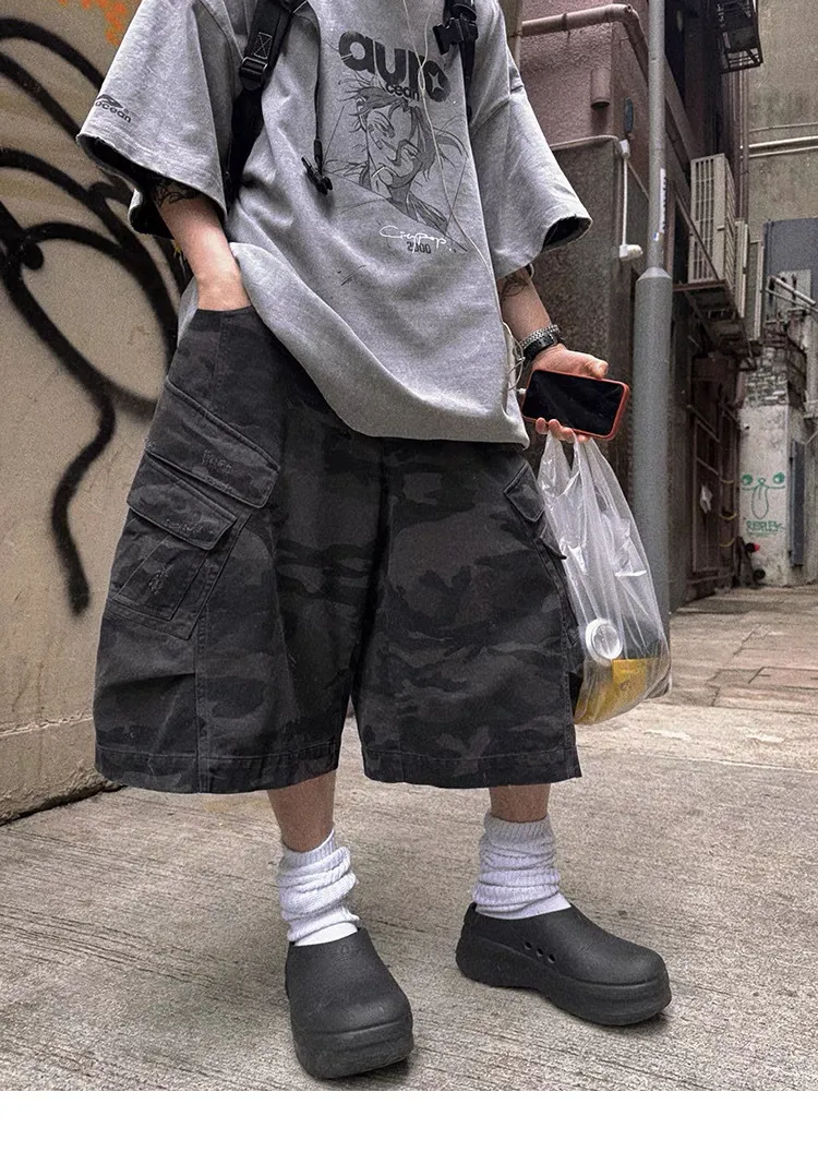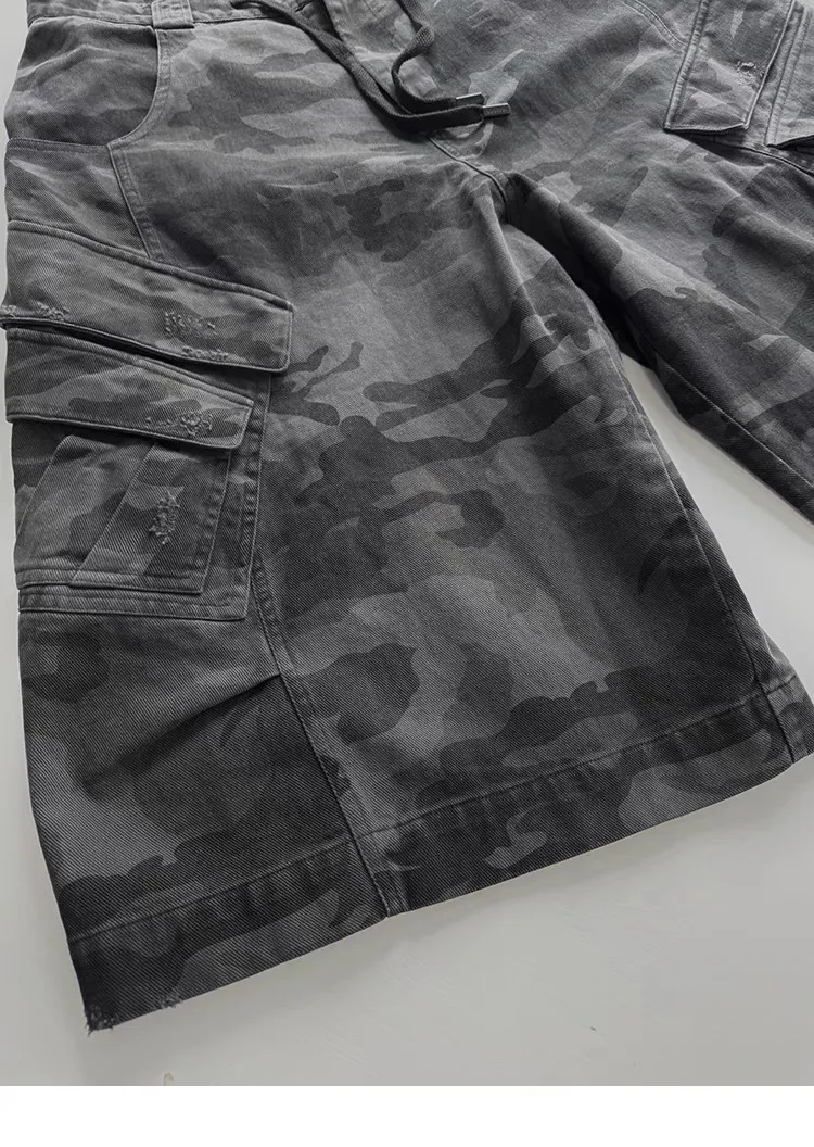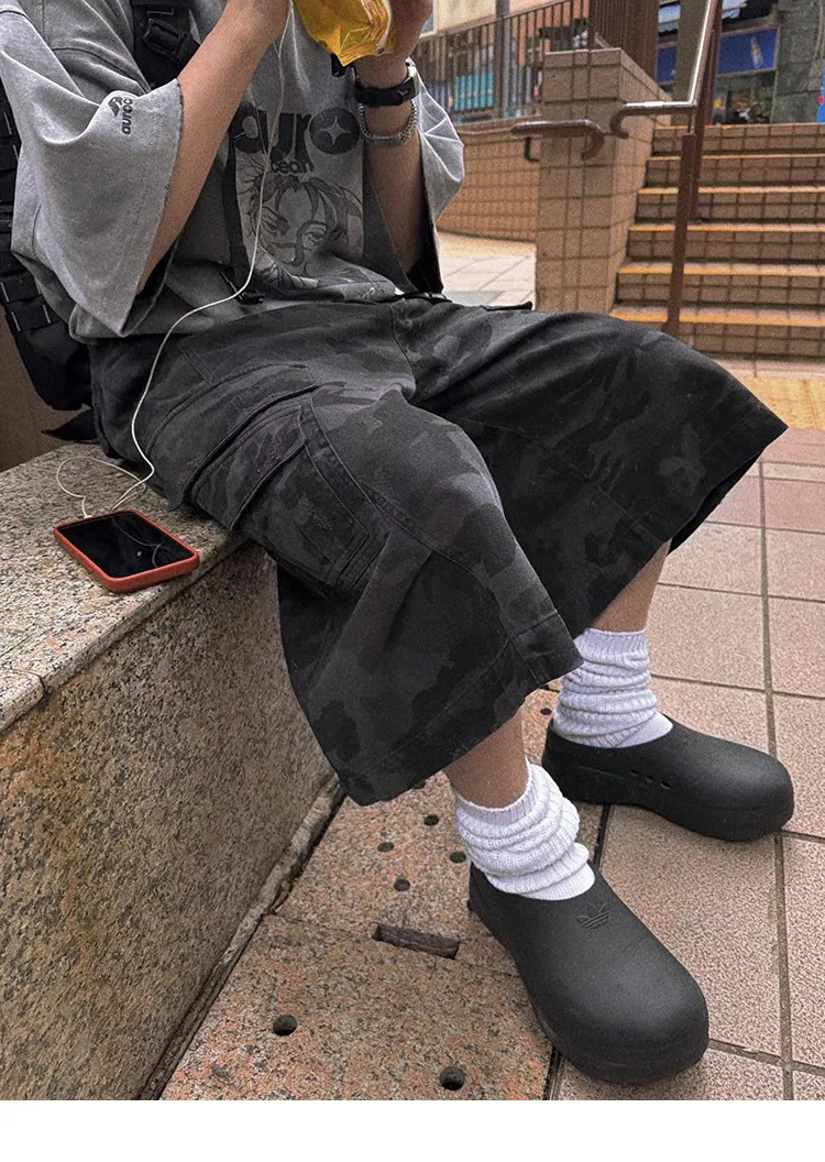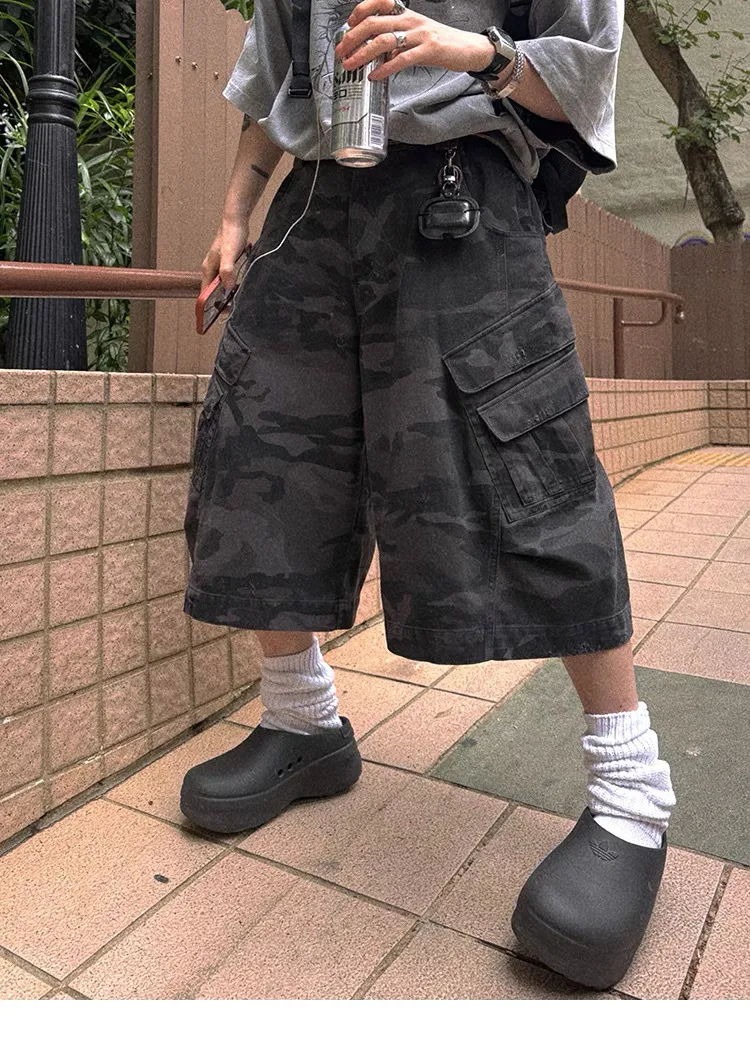 AUROCEAN 迷彩暗紋 雙口袋 廓形 七分褲(新迷彩色)