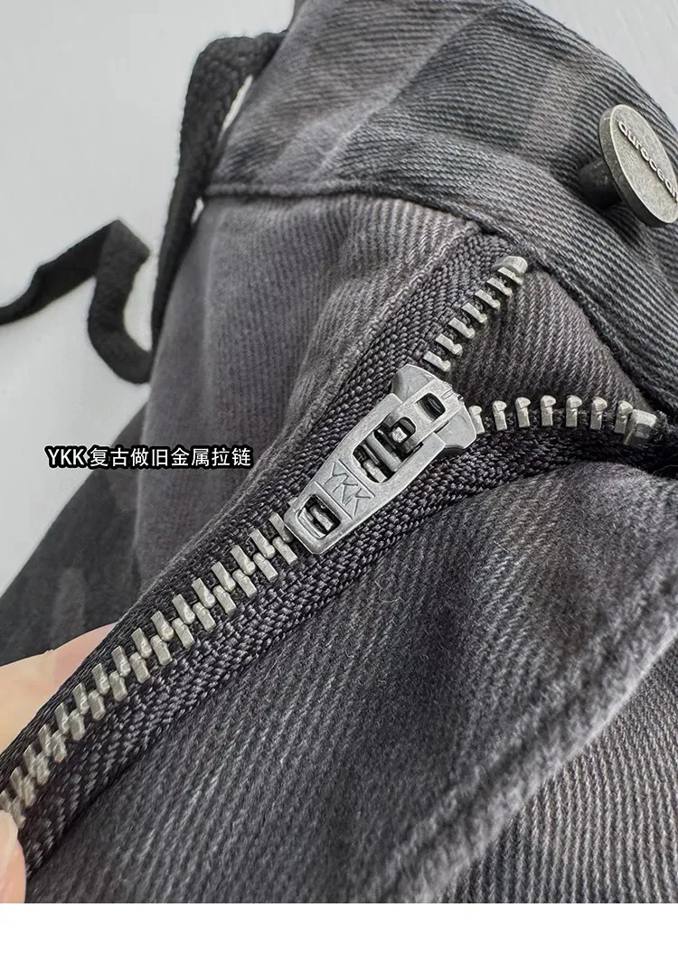 AUROCEAN 雙口袋 做舊破壞 廓形工裝 七分褲(銀灰色)