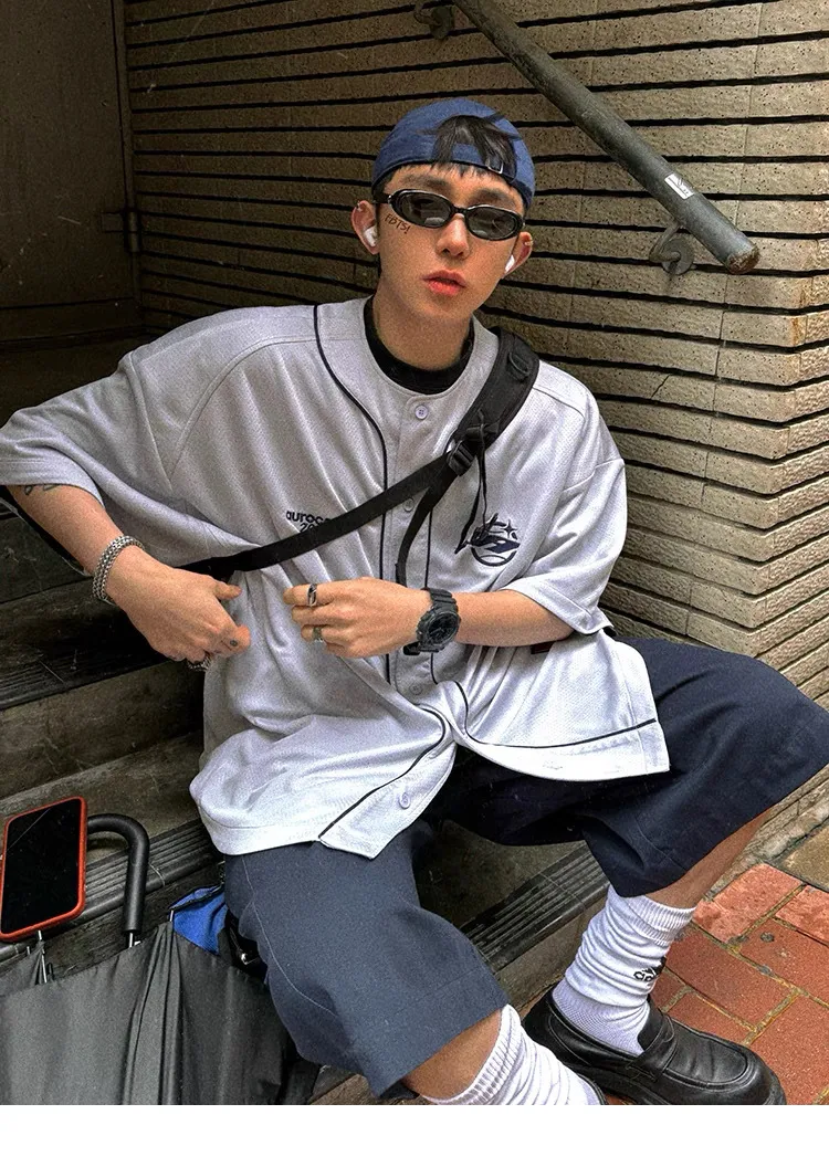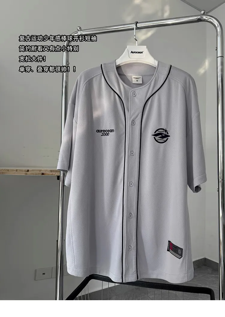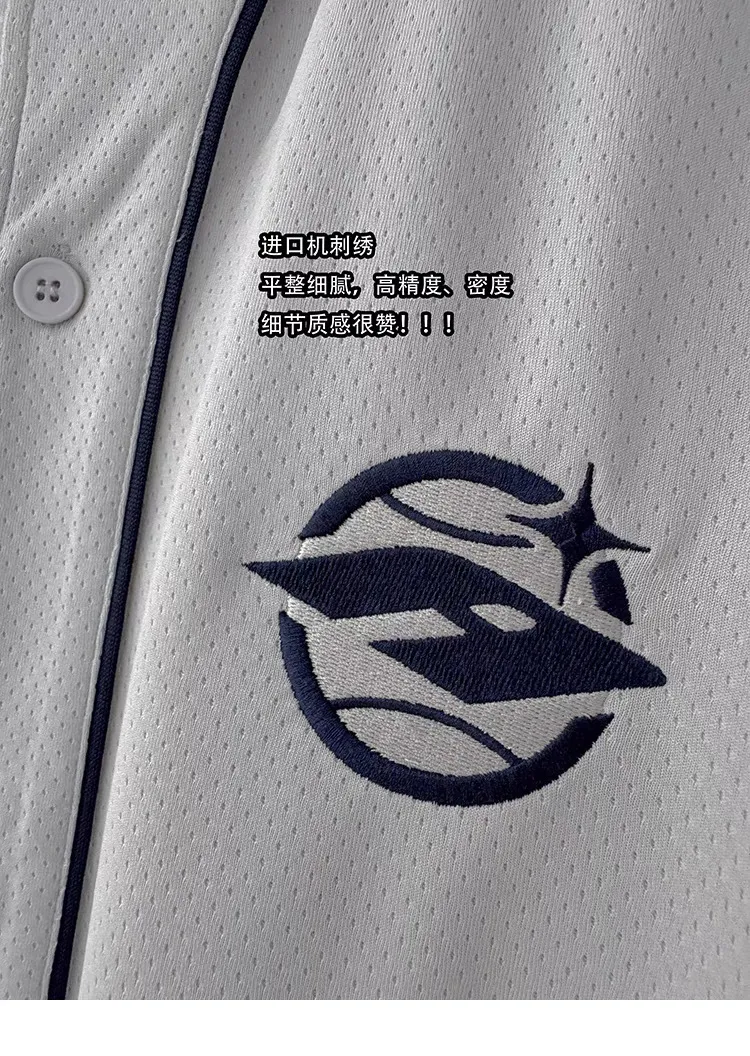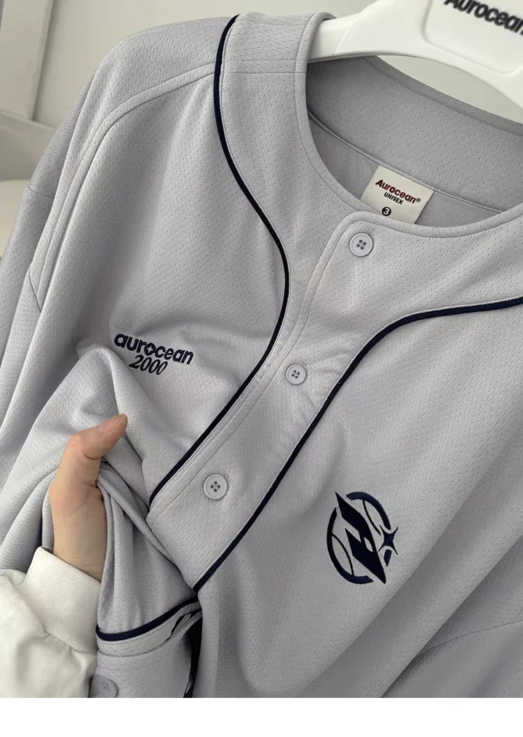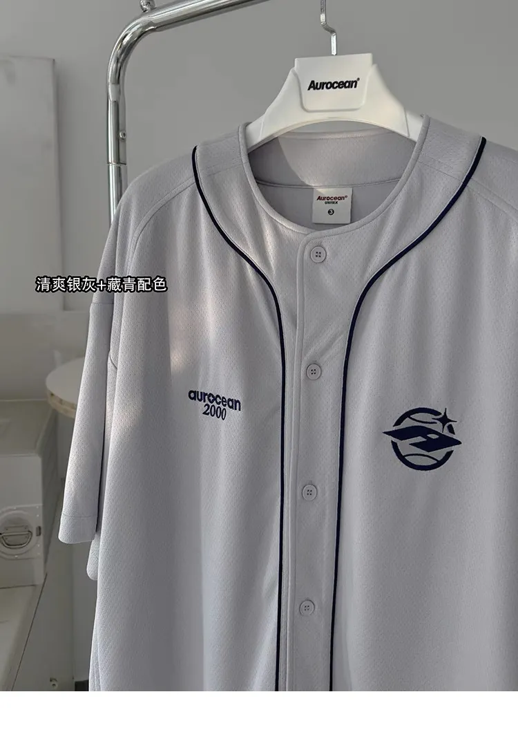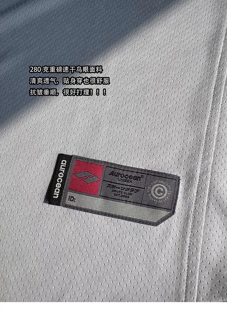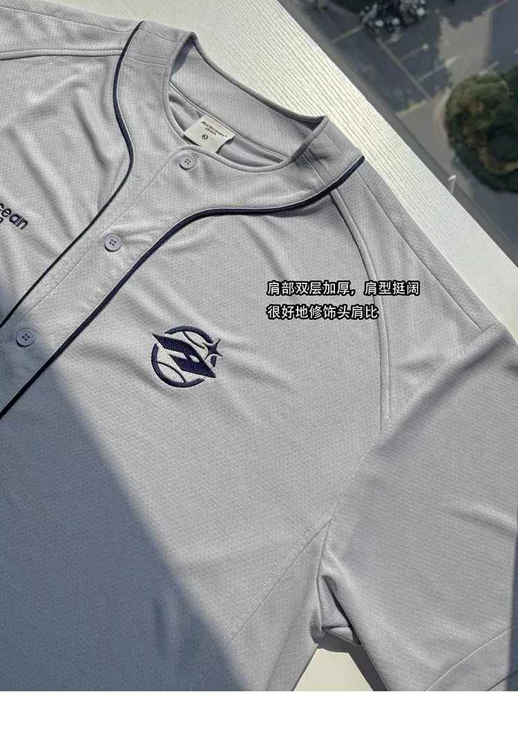 AUROCEAN 棒球徽章 寬肩 速乾鳥眼 球衣 短袖(銀灰色)