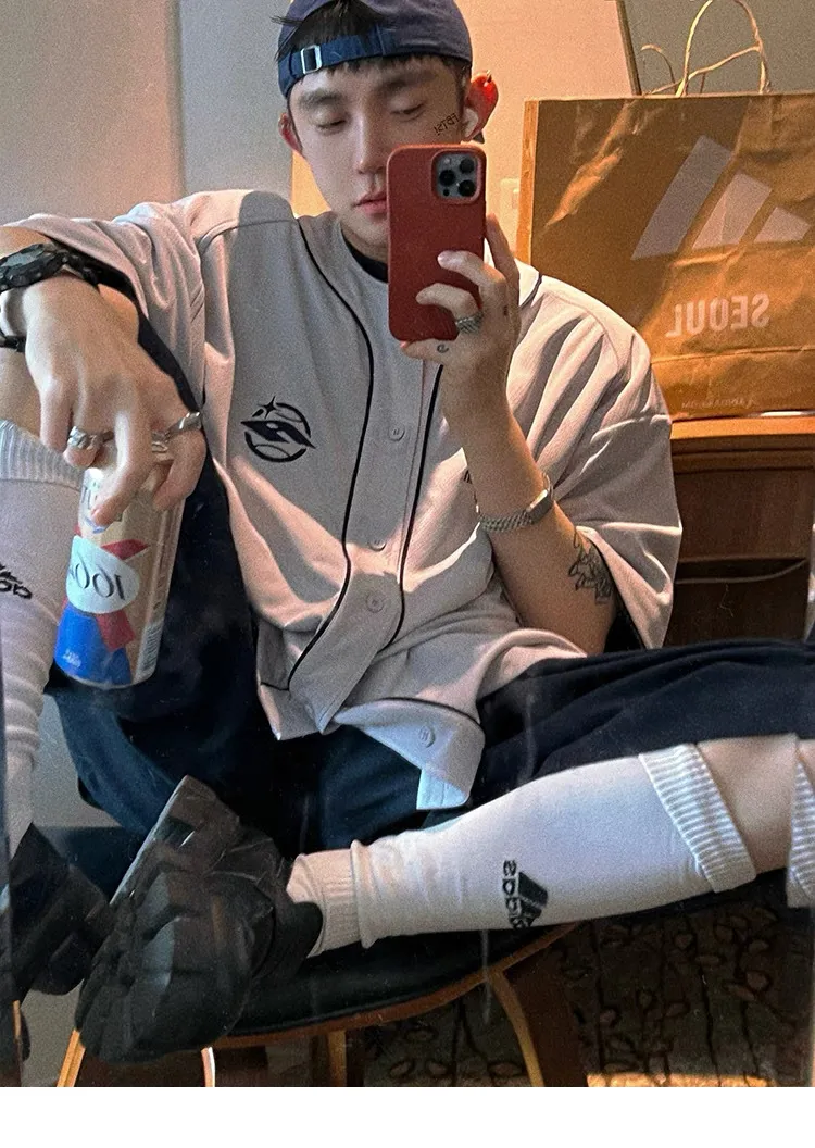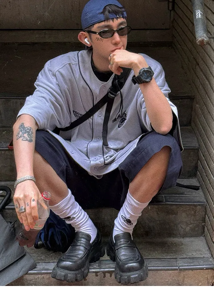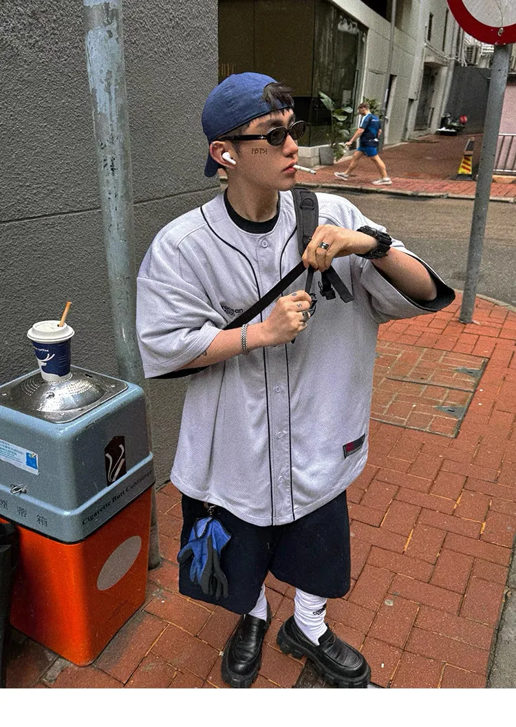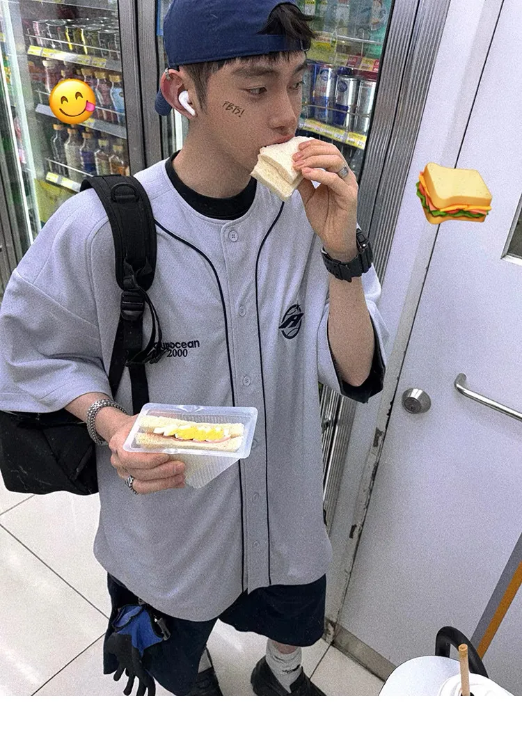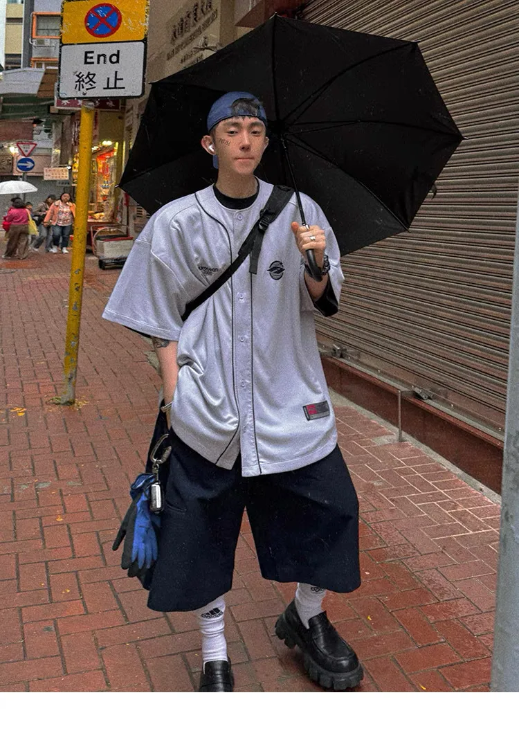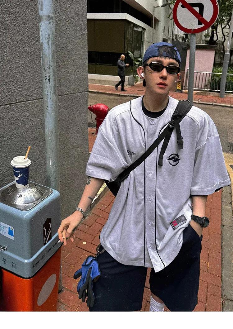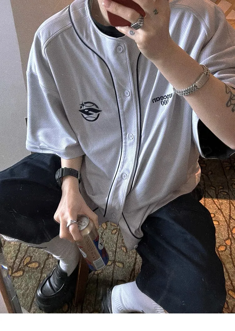 AUROCEAN 棒球徽章 寬肩 速乾鳥眼 球衣 短袖(銀灰色)