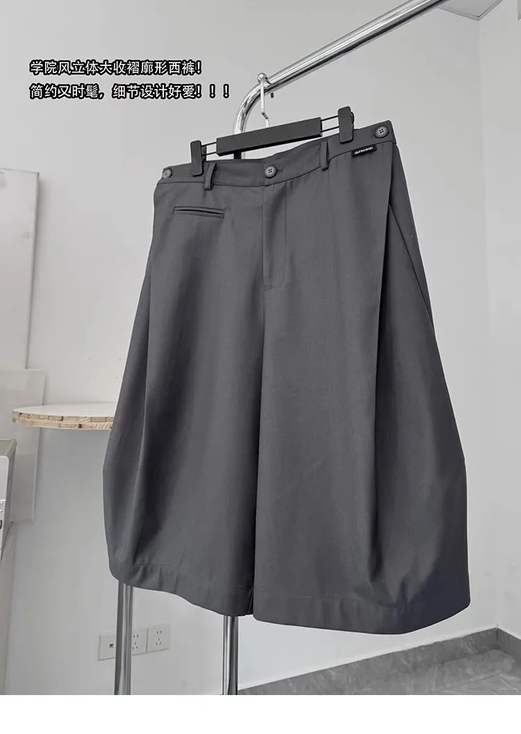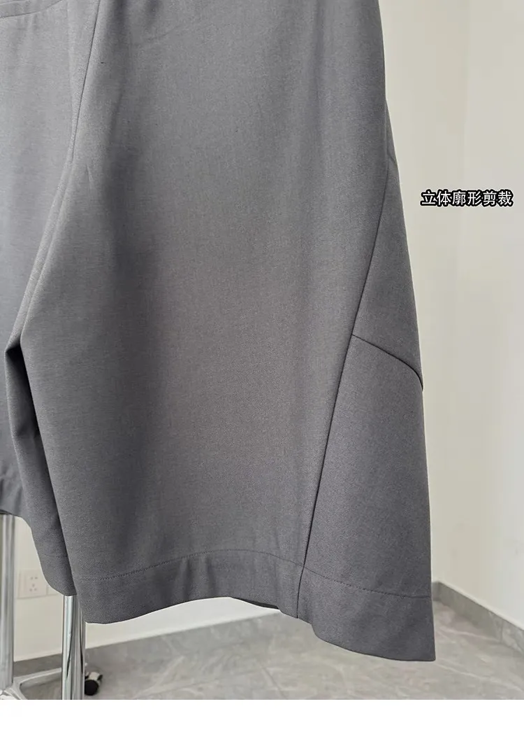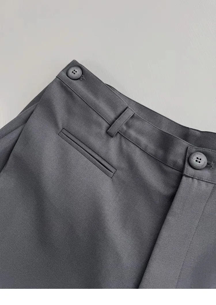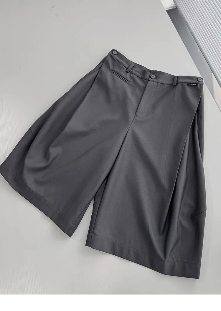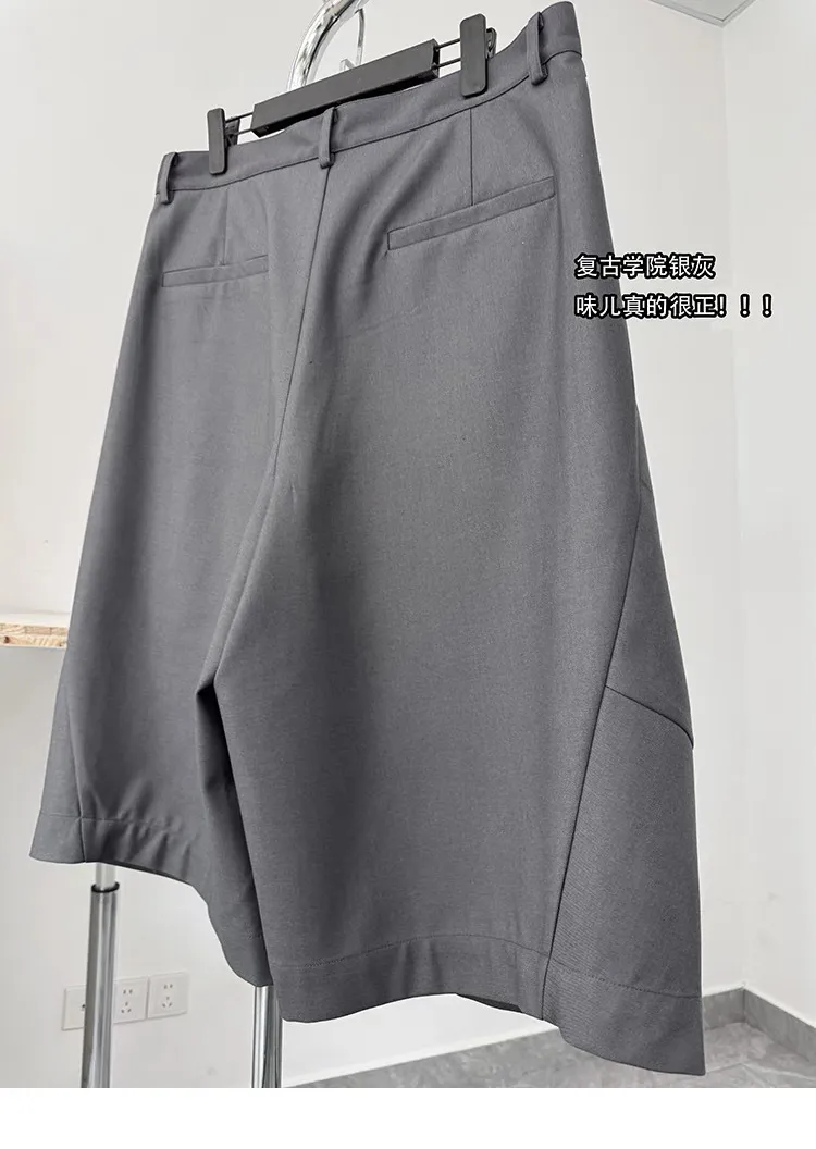 AUROCEAN 牛奶絲 彎刀打褶 西裝短褲(深灰色)