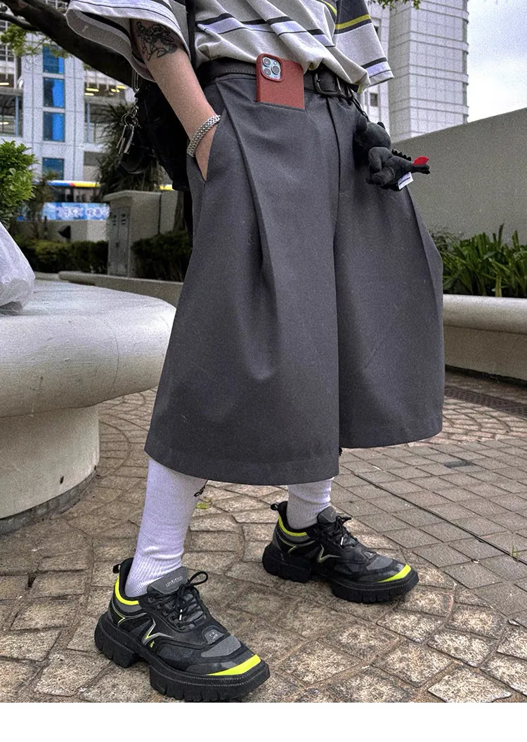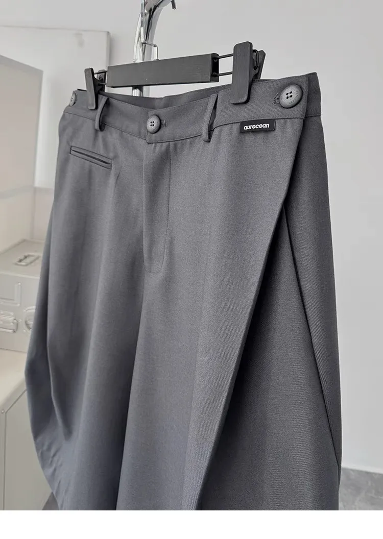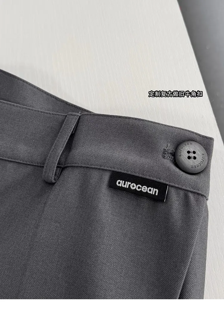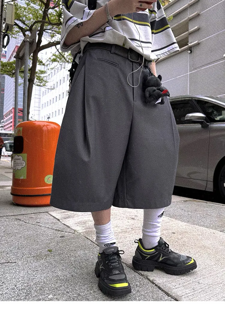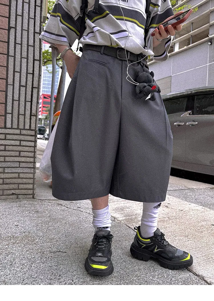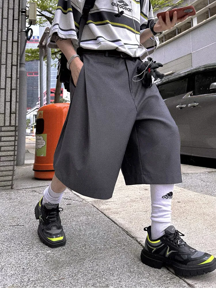 AUROCEAN 牛奶絲 彎刀打褶 西裝短褲(深灰色)