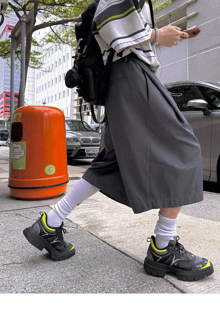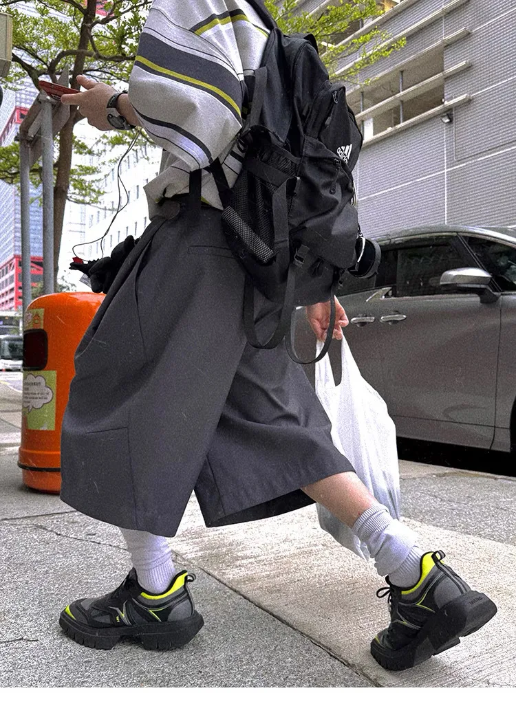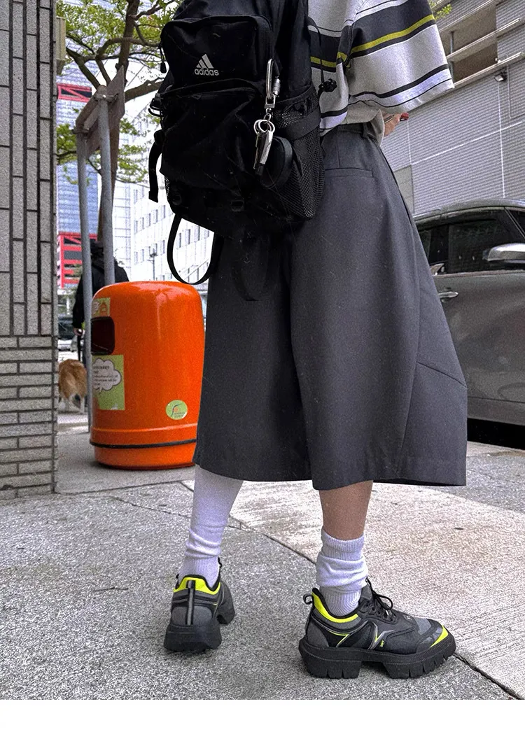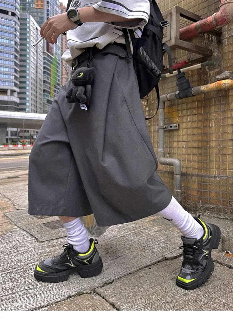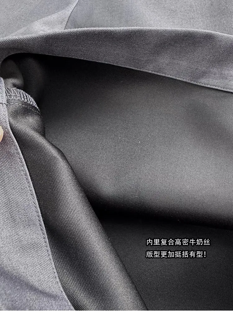 AUROCEAN 牛奶絲 彎刀打褶 西裝短褲(深灰色)