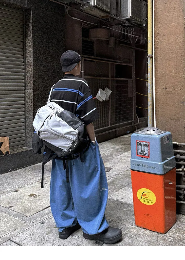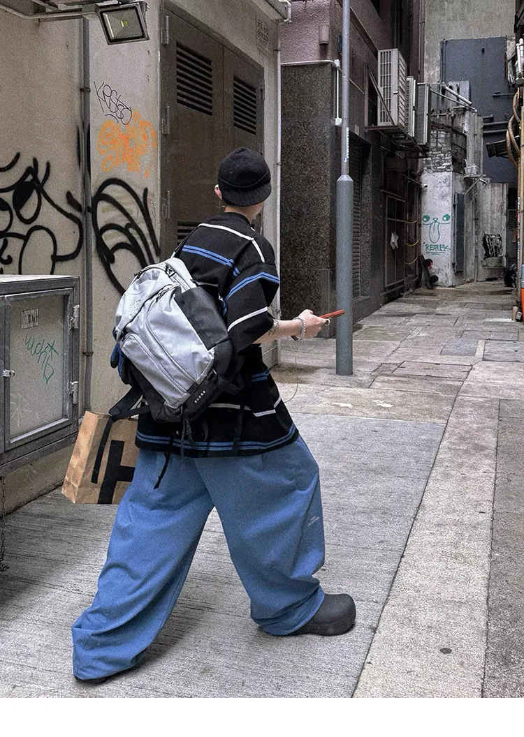 AUROCEAN 拼色復古 超大件 刺繡 球衣 背心(藍色)