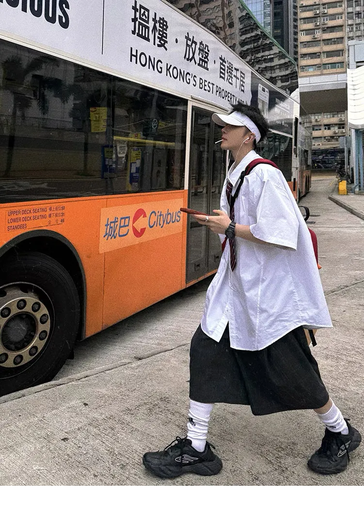 AUROCEAN 雙口袋 水洗做舊 寬大 七分褲(水洗黑色)