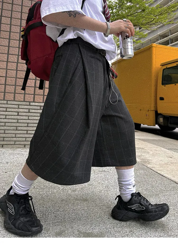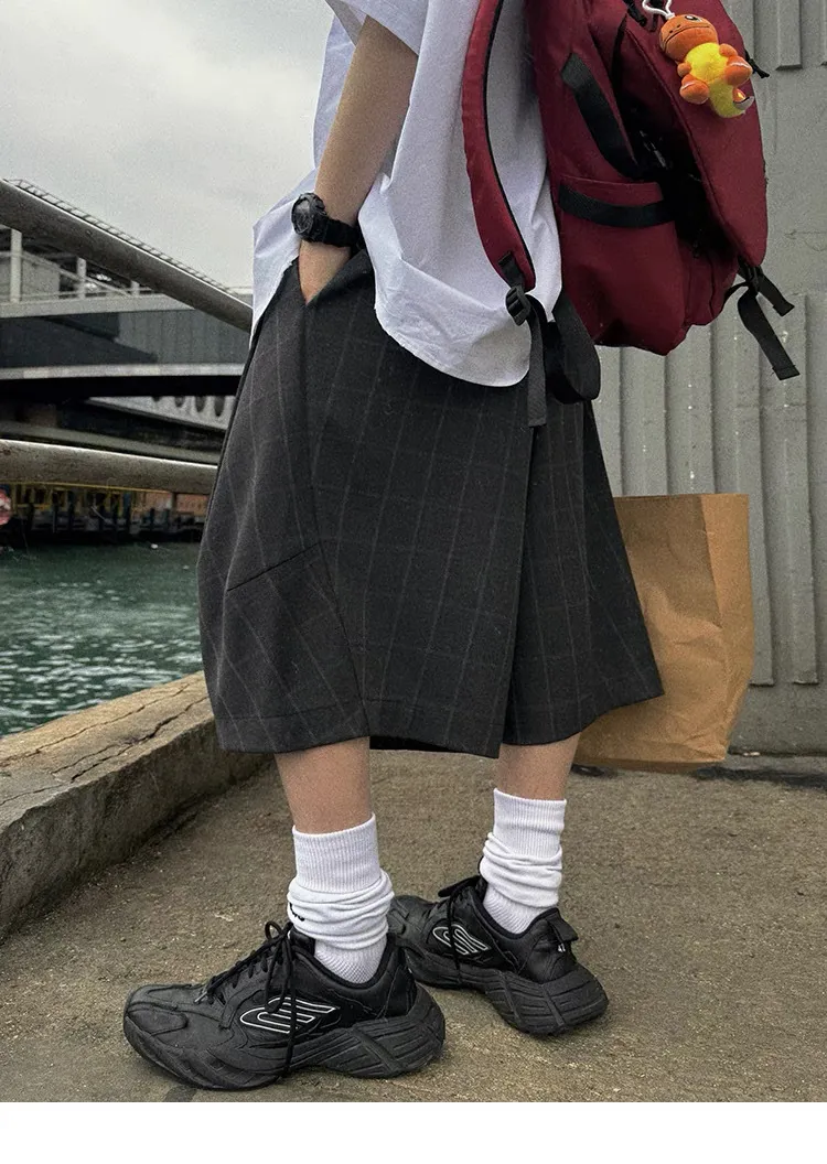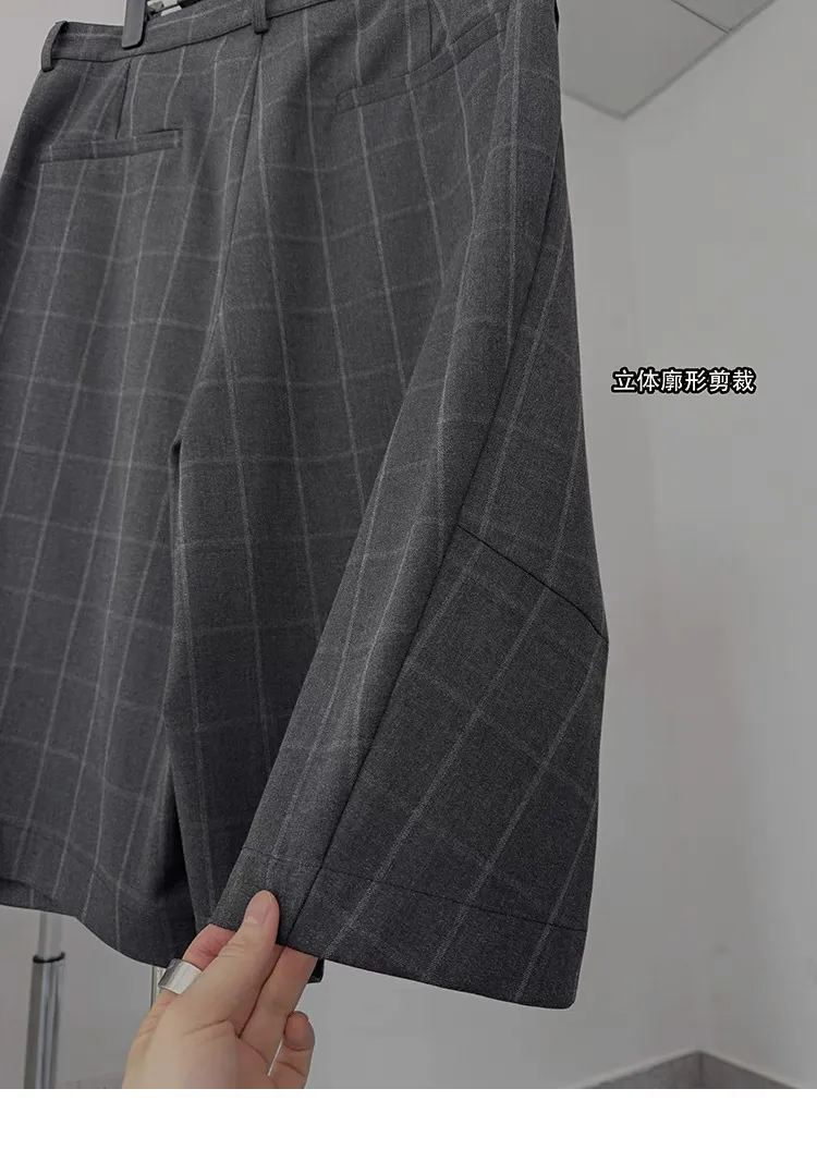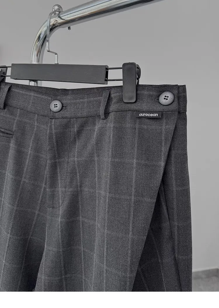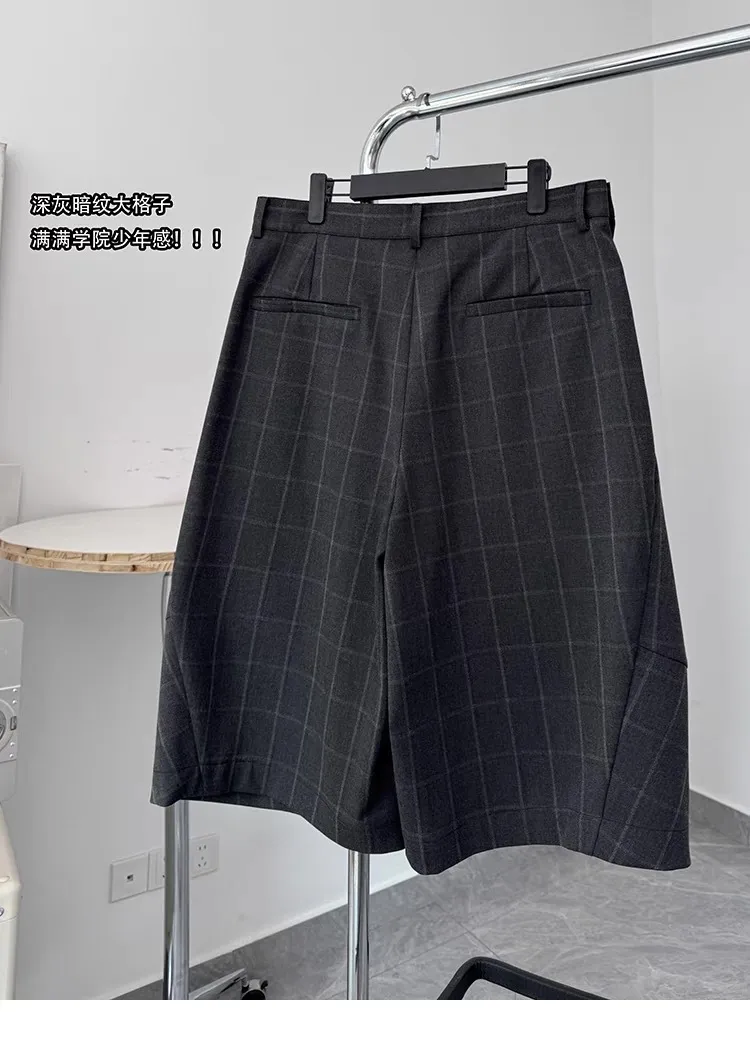 AUROCEAN 金牌紳士 格紋 彎刀 西裝短褲(深灰色)