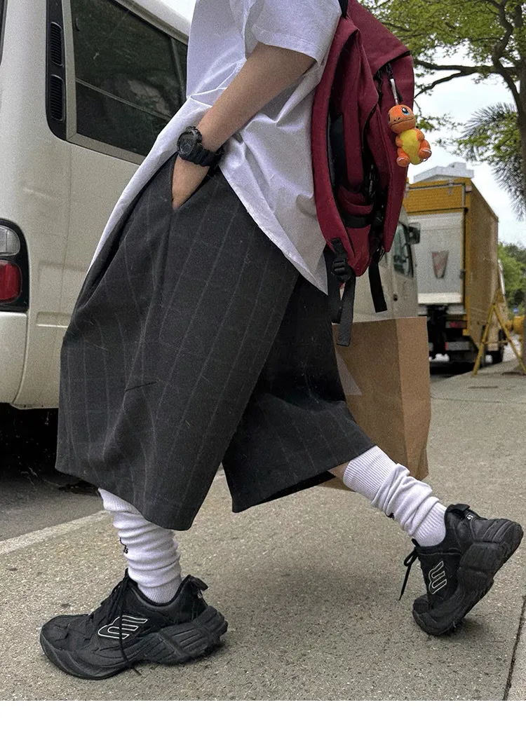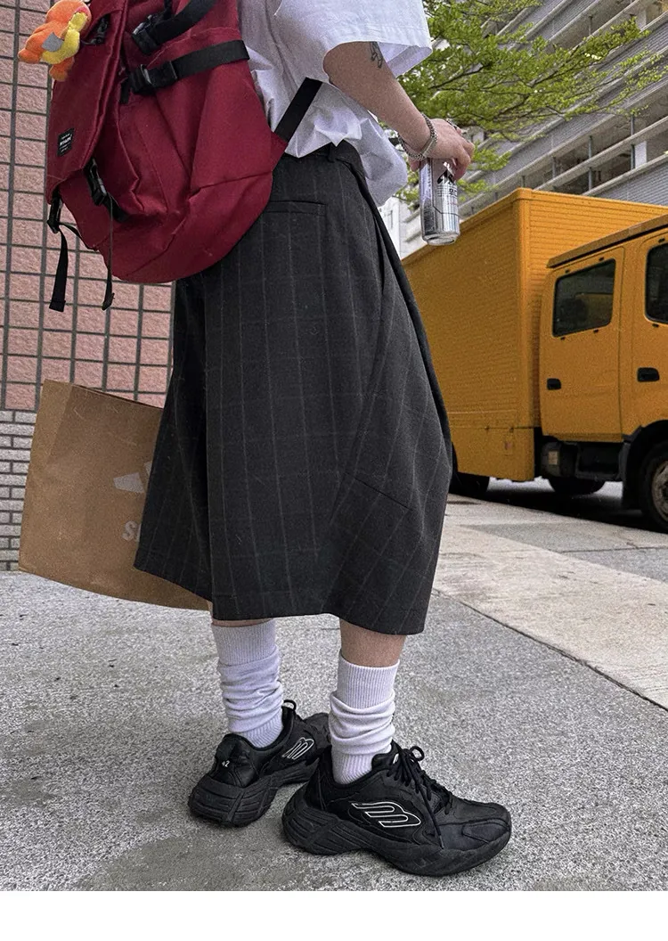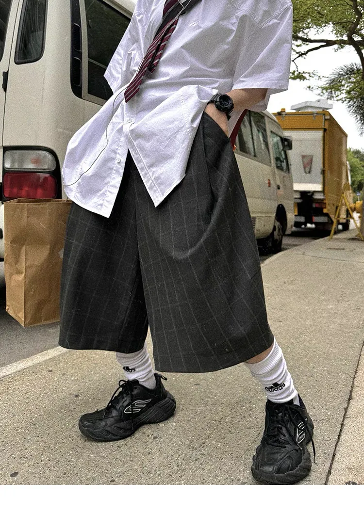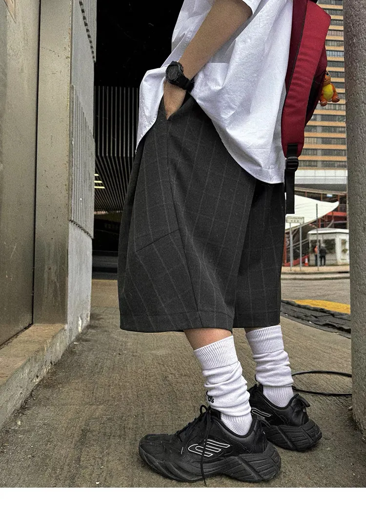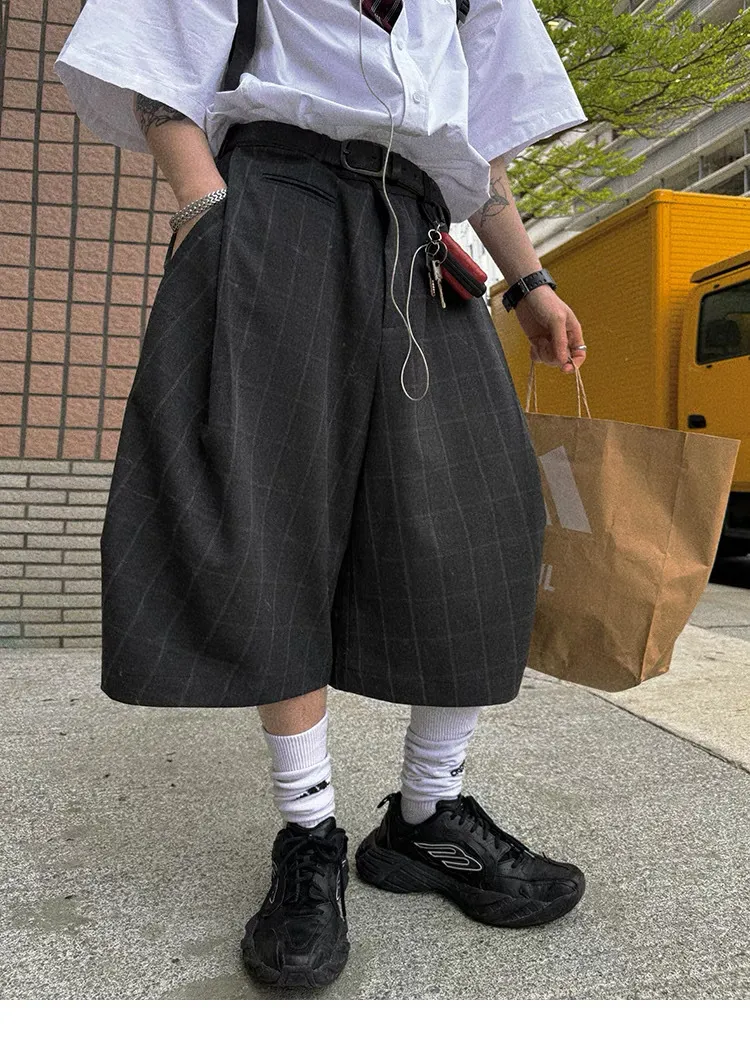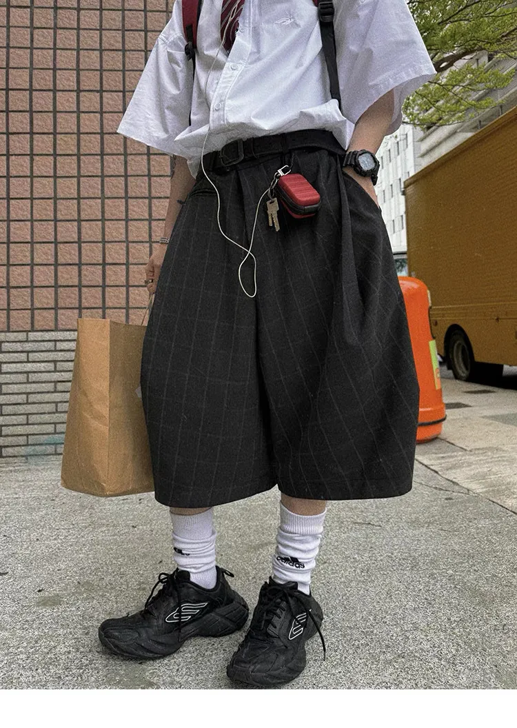 AUROCEAN 金牌紳士 格紋 彎刀 西裝短褲(深灰色)