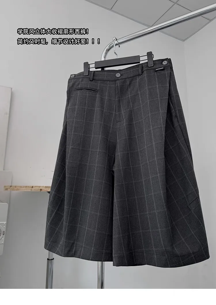 AUROCEAN 牛奶絲 彎刀打褶 西裝短褲(深灰色)