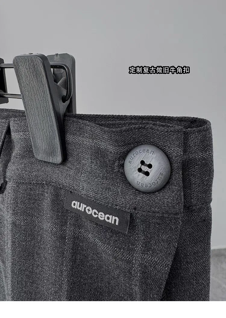 AUROCEAN 寬鬆輕盈 水洗 純棉彎刀 長褲(淺花灰色)