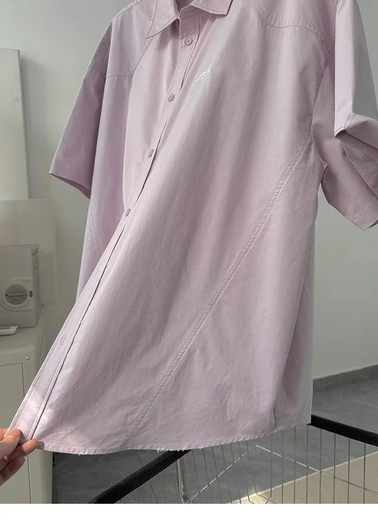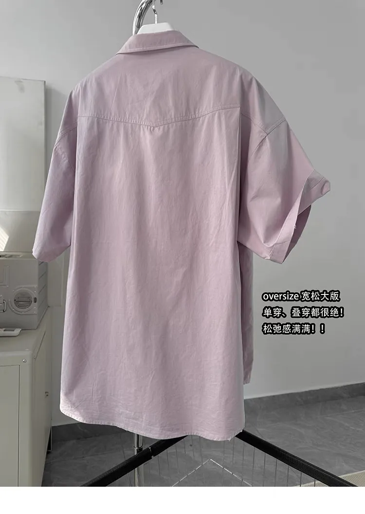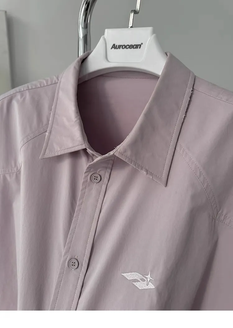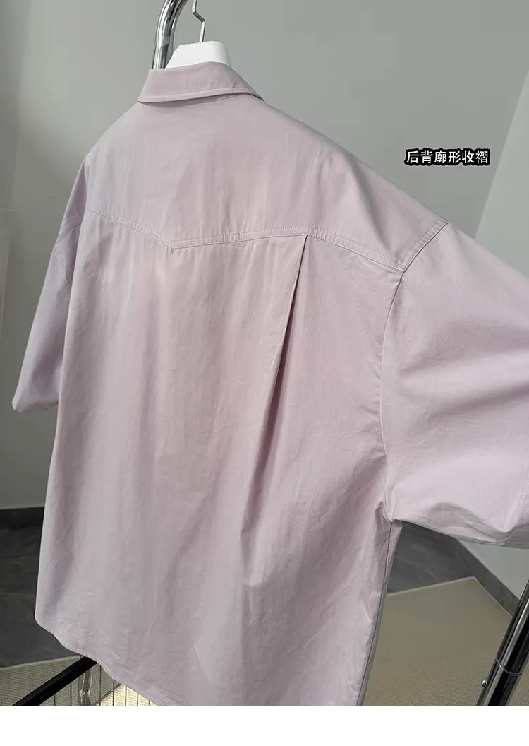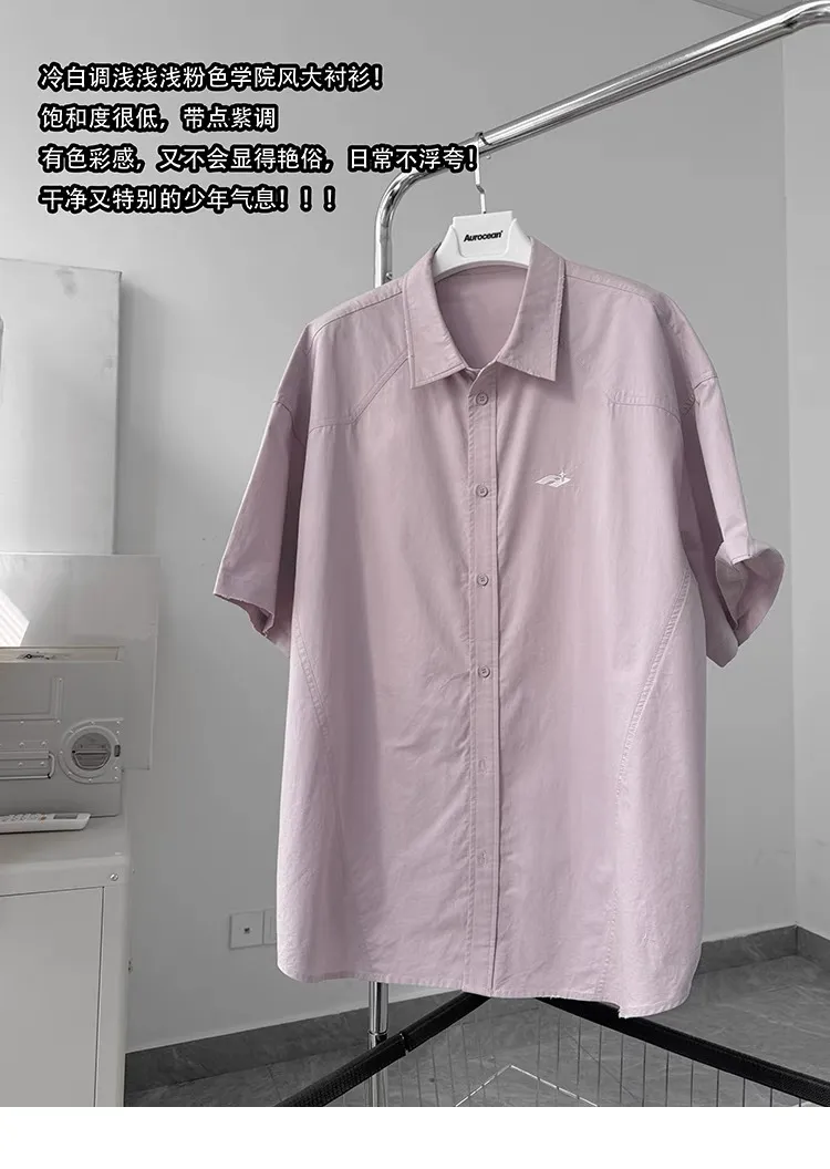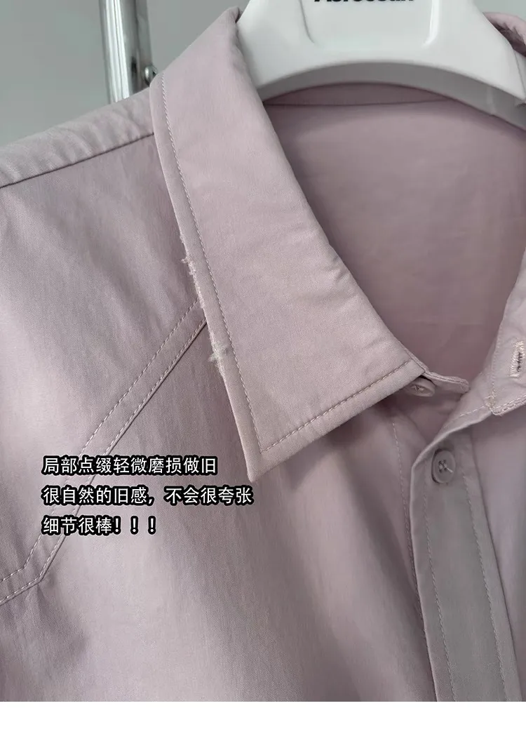 AUROCEAN 奶痞少年 寬肩廓形 做舊 襯衫(淺粉色)