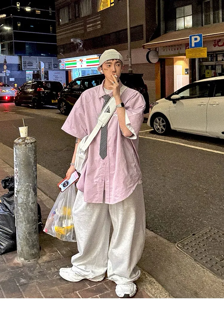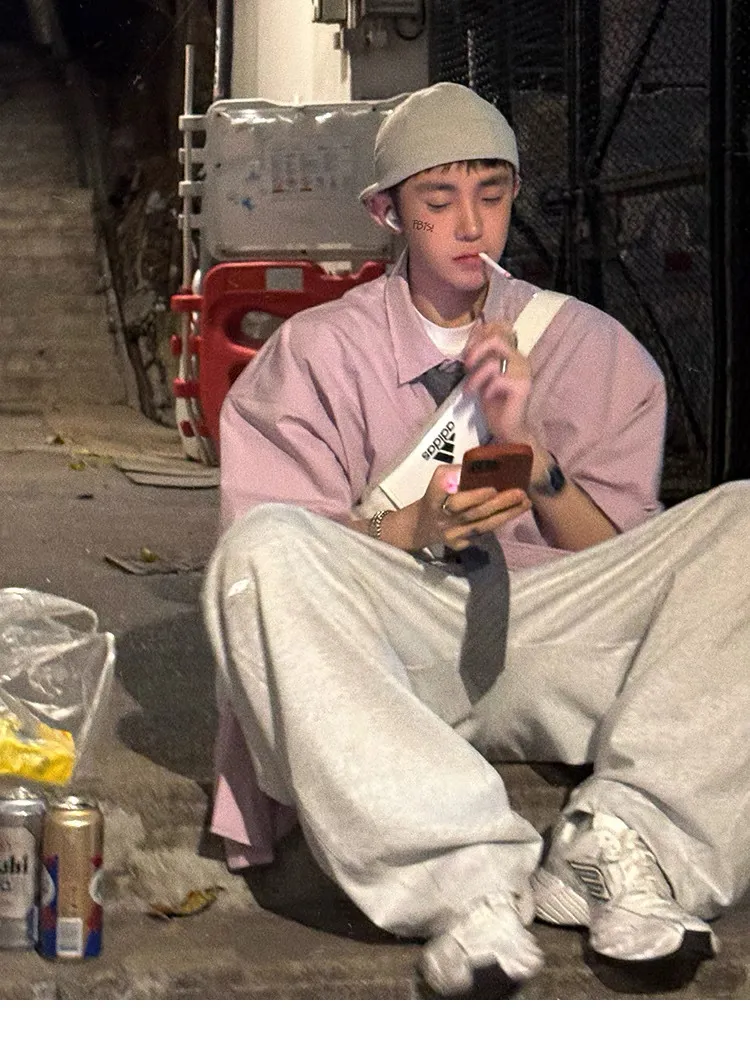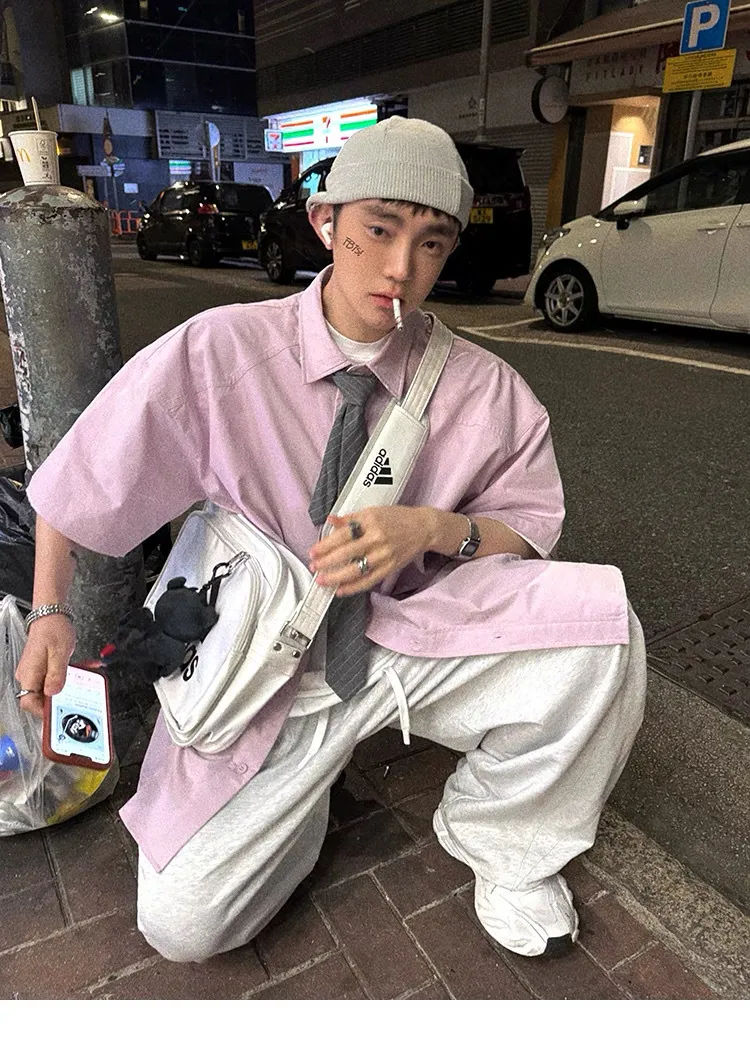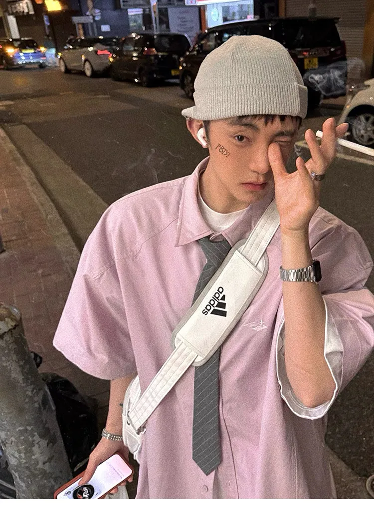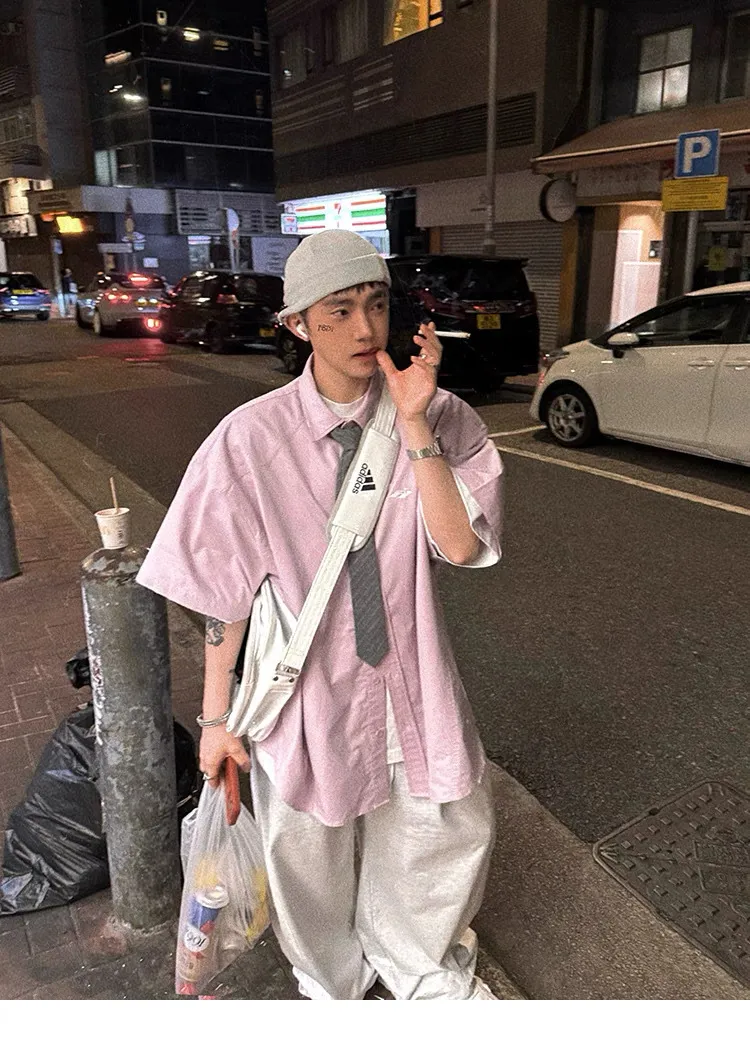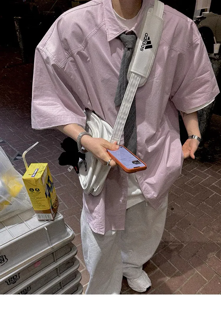AUROCEAN 奶痞少年 寬肩廓形 做舊 襯衫(淺粉色)
