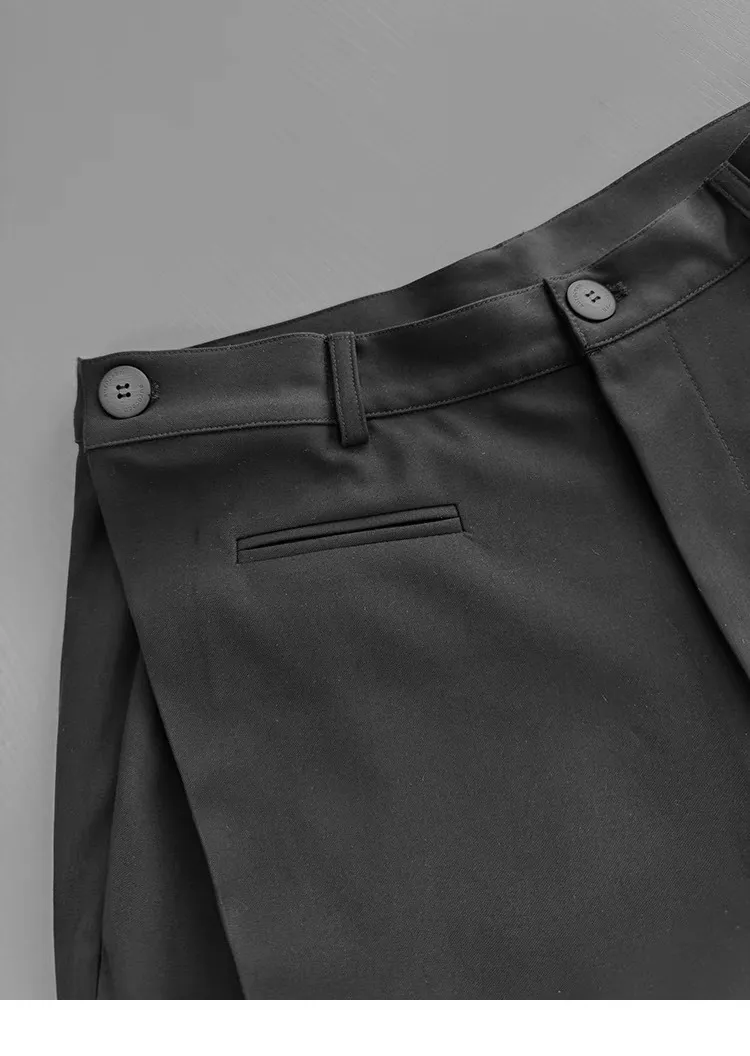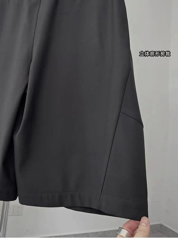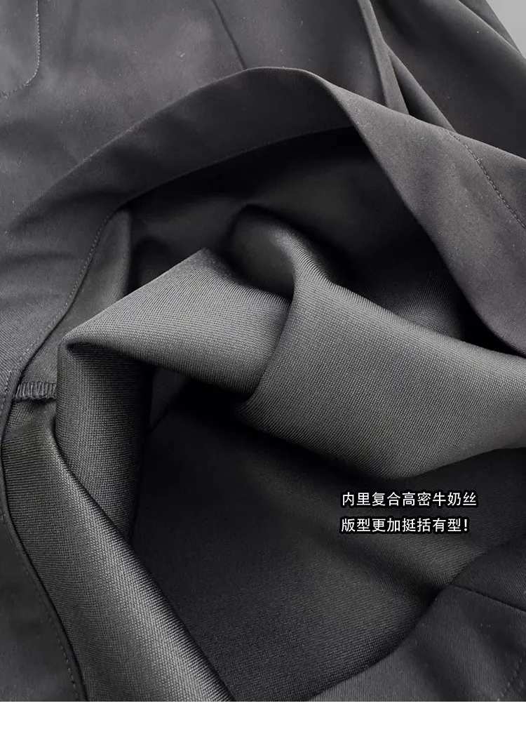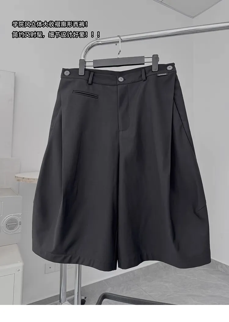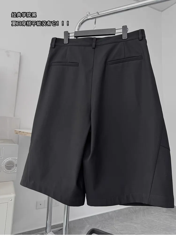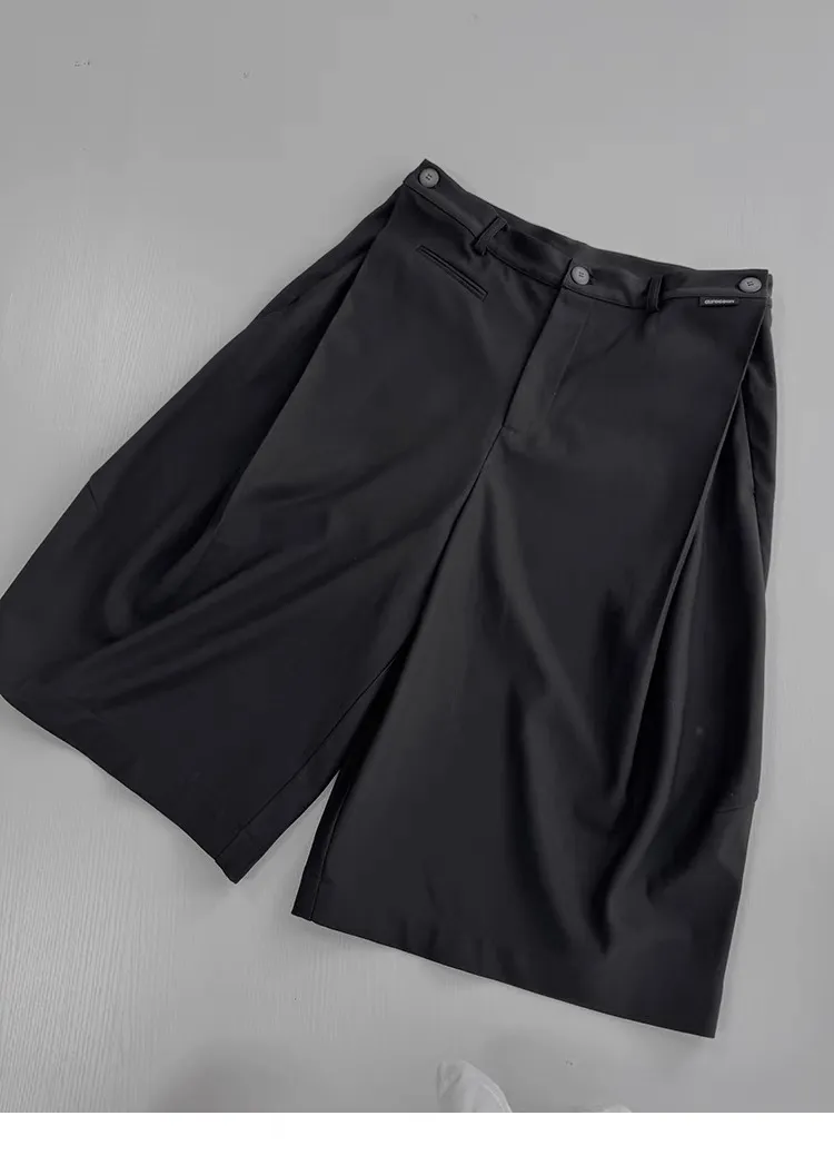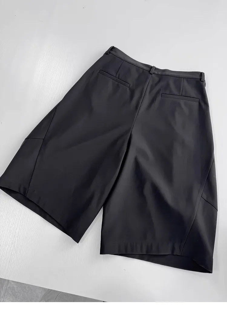 AUROCEAN 牛奶絲 彎刀打褶 西裝短褲(黑色)