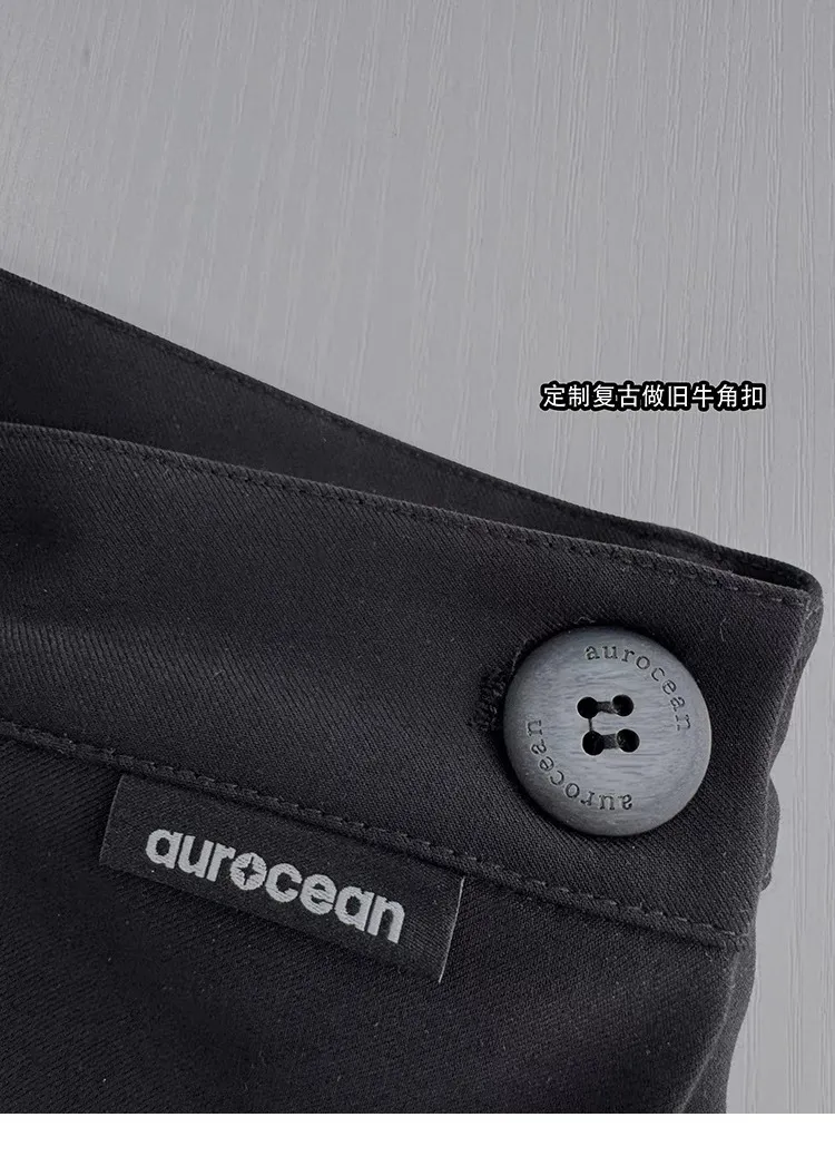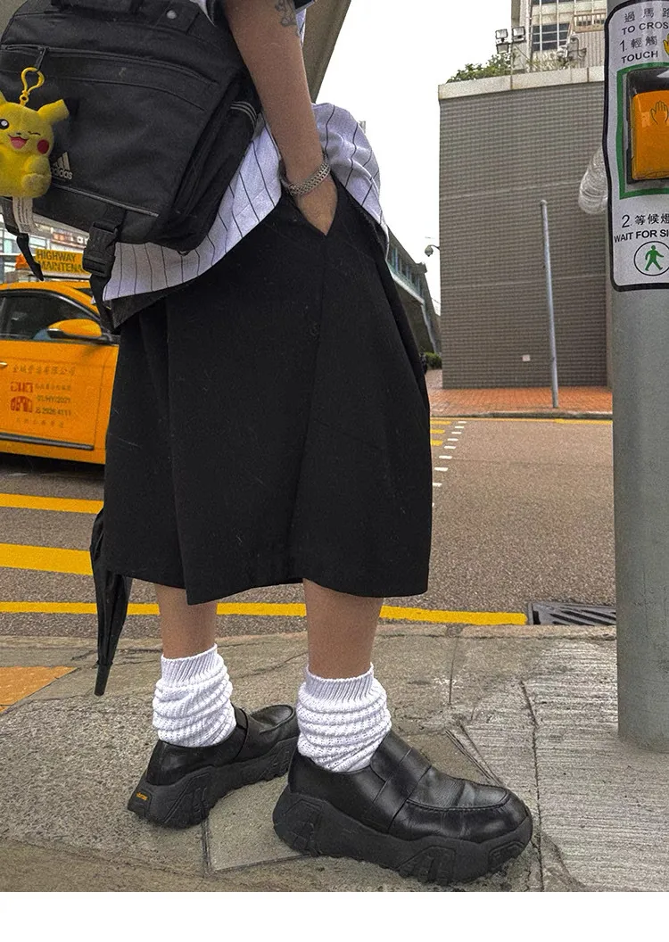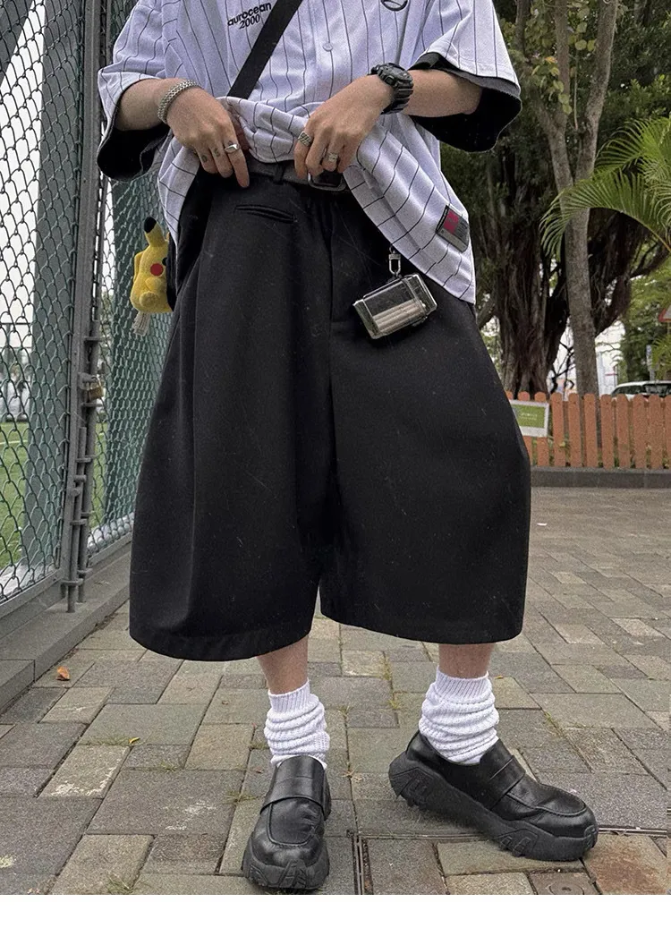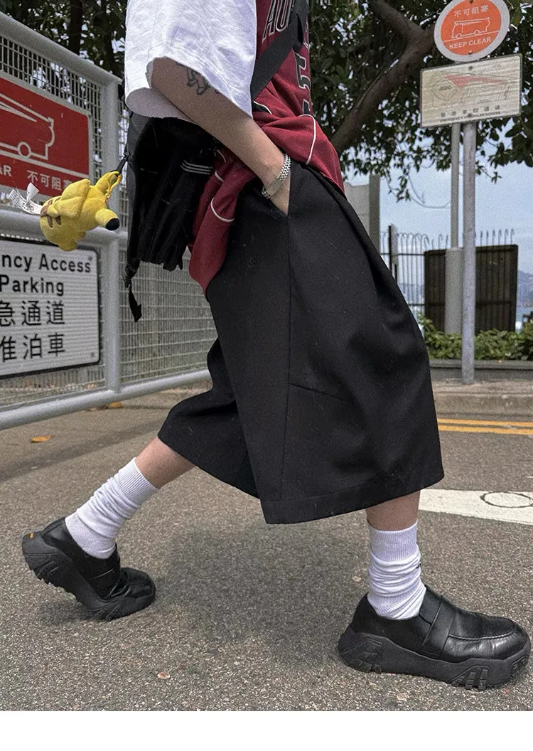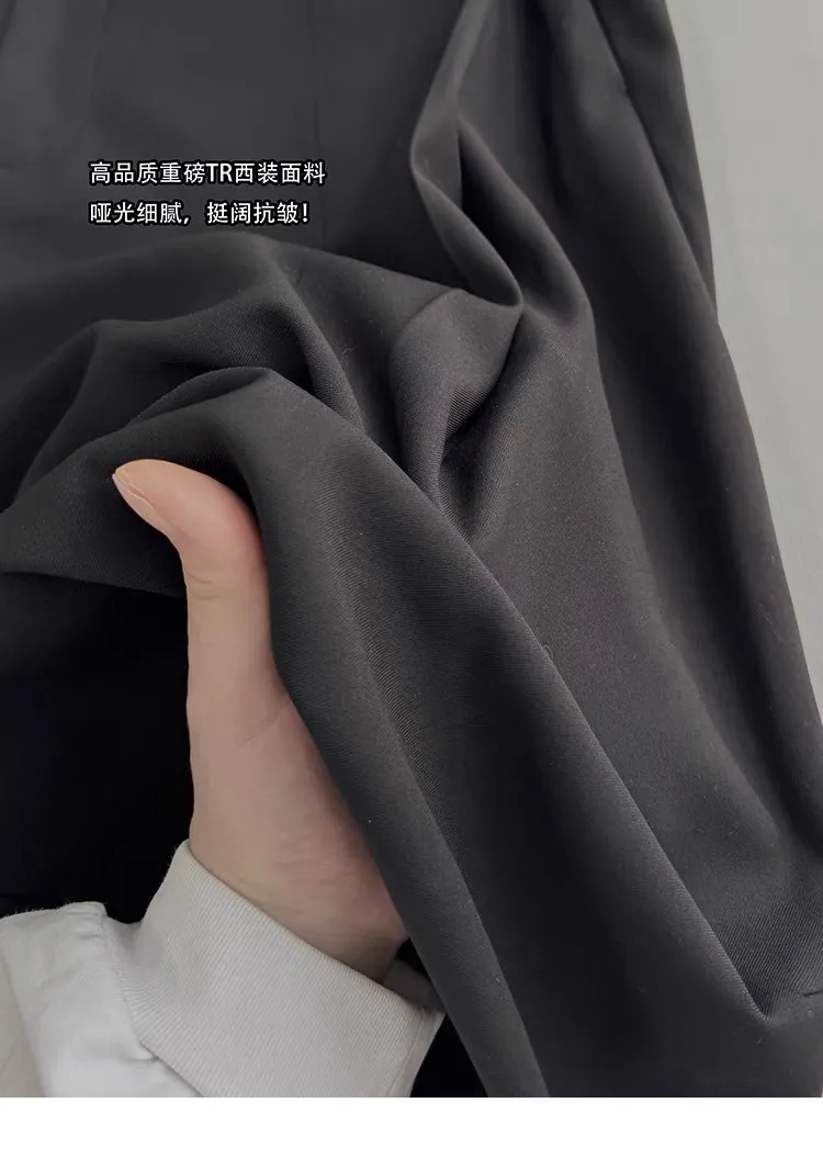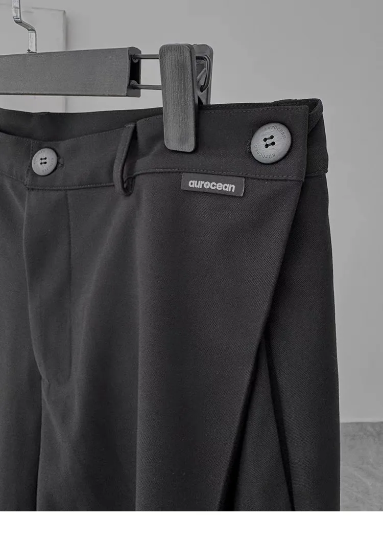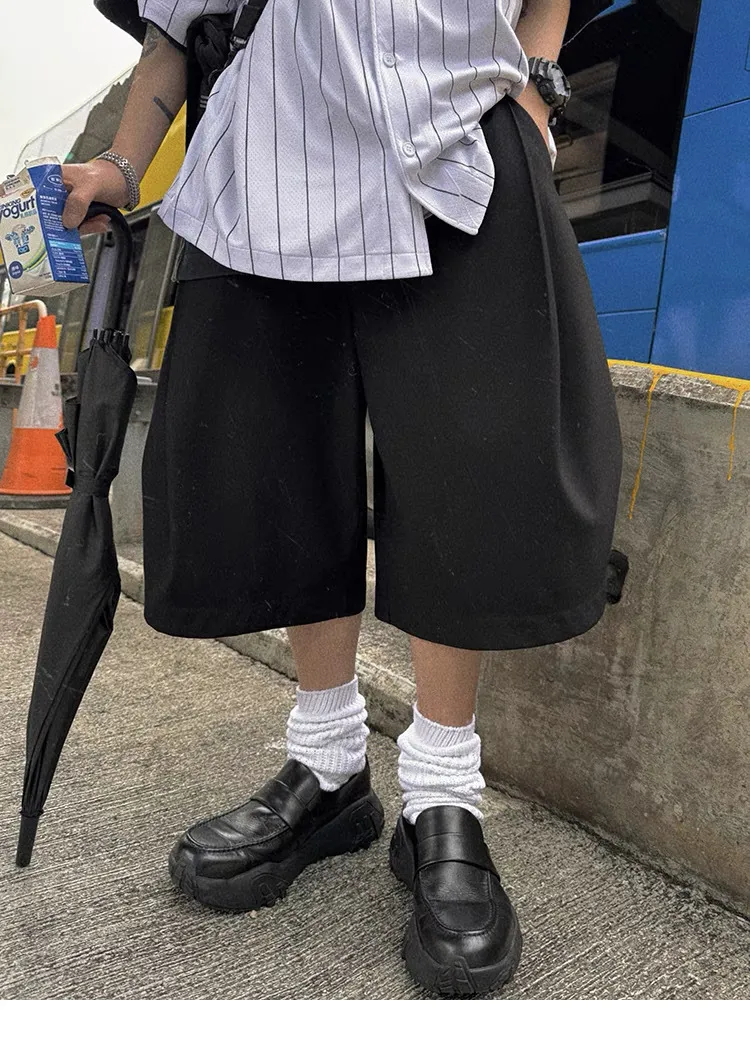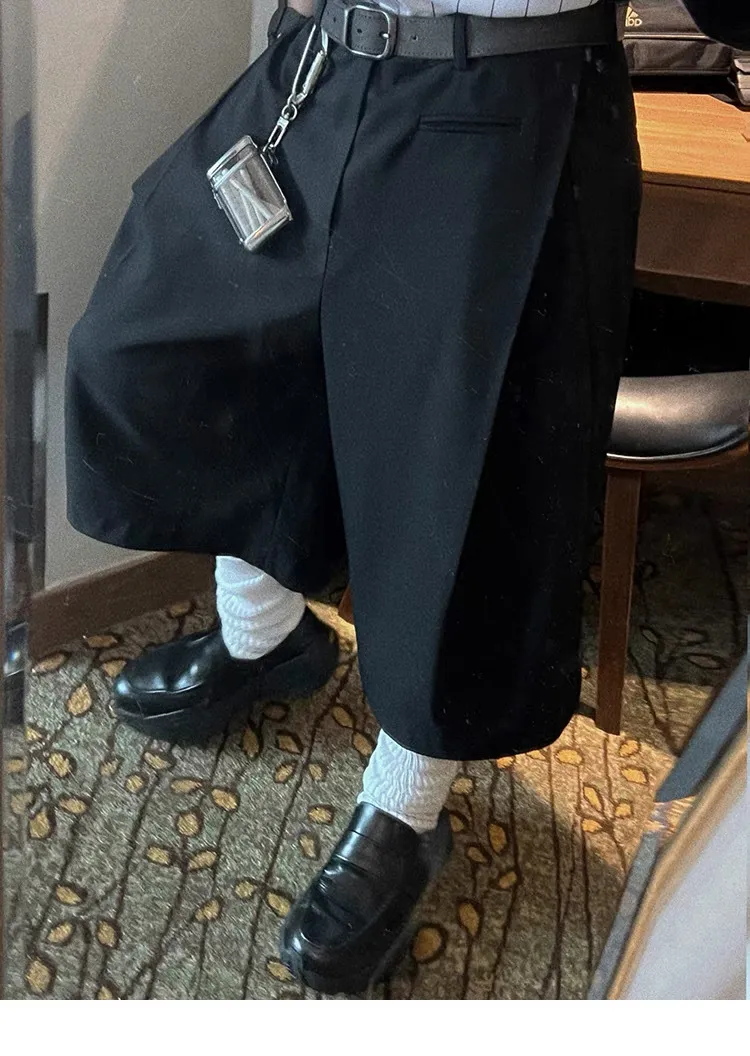 AUROCEAN 牛奶絲 彎刀打褶 西裝短褲(黑色)