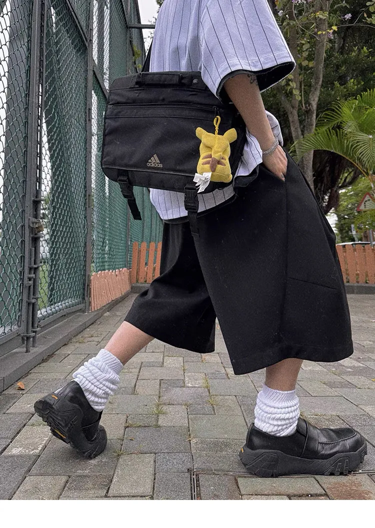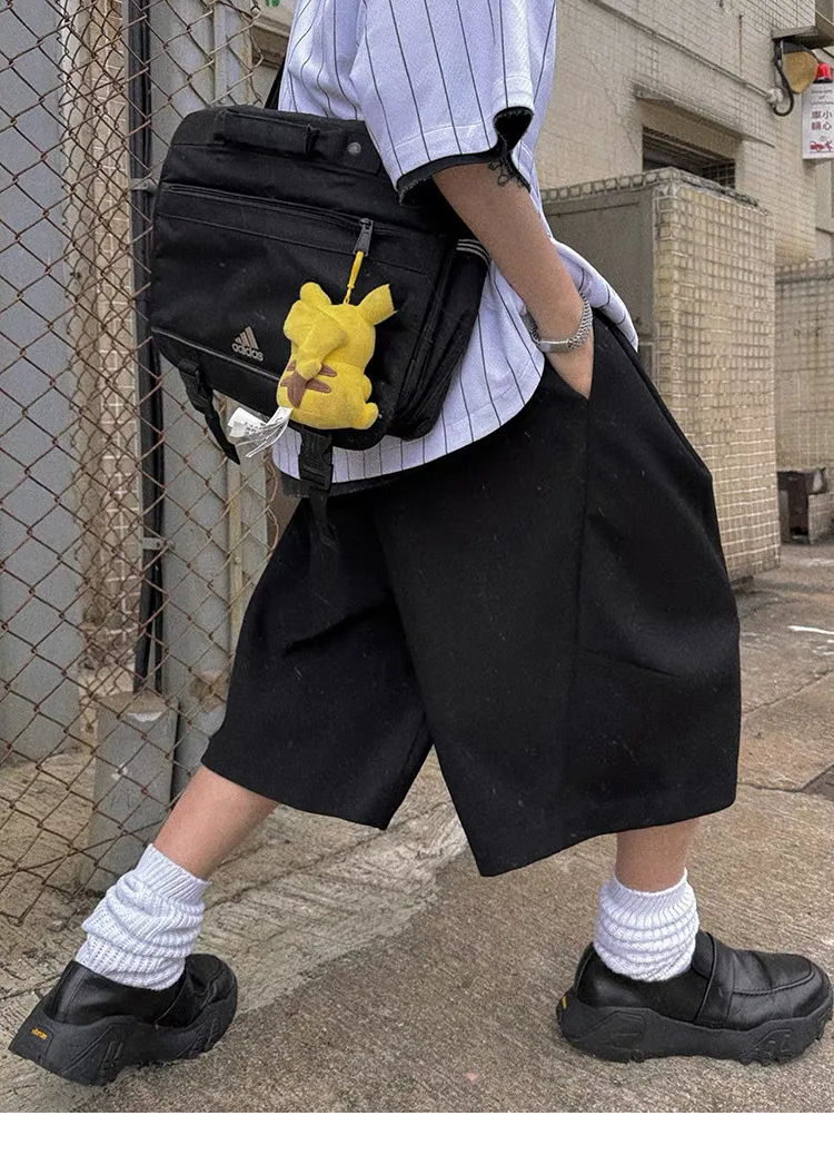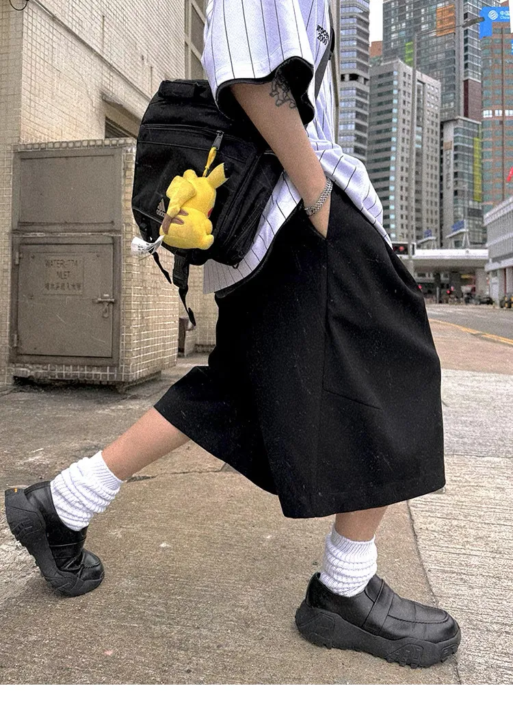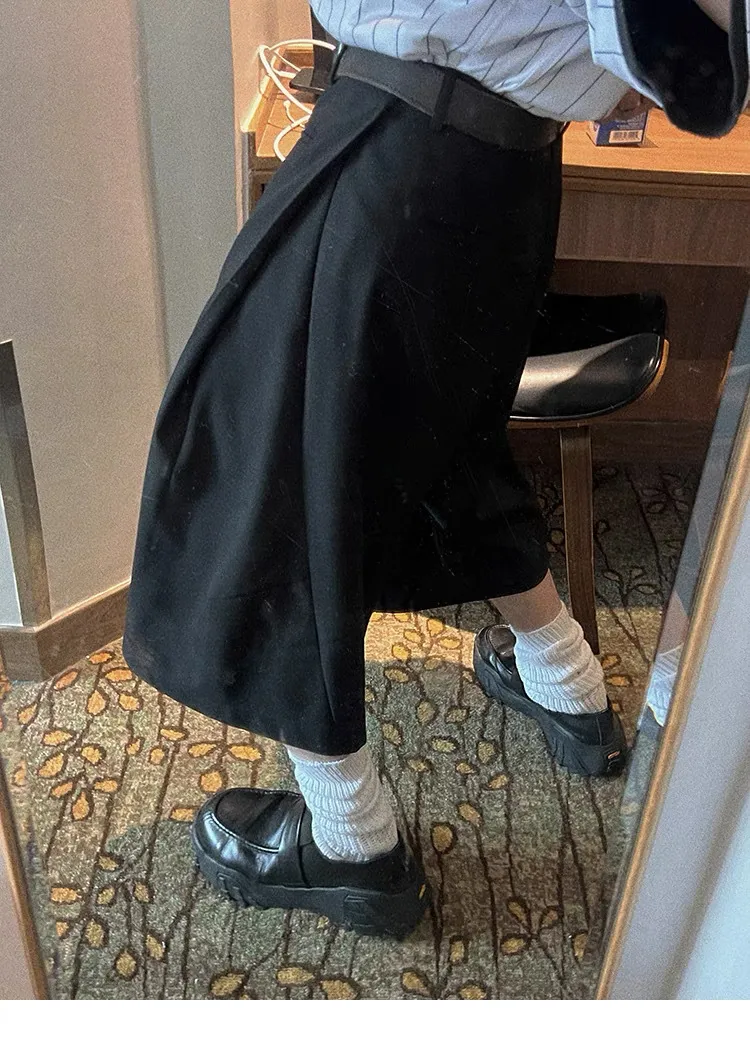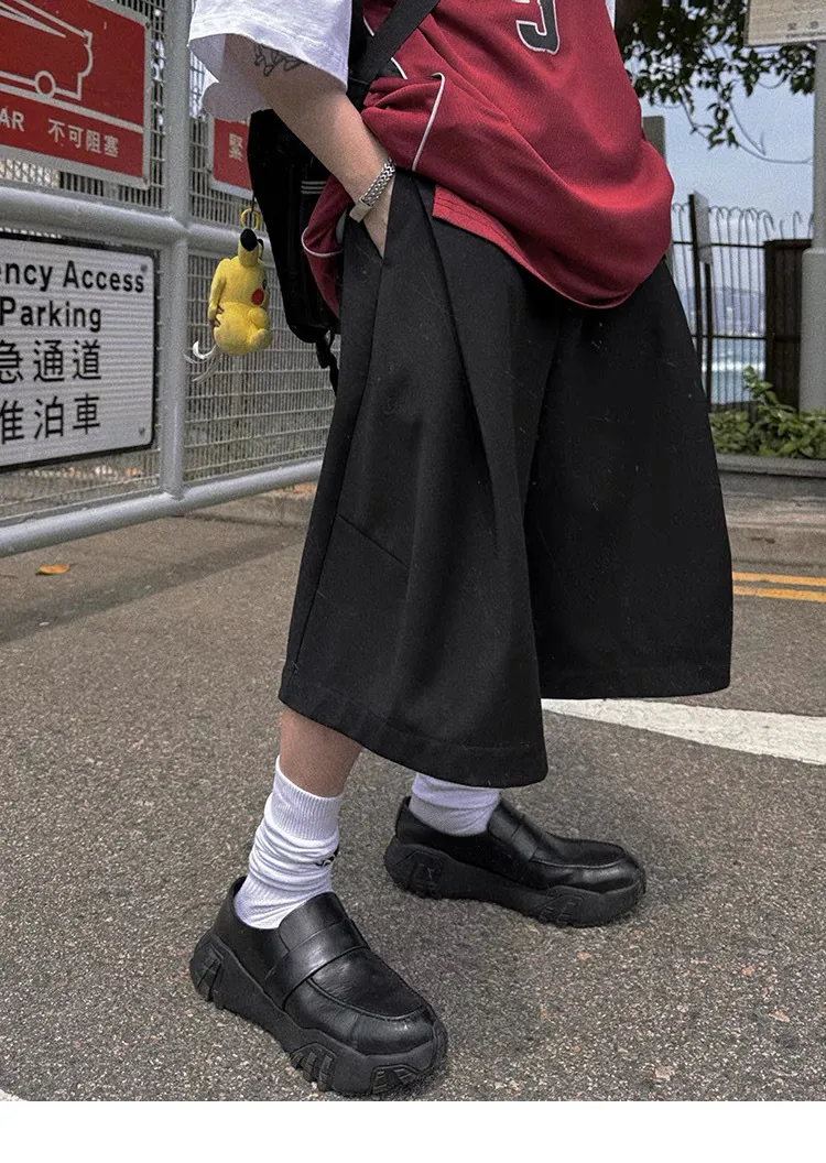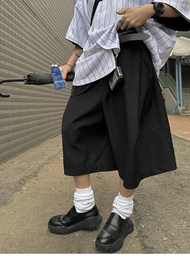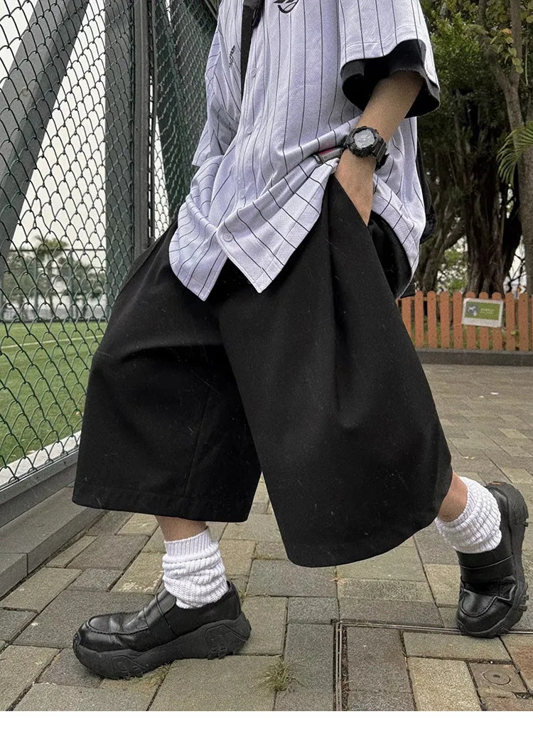 AUROCEAN 牛奶絲 彎刀打褶 西裝短褲(黑色)