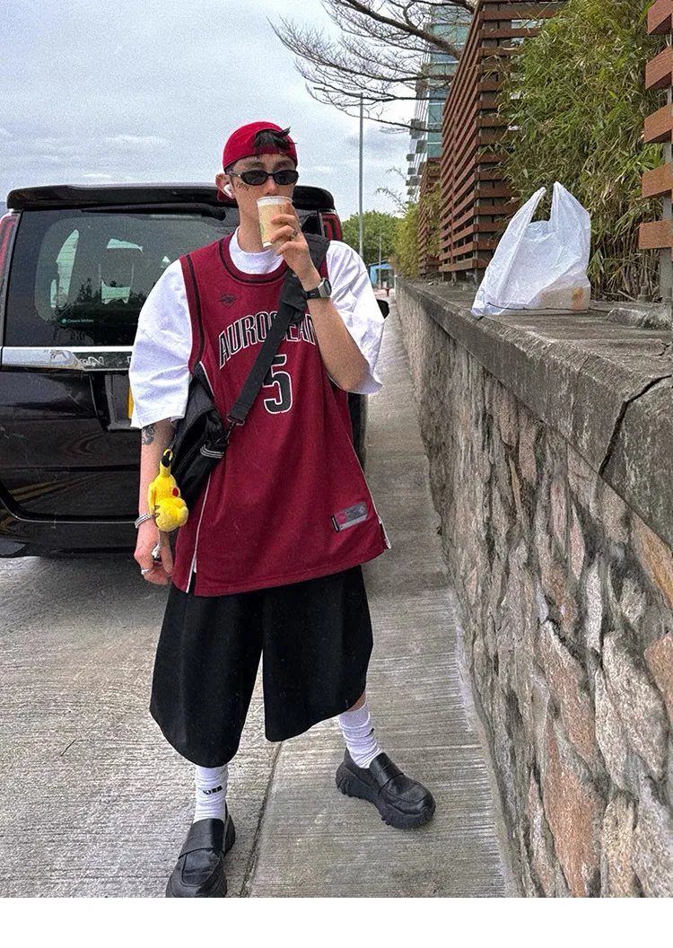AUROCEAN 雙口袋 做舊破壞 廓形工裝 七分褲(銀灰色)