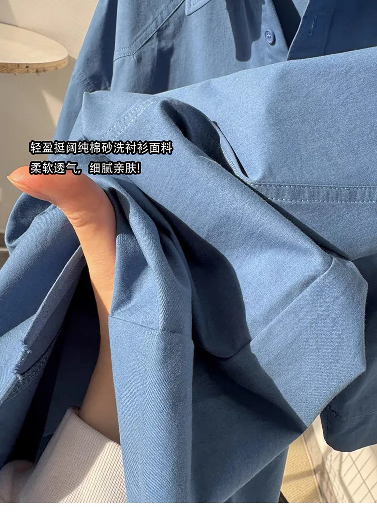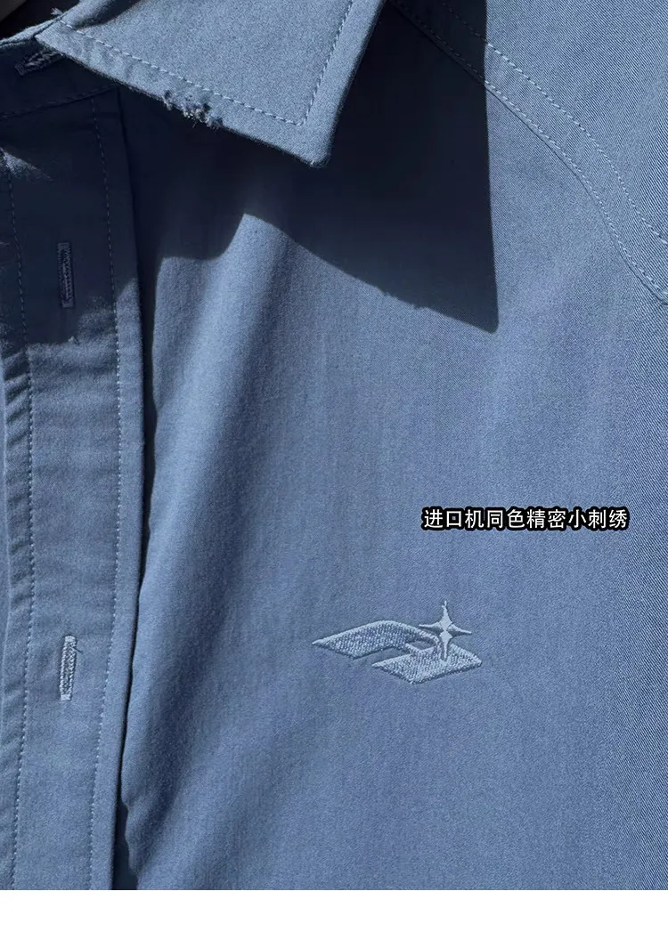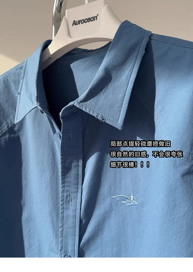 AUROCEAN 淺淺淺藍 寬肩廓形 做舊 襯衫(淺藍色)