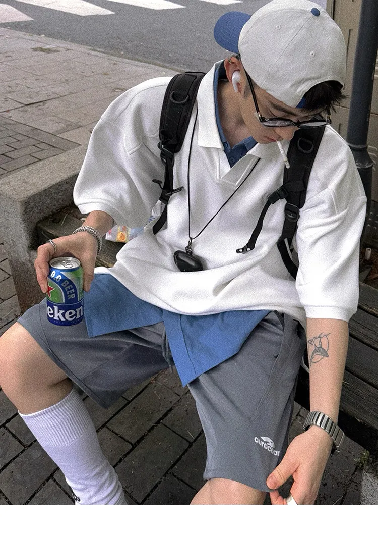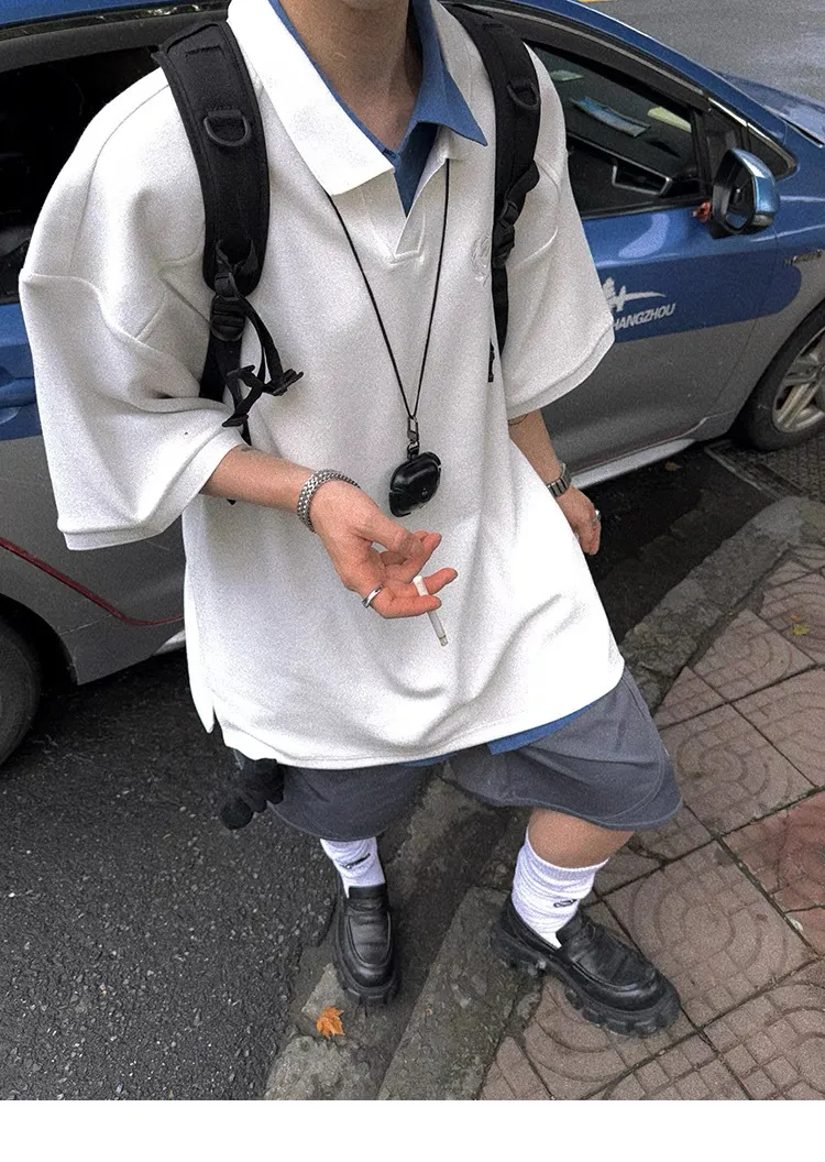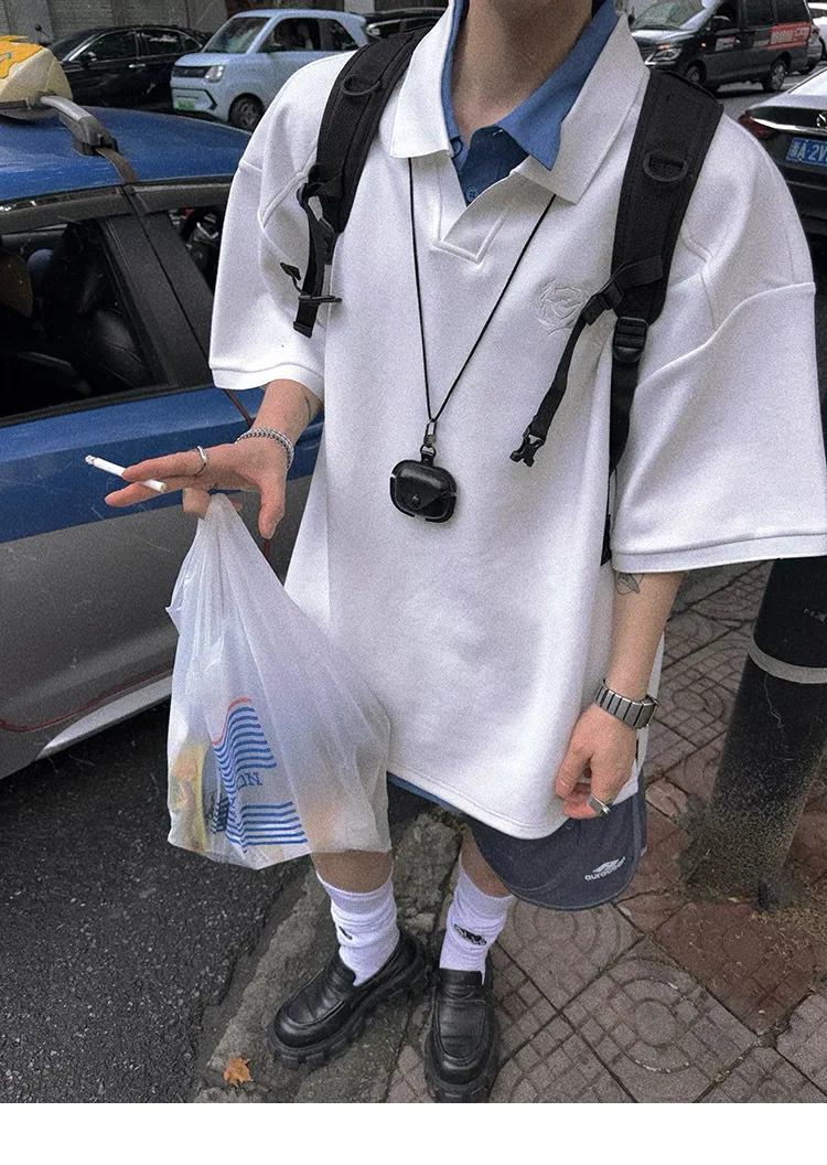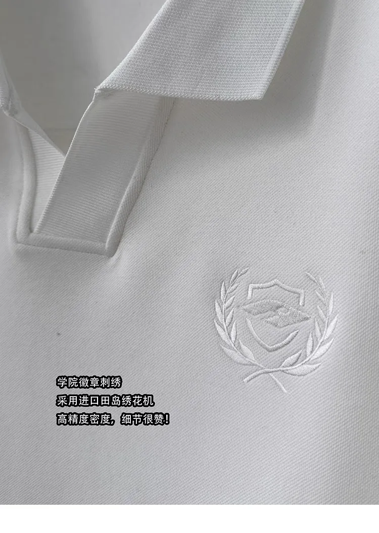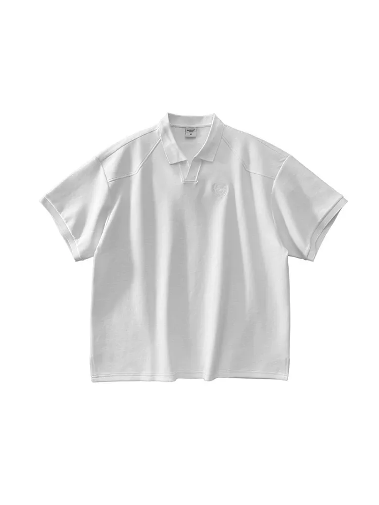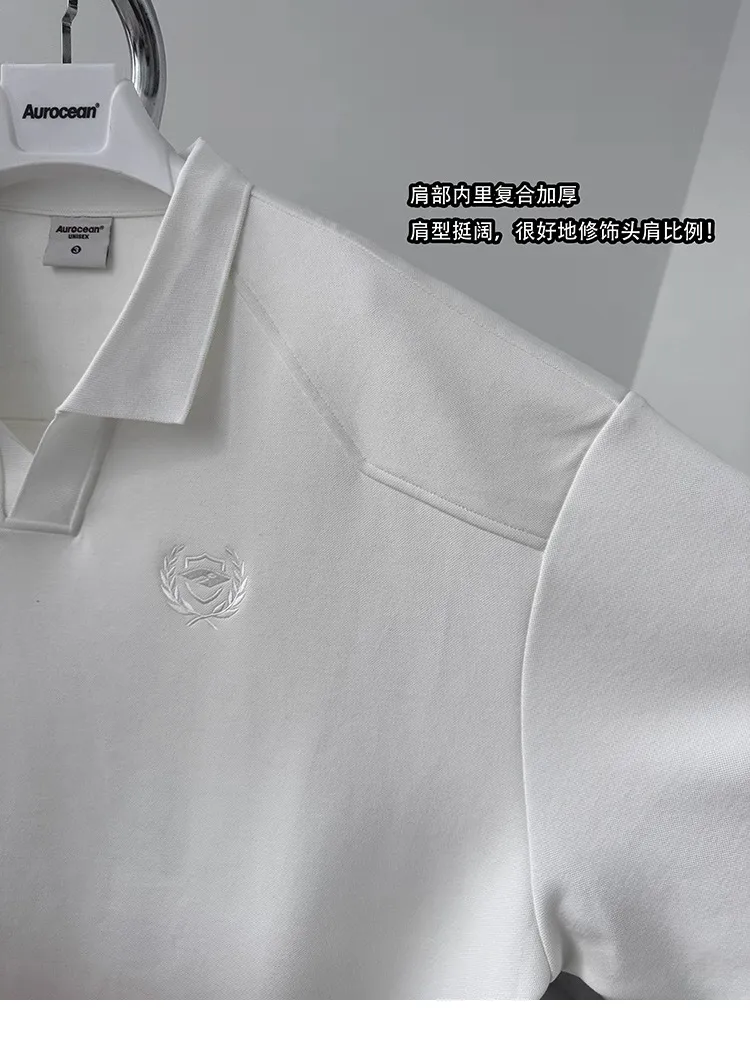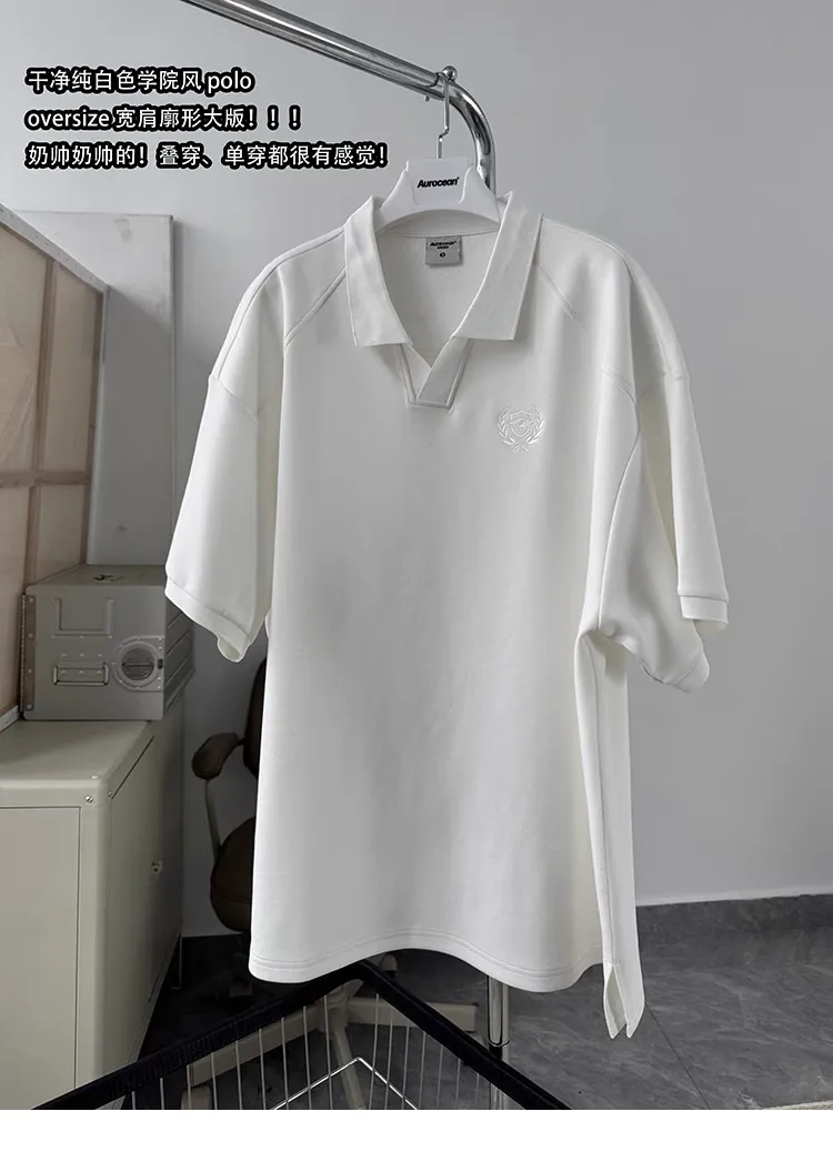 AUROCEAN 寬肩廓型 學院風 POLO衫(白色)