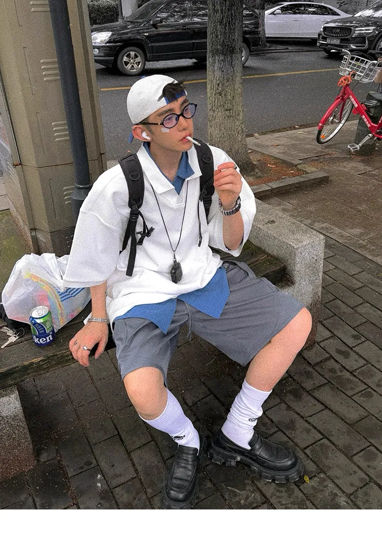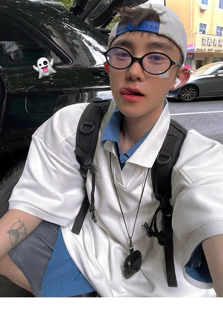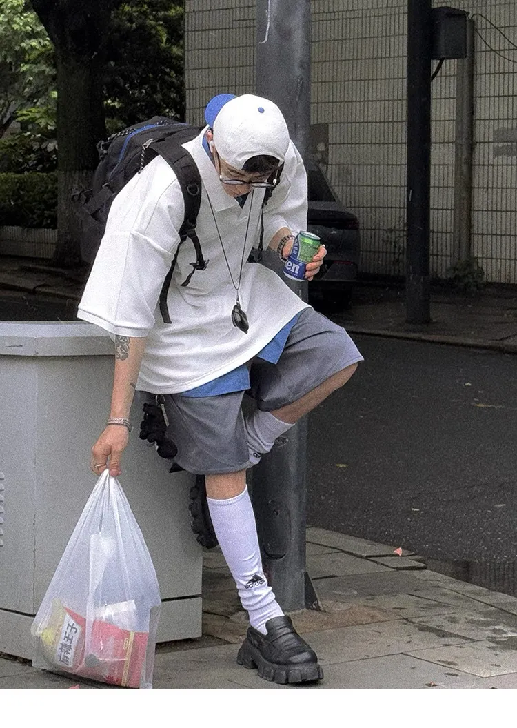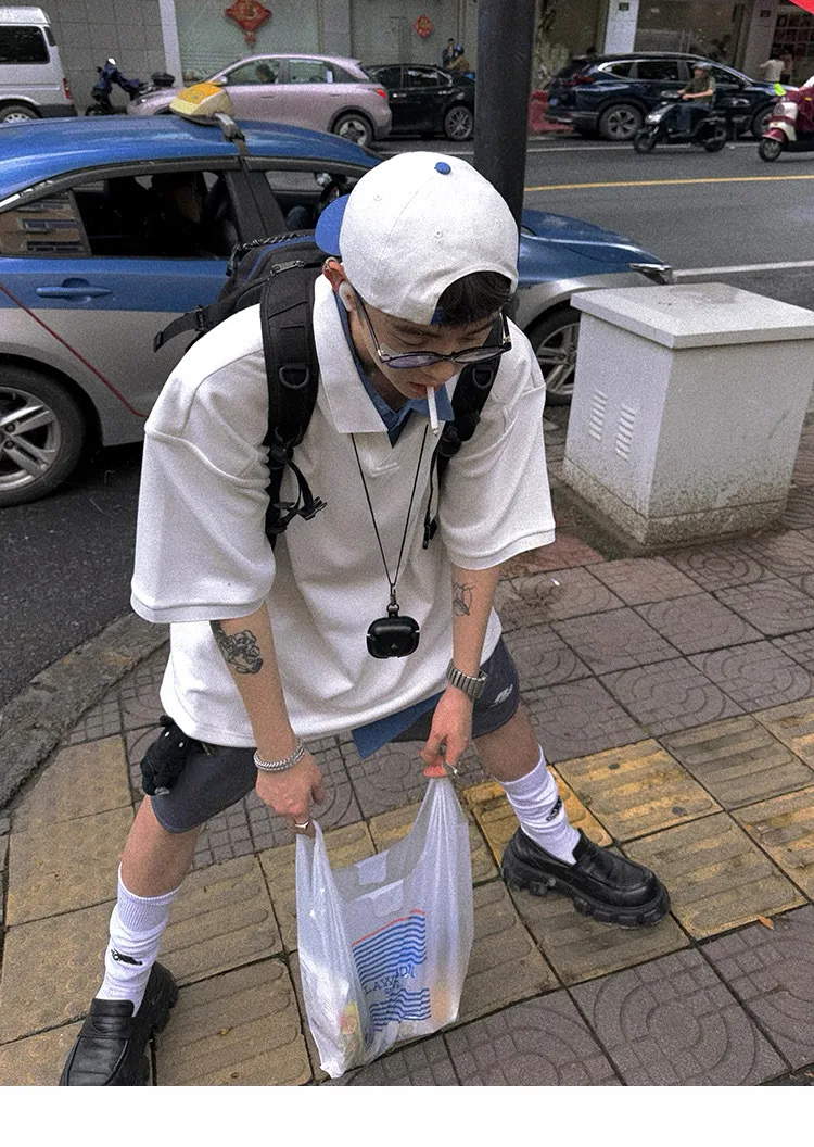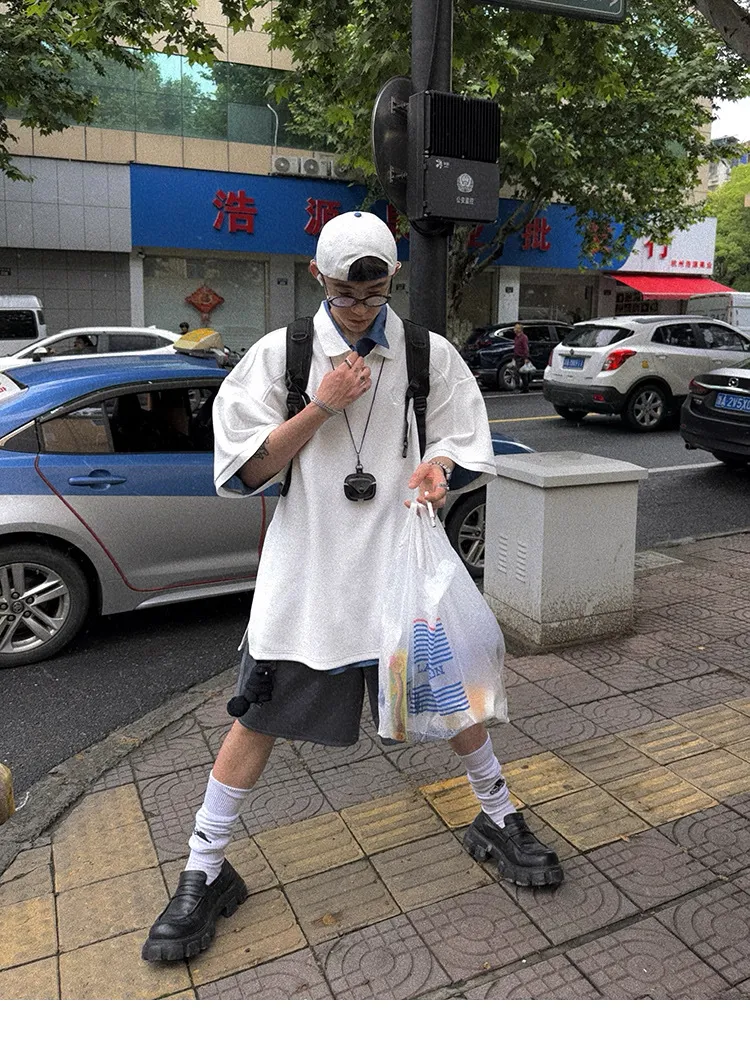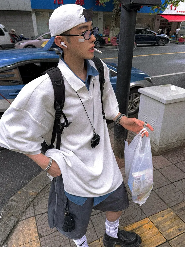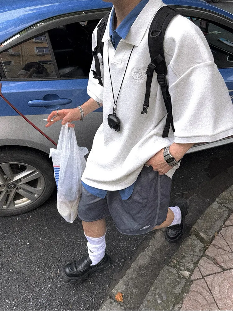 AUROCEAN 寬肩廓型 學院風 POLO衫(白色)