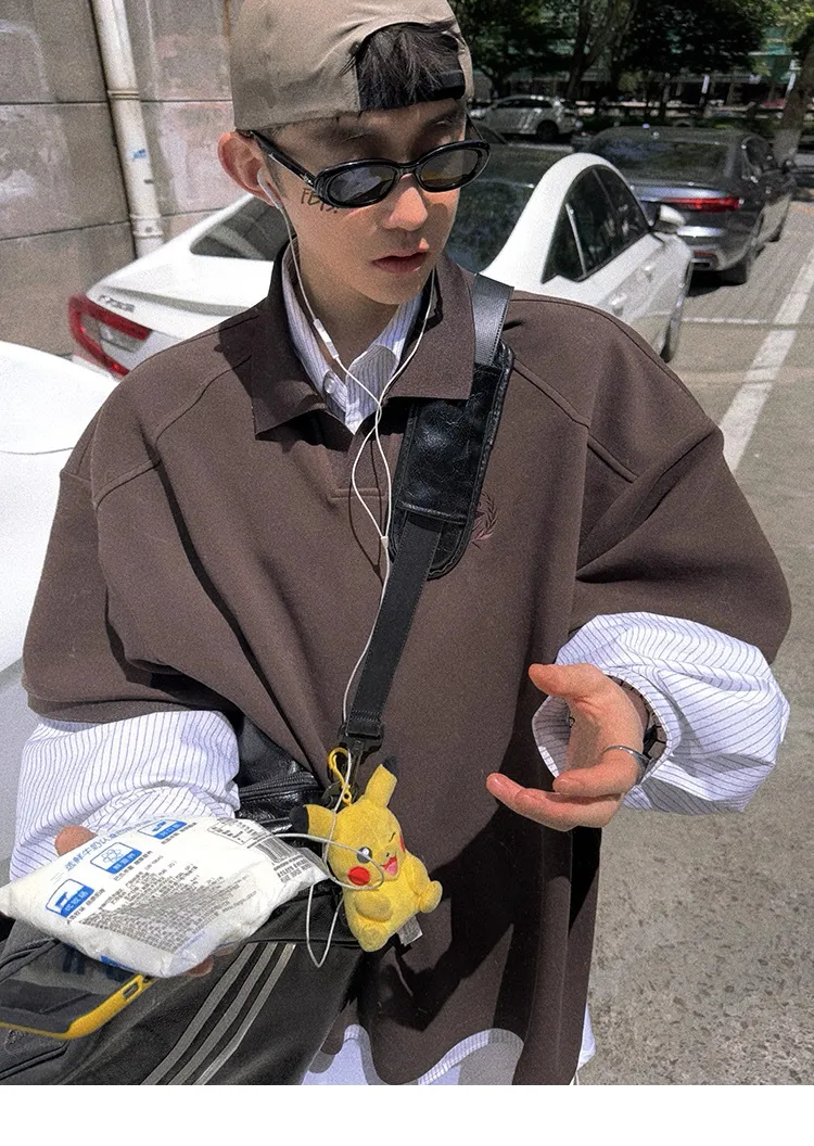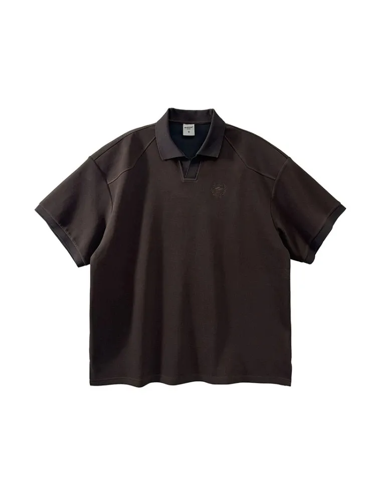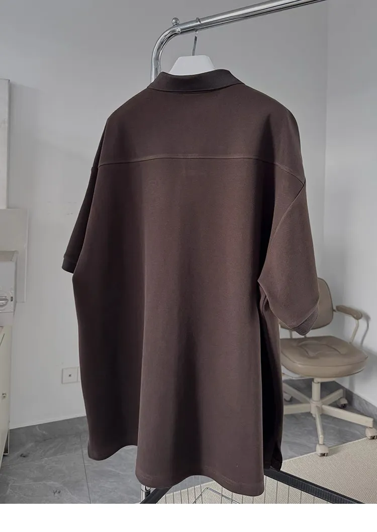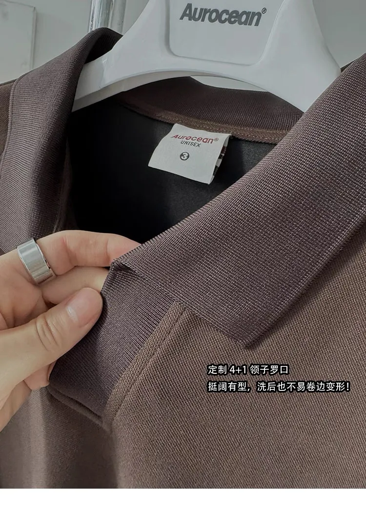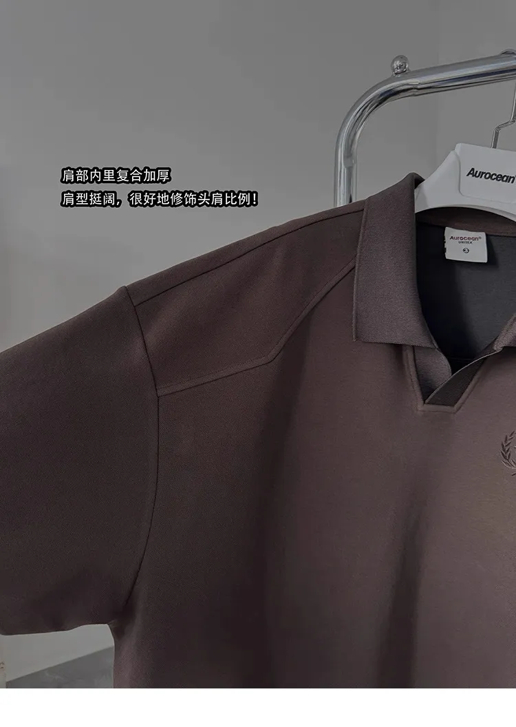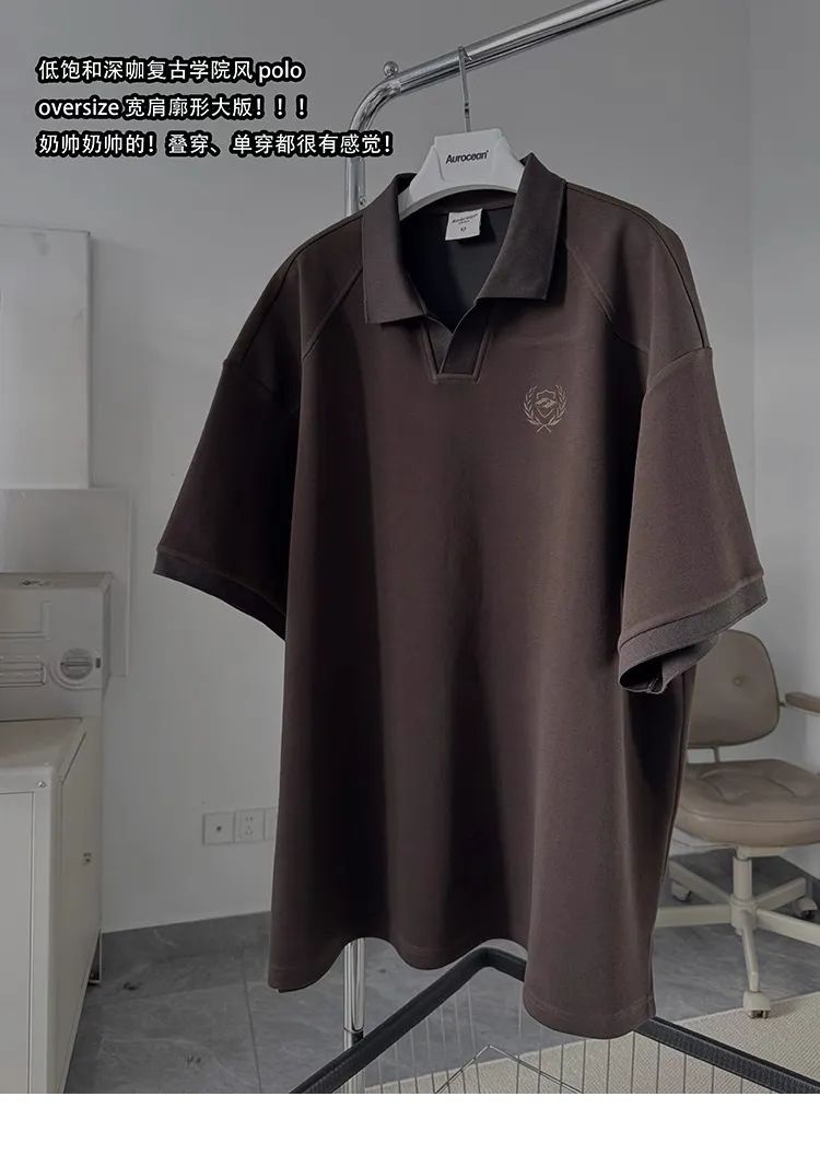 AUROCEAN 寬肩廓型 學院風 POLO衫(深咖)