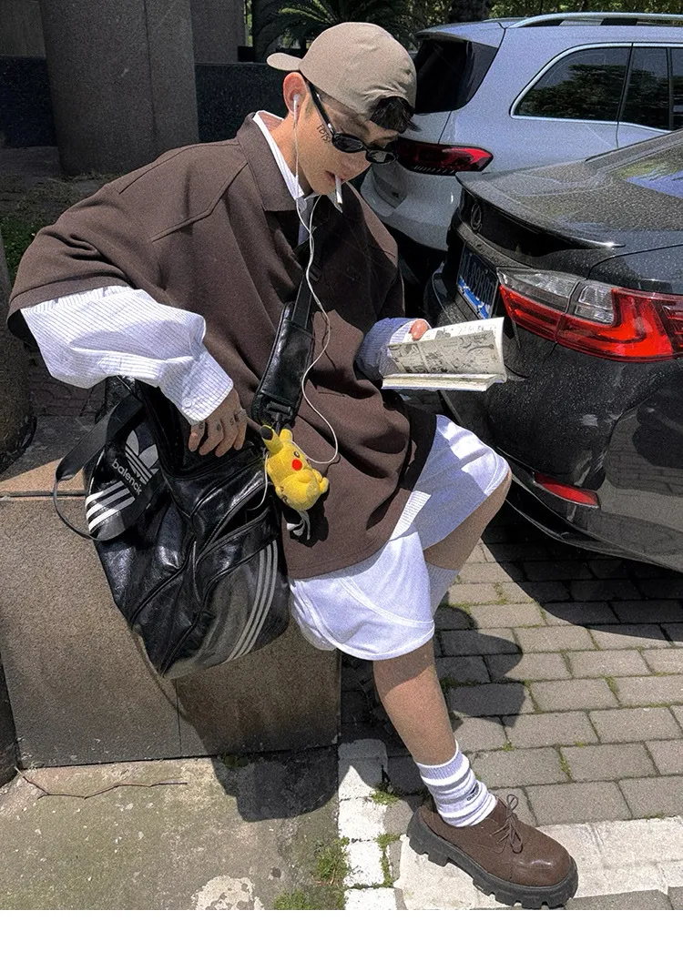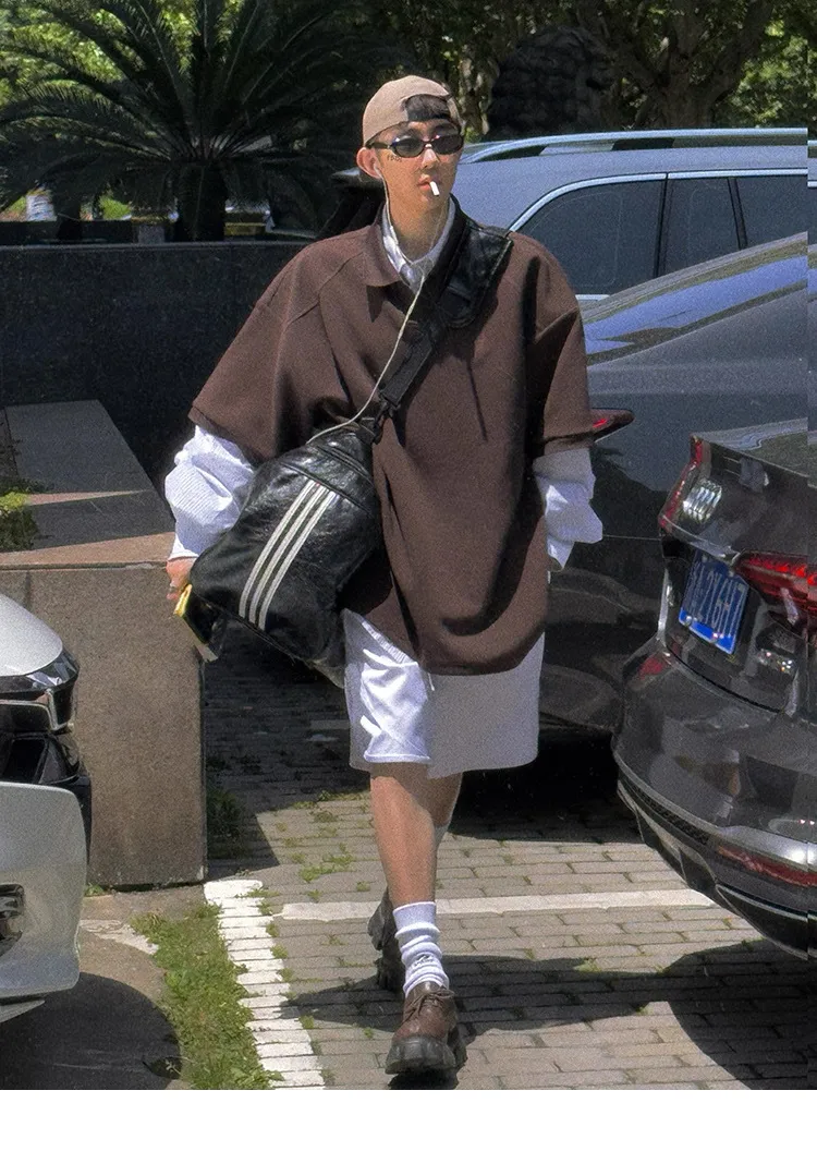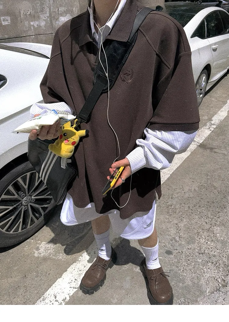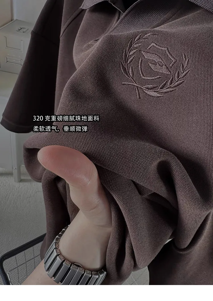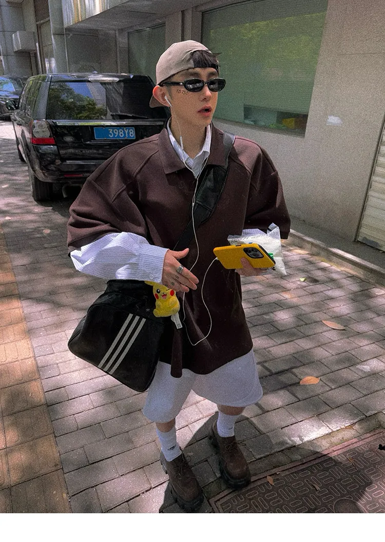 AUROCEAN 寬肩廓型 學院風 POLO衫(深咖)