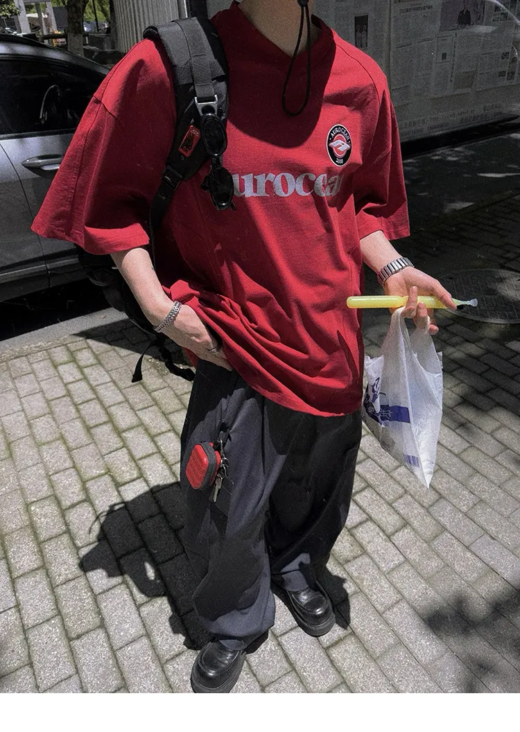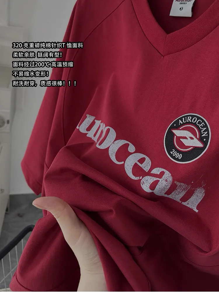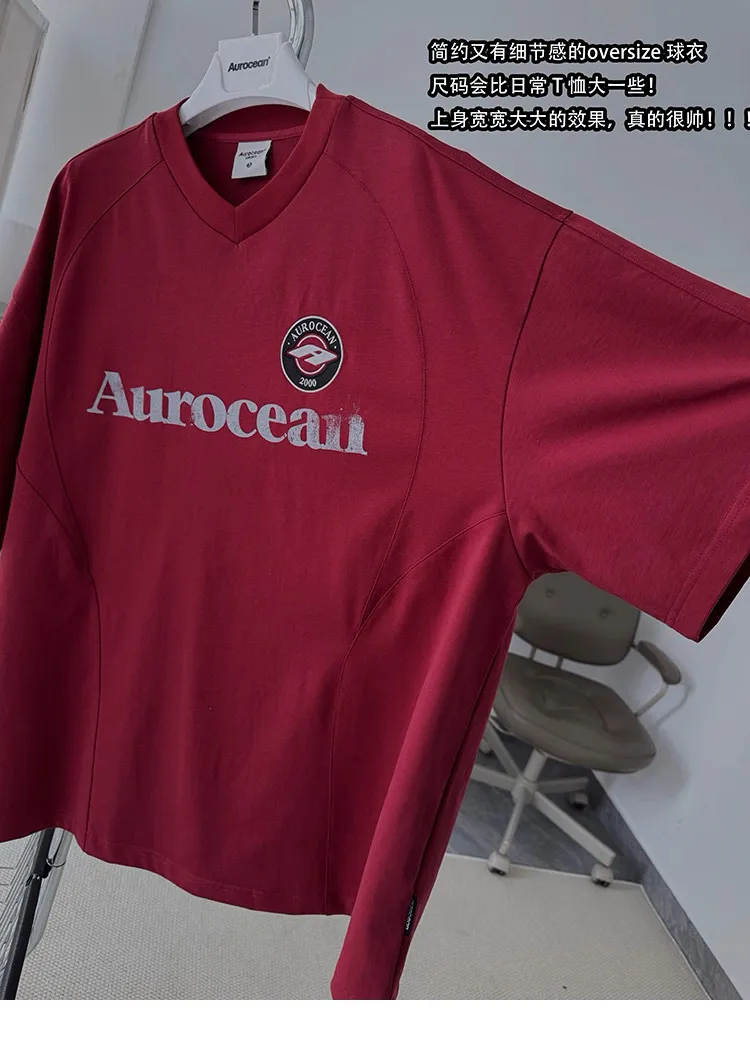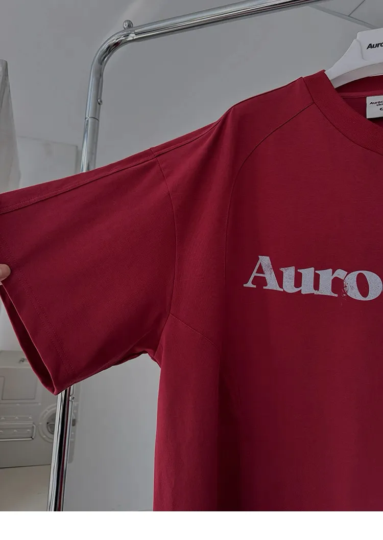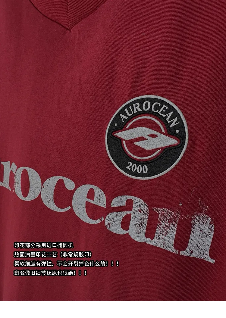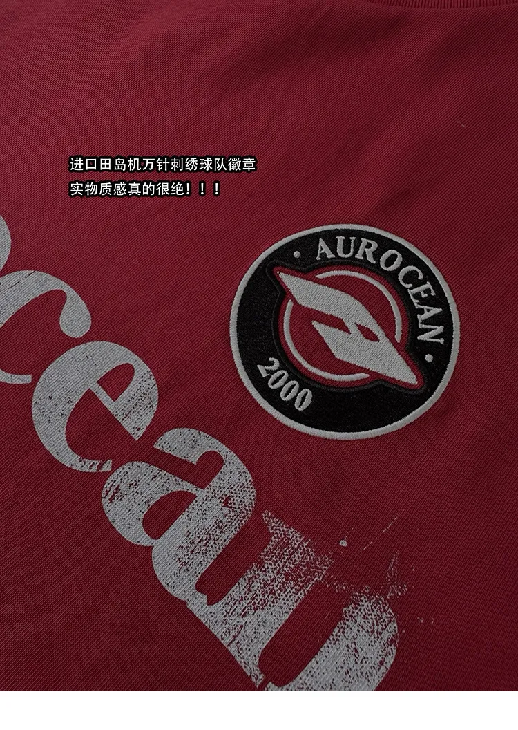 AUROCEAN 復古徽章刺繡 做舊 短袖(紅色)