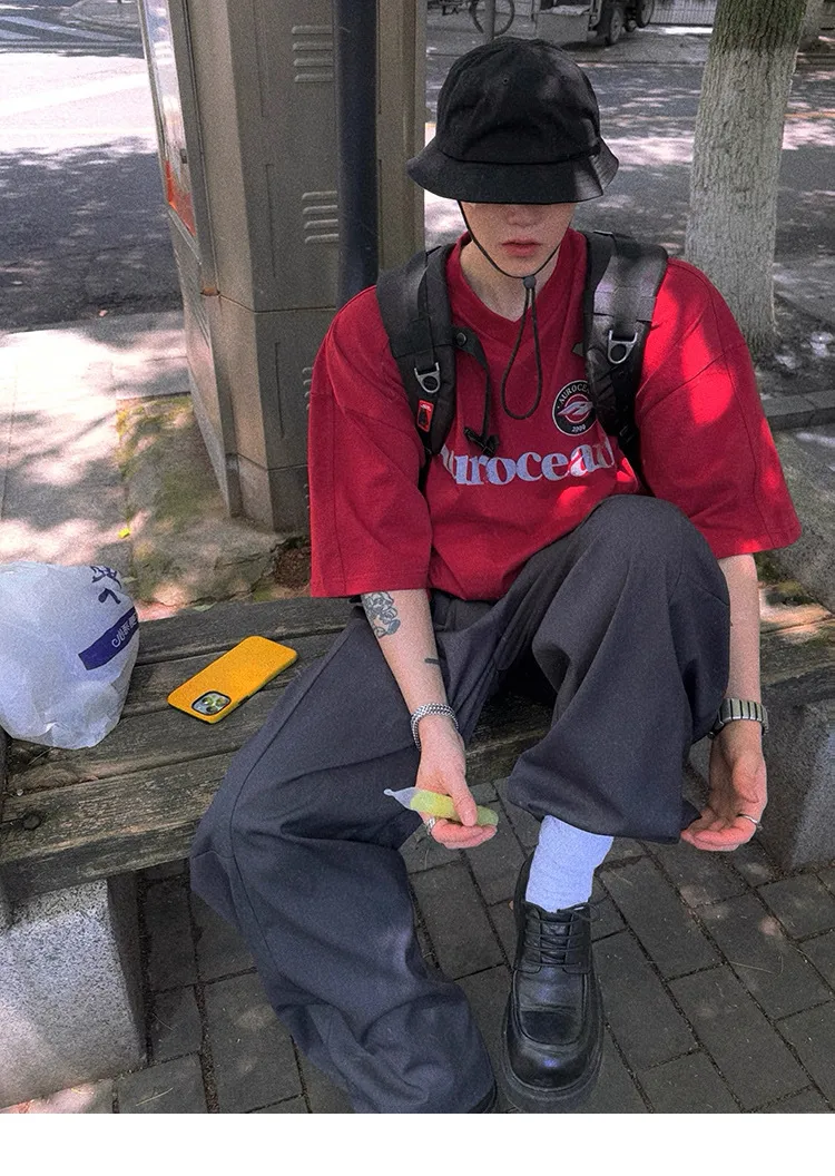 AUROCEAN 千禧少年 油墨印花 做舊破壞 短袖(黑色)