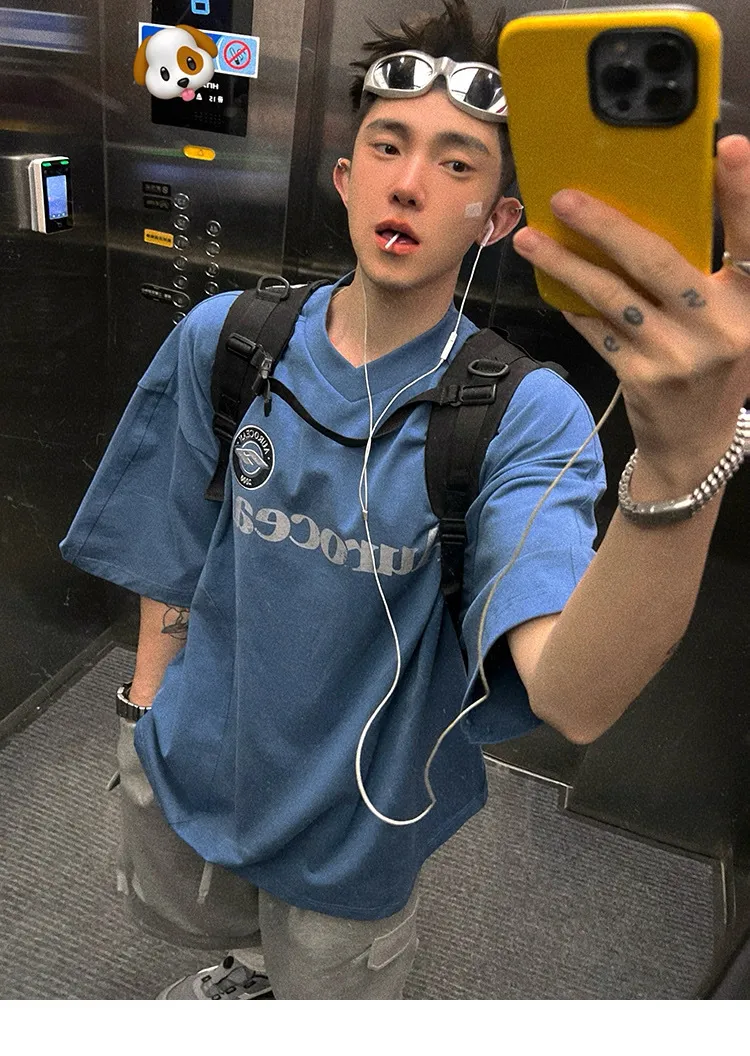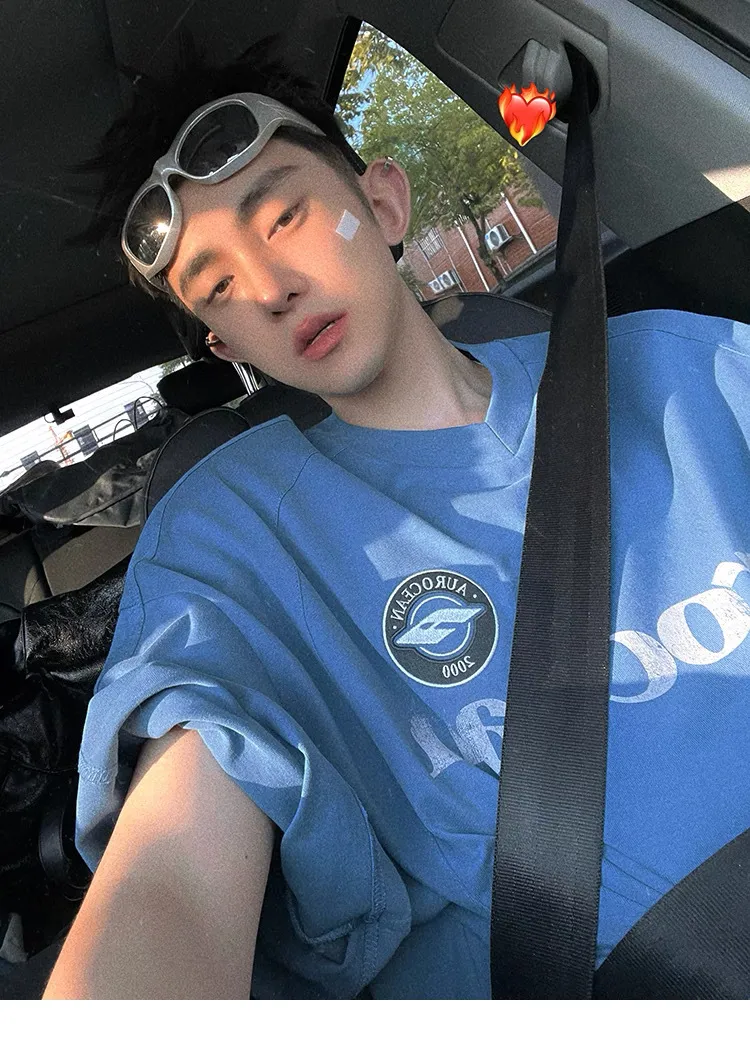 AUROCEAN 千禧少年 油墨印花 做舊破壞 短袖(黑色)