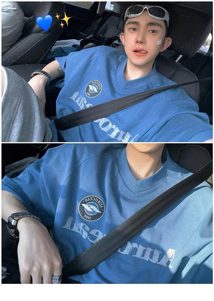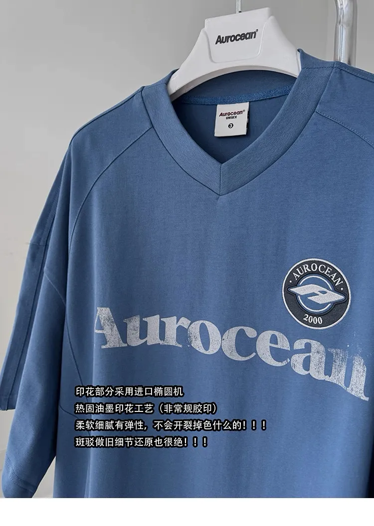 AUROCEAN 復古徽章刺繡 做舊 短袖(藍色)