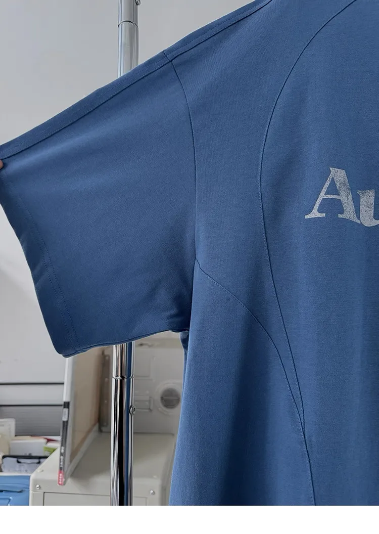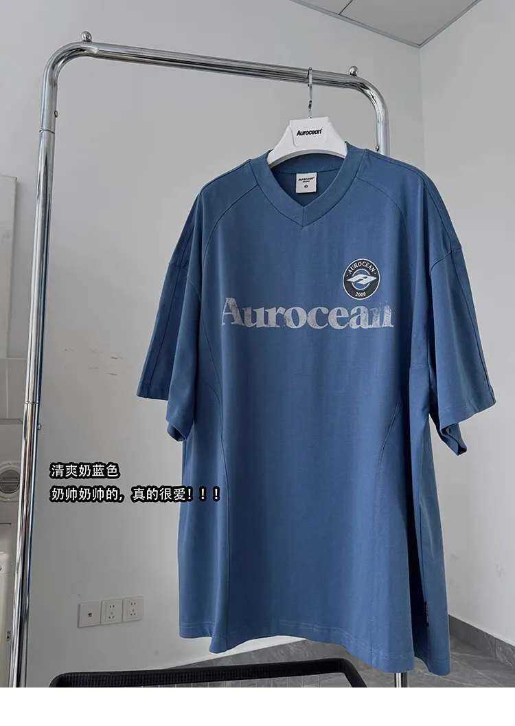 AUROCEAN 重磅純色 訂製布料 復古球衣 短袖 (藍色)