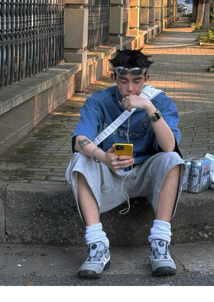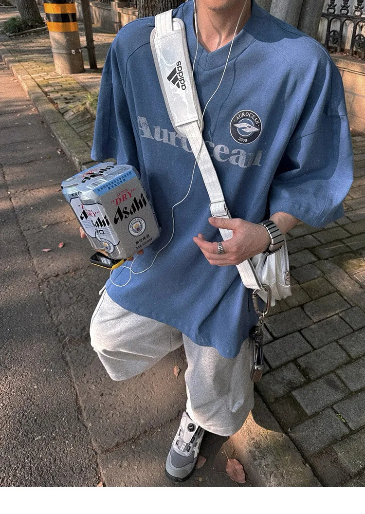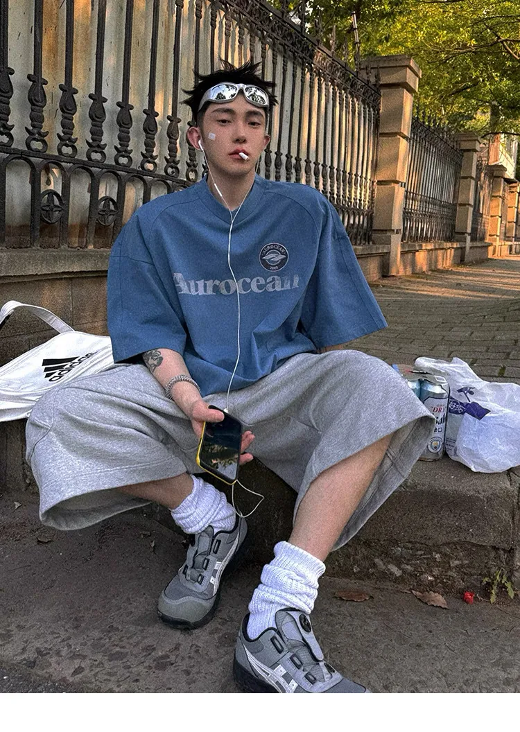 AUROCEAN 千禧少年 油墨印花 做舊破壞 短袖(灰白)