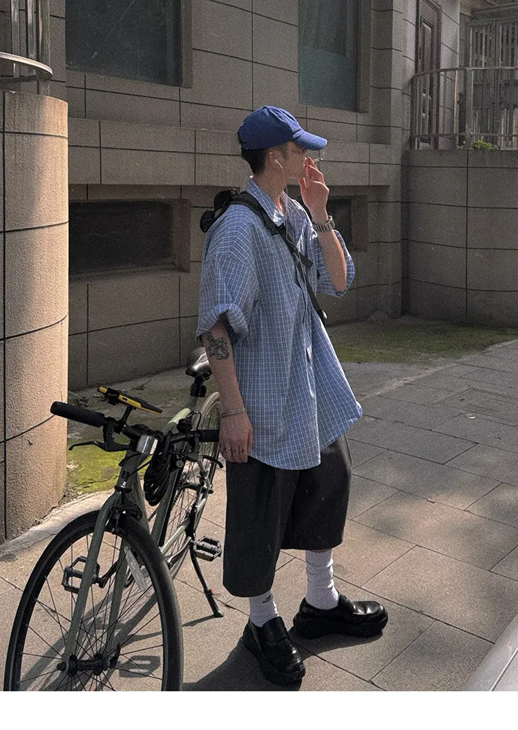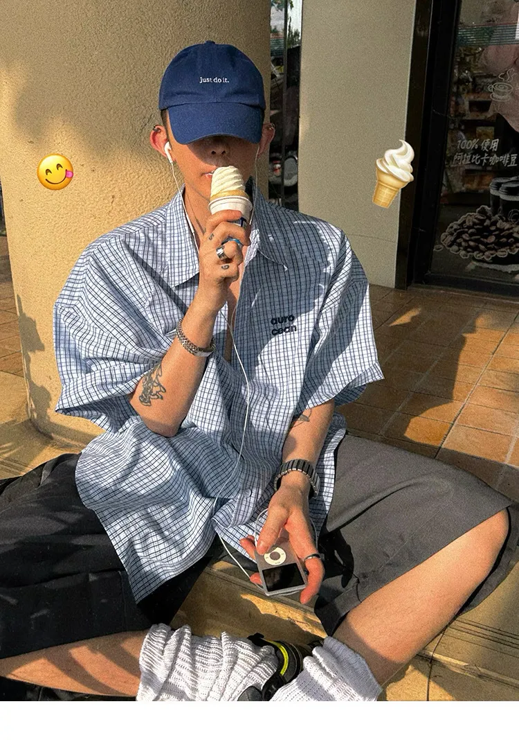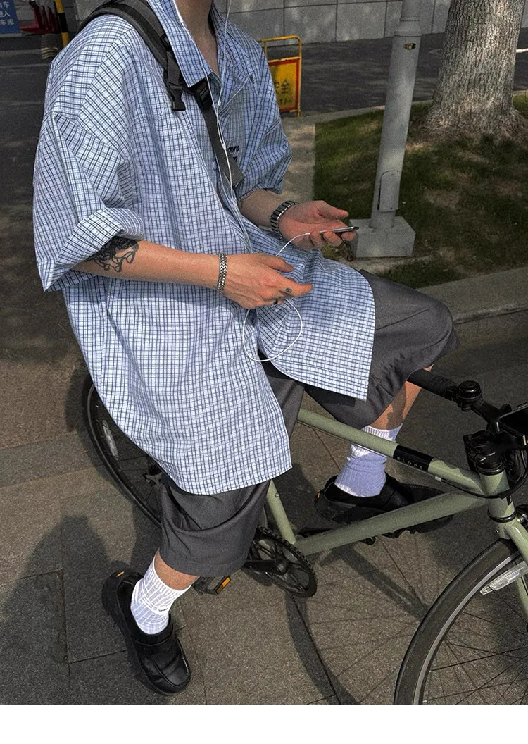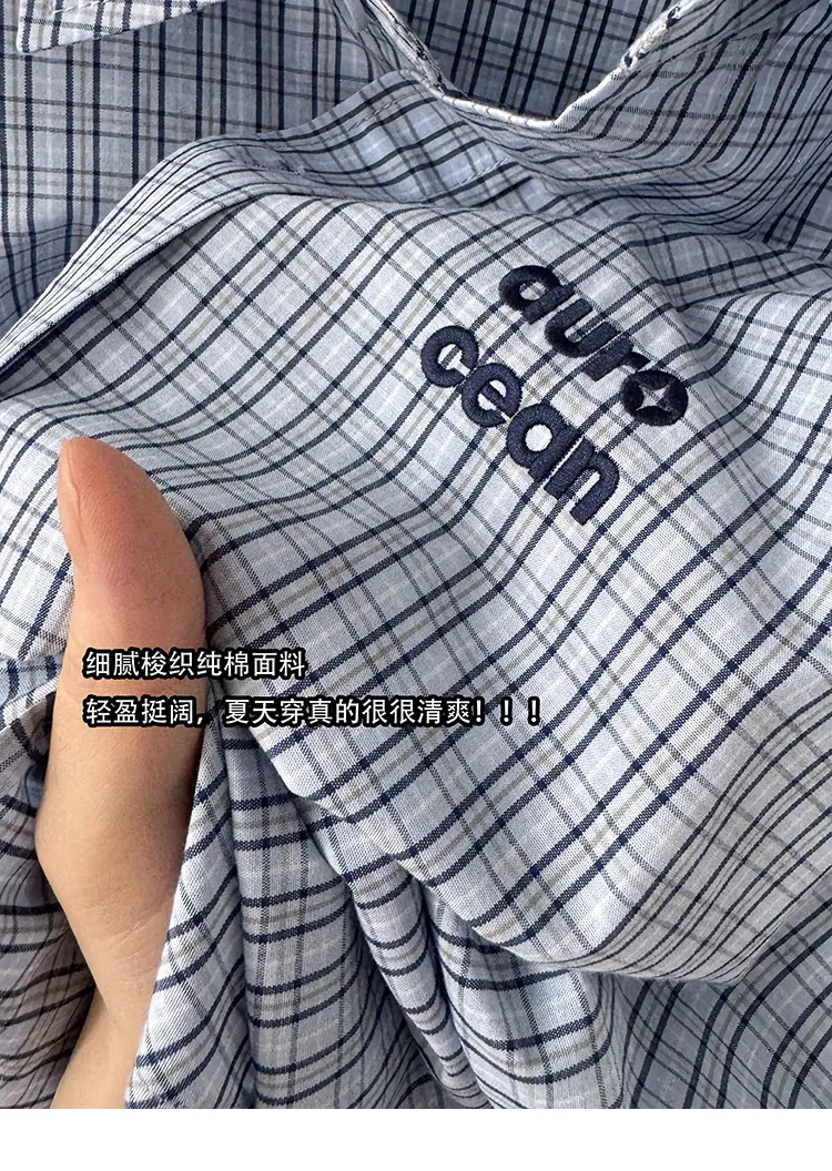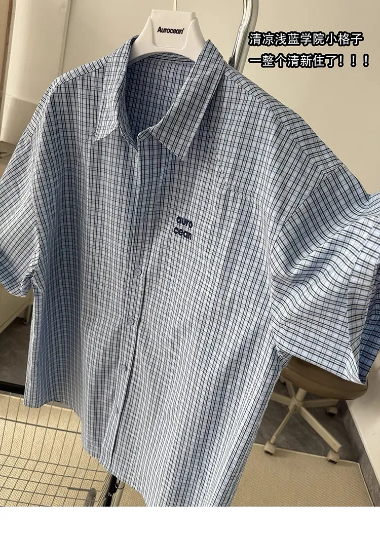 AUROCEAN MIU系穿搭 小格子 襯衫(淺藍)