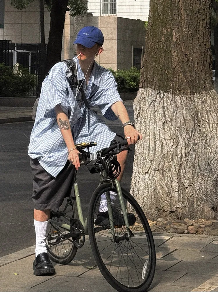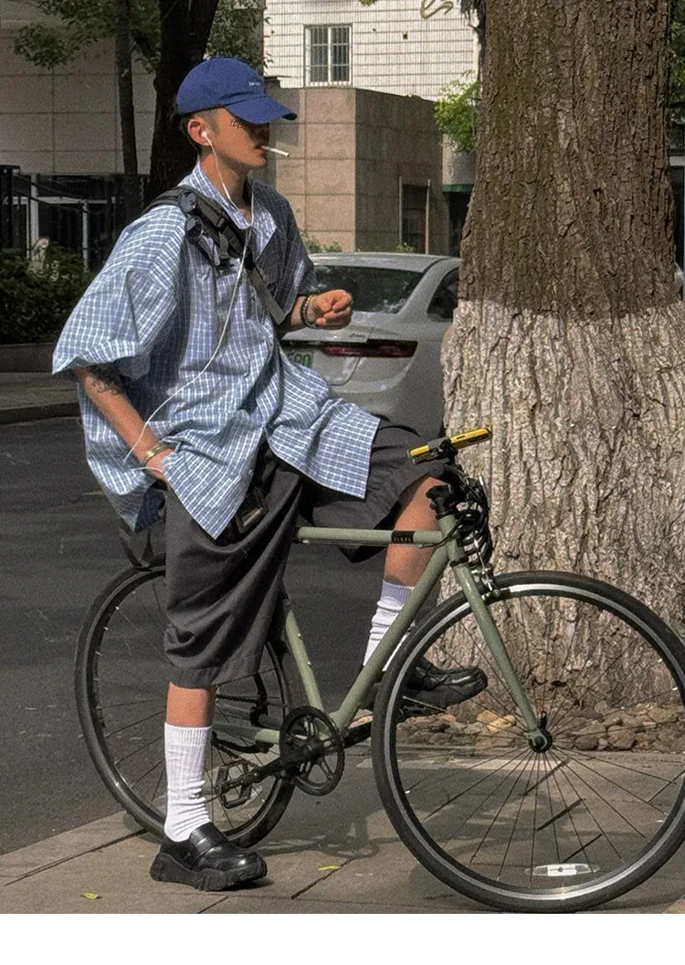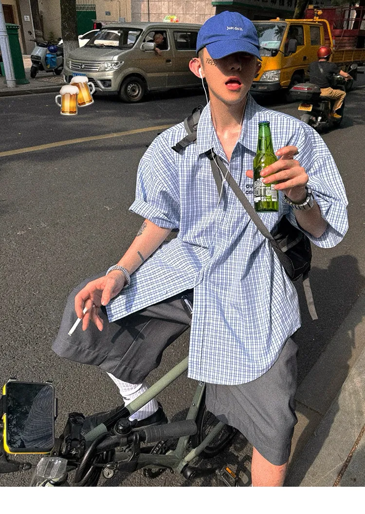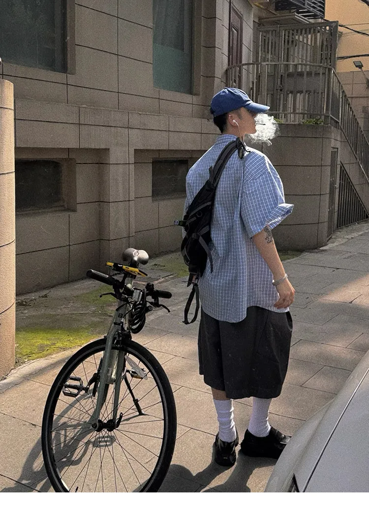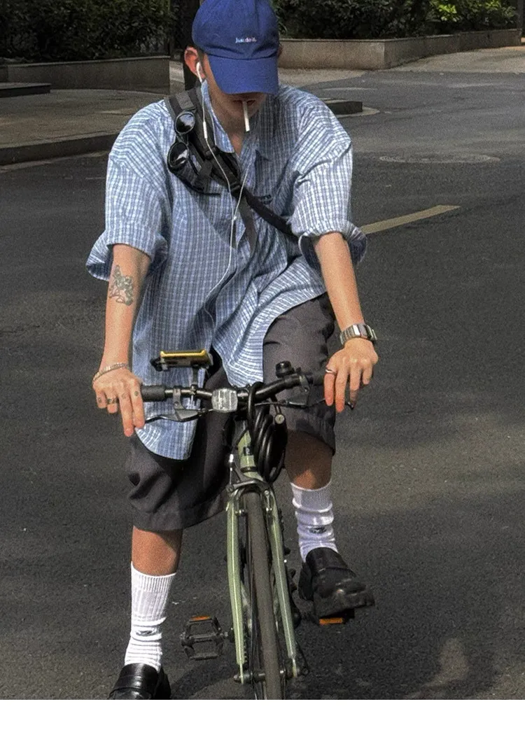 AUROCEAN MIU系穿搭 小格子 襯衫(淺藍)