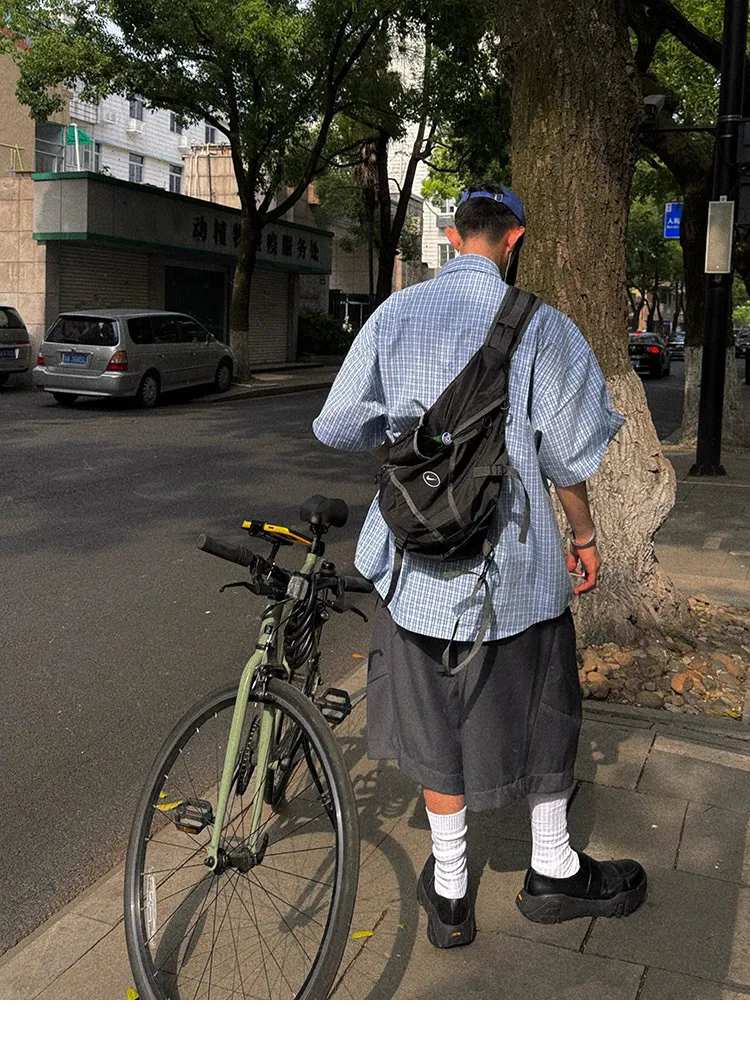 AUROCEAN 格紋肌理 撞色刺繡 寬肩 襯衫(黑色)