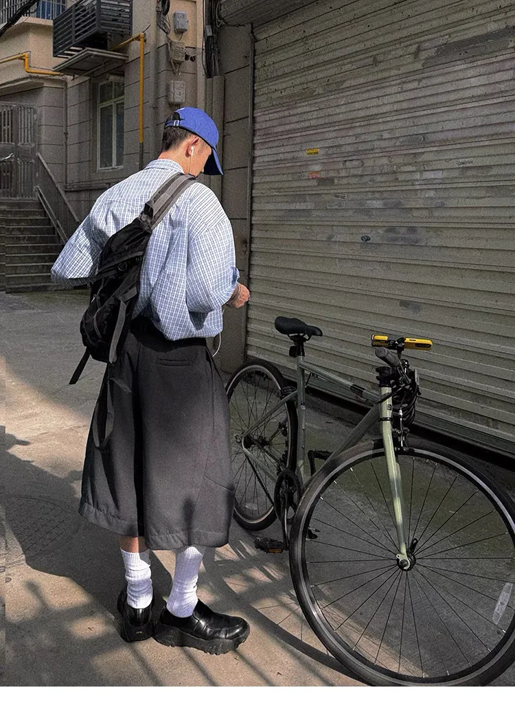 AUROCEAN 多口袋解構 竹節水洗 牛仔褲 七分褲(水洗黑)