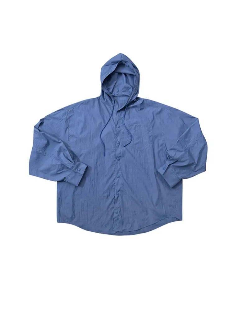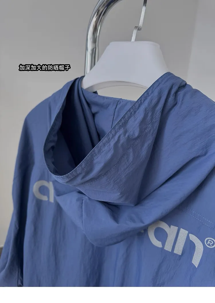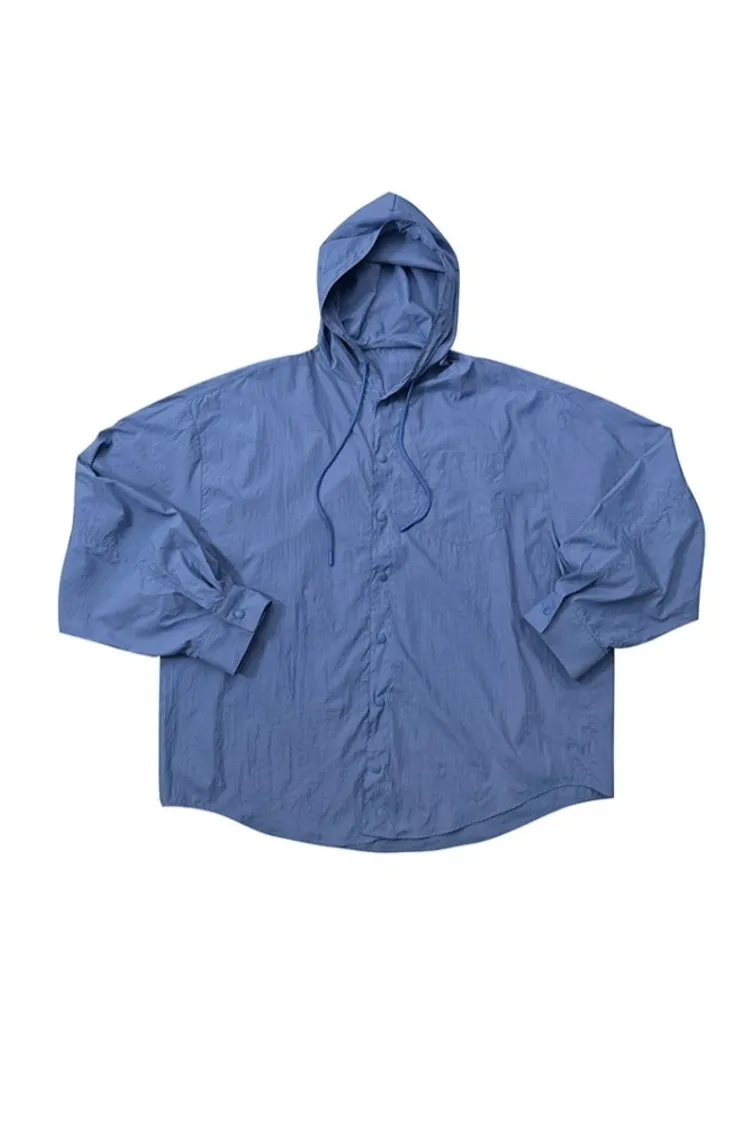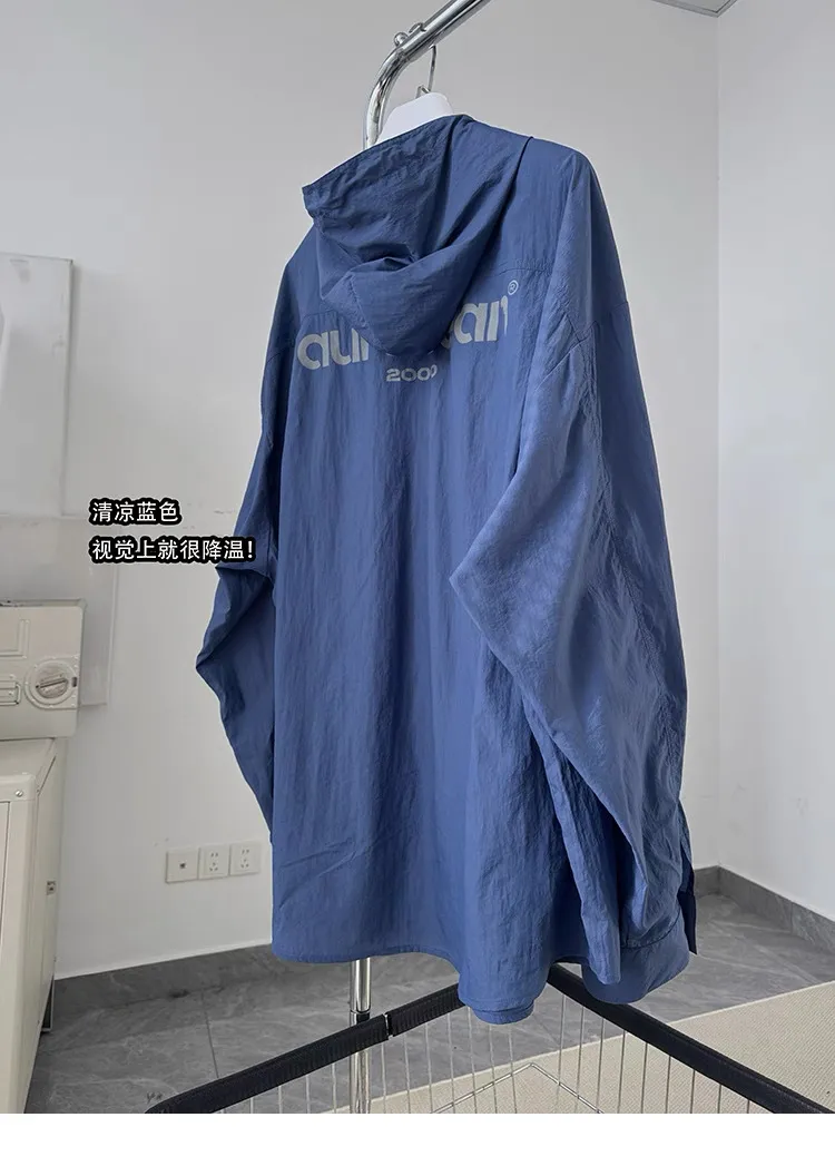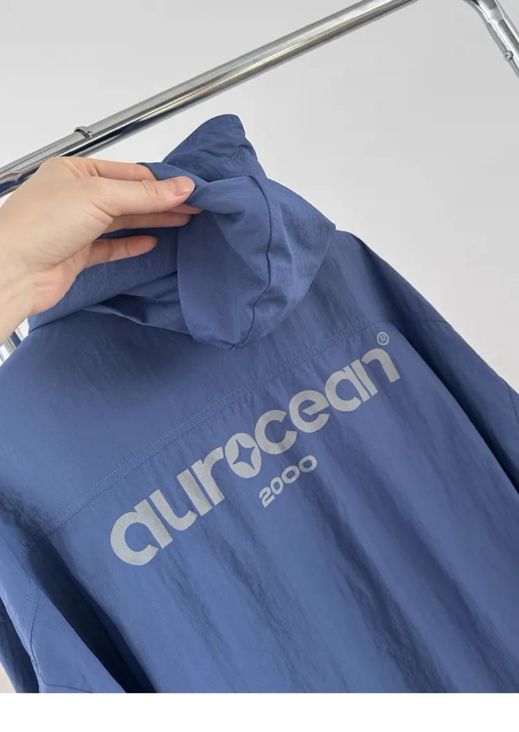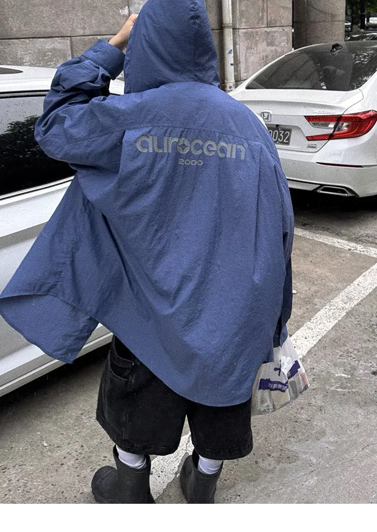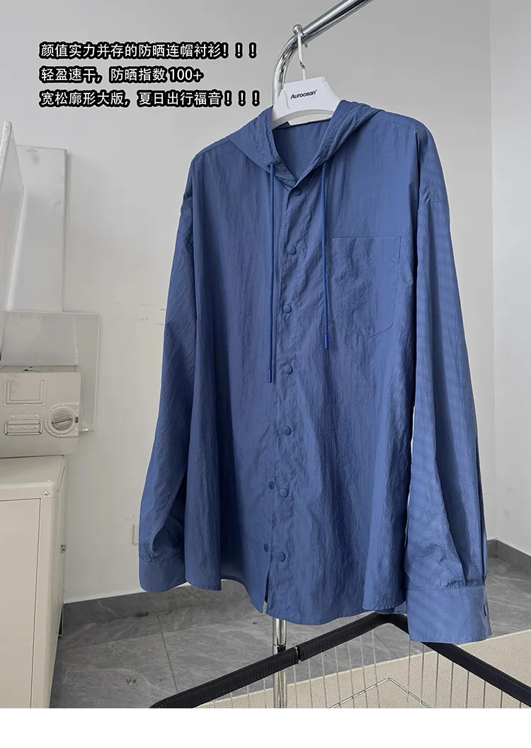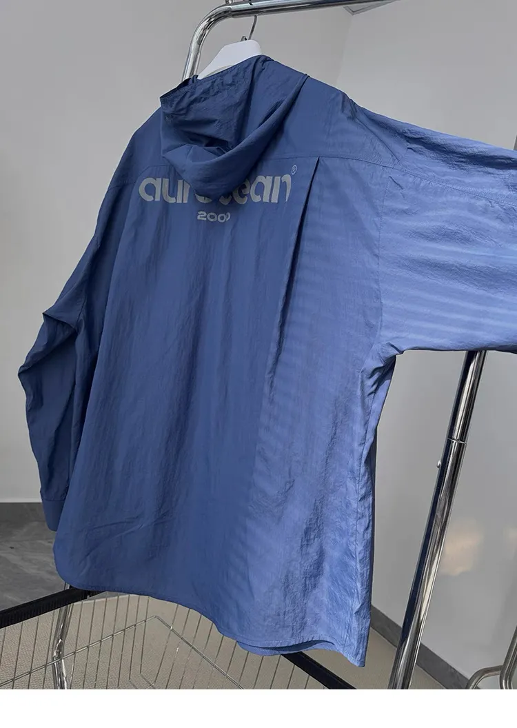 AUROCEAN 反光LOGO 連帽防曬 鈕扣 襯衫(藍色)