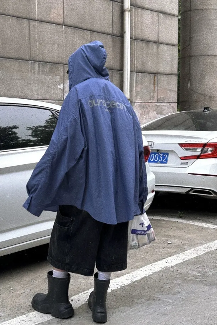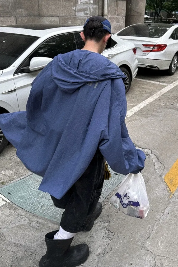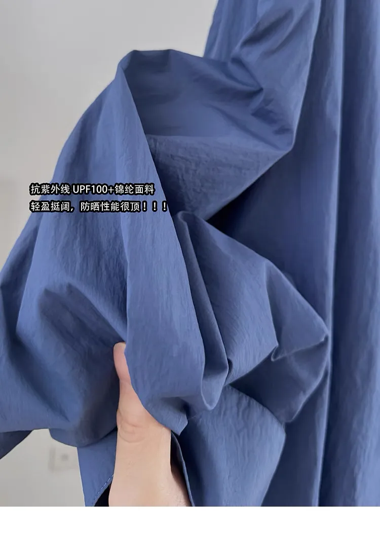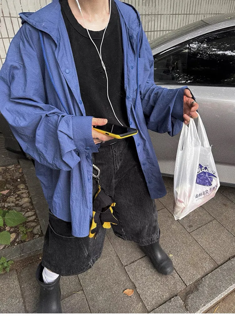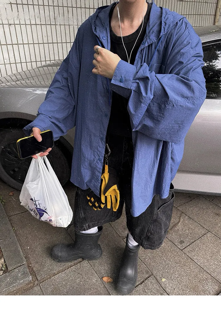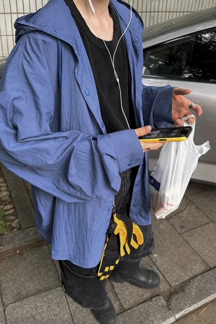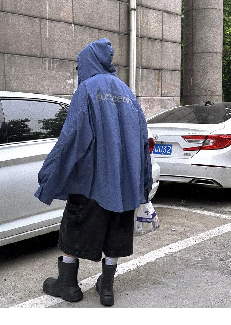 AUROCEAN 反光LOGO 連帽防曬 鈕扣 襯衫(藍色)