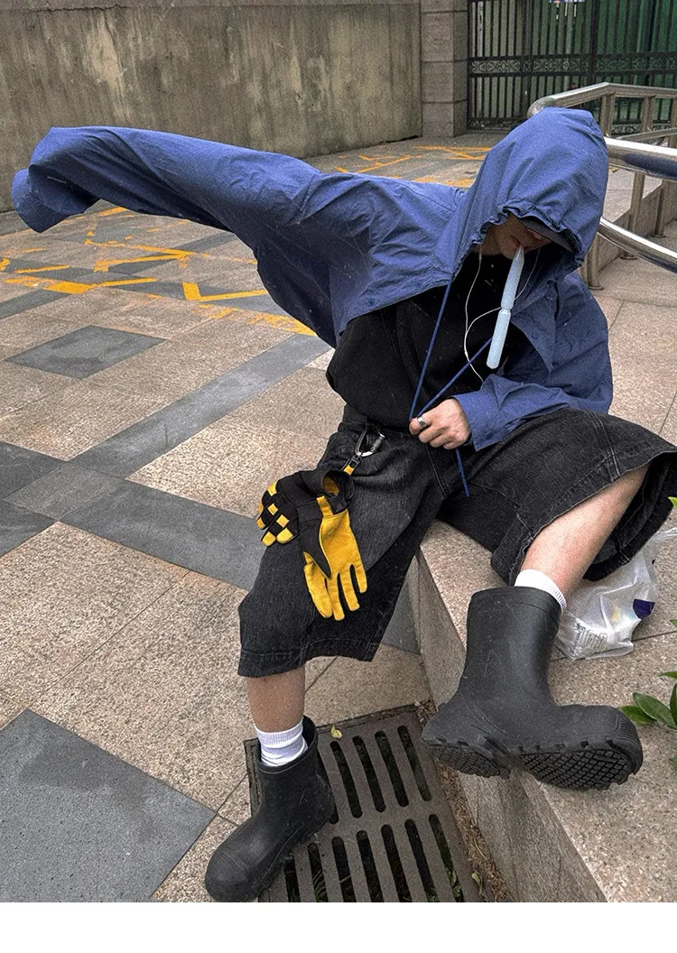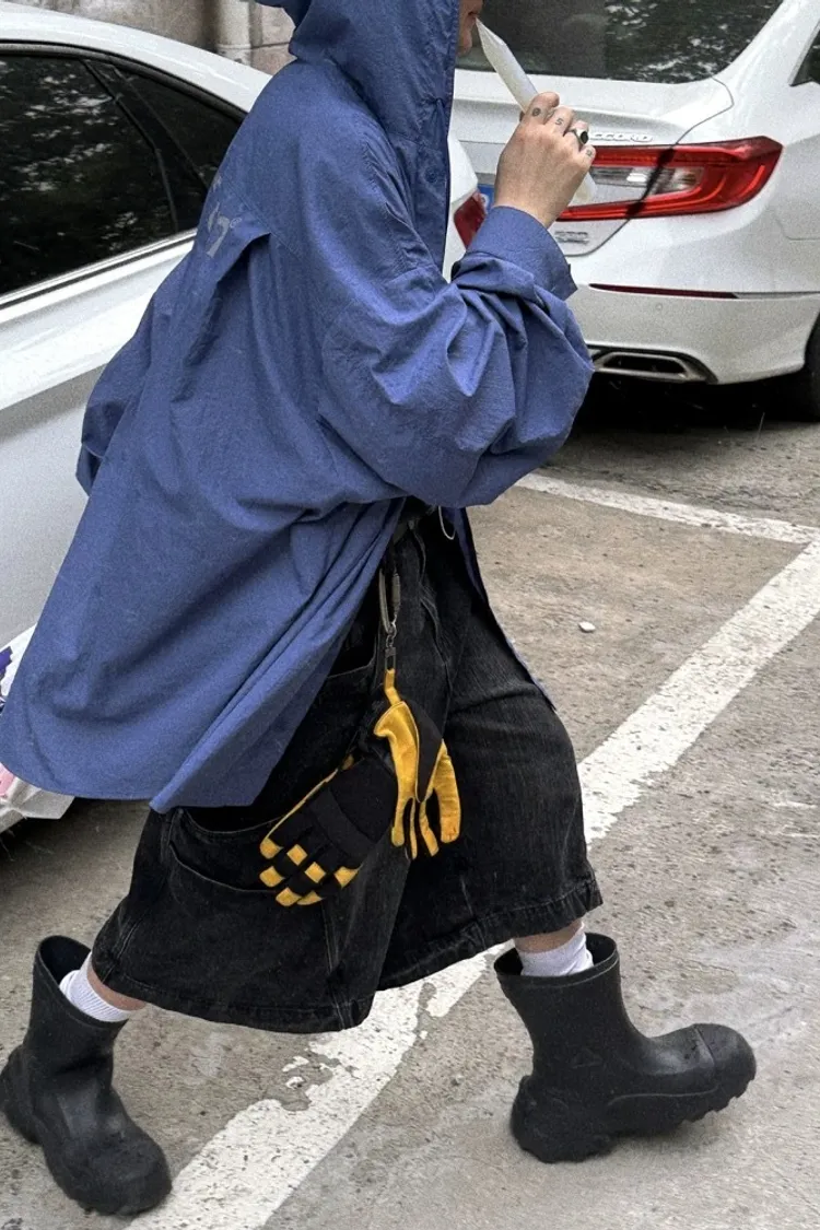 ARGUE 脊骨 卯釘水洗 寬短 牛仔外套(水洗黑/水洗藍)