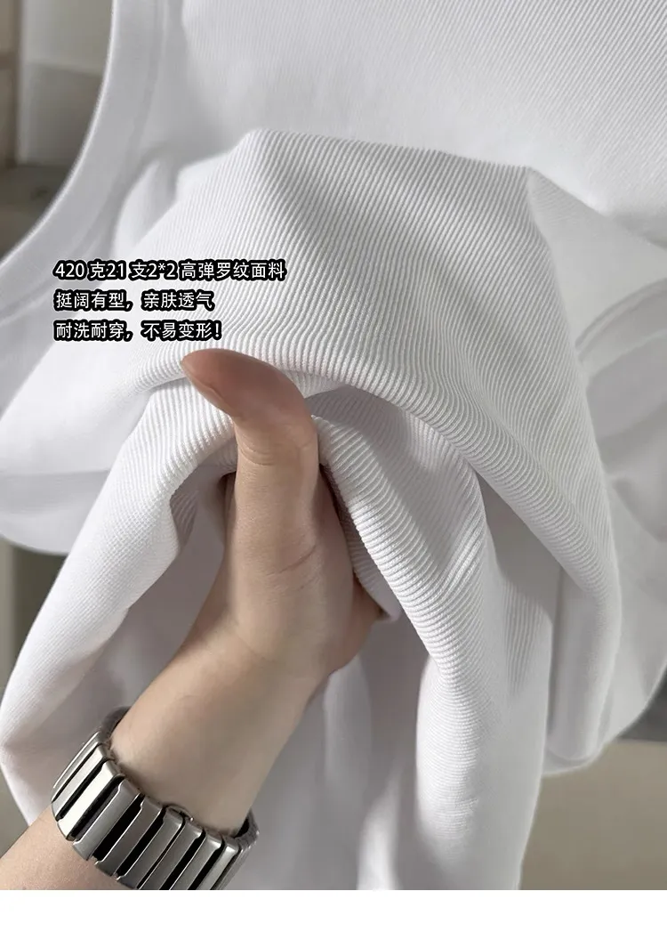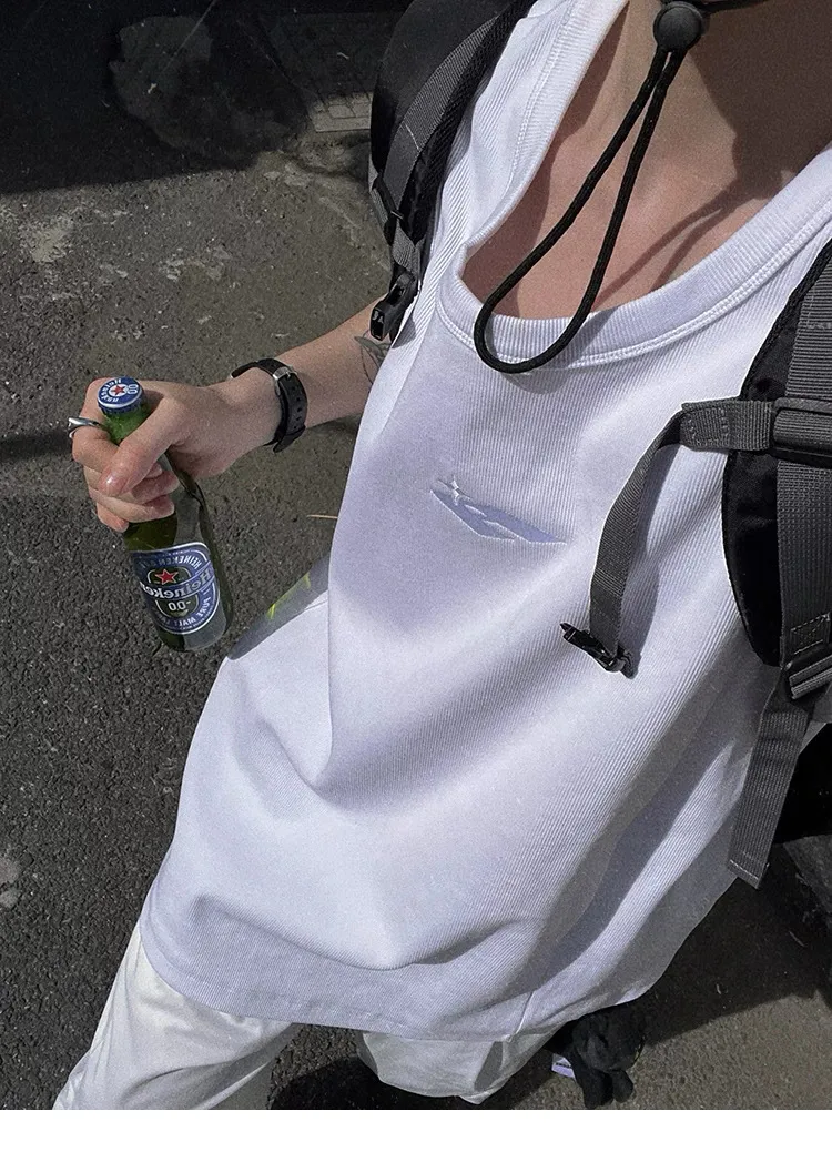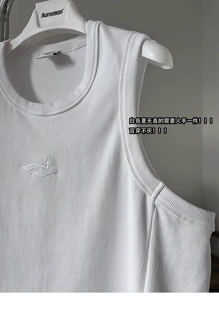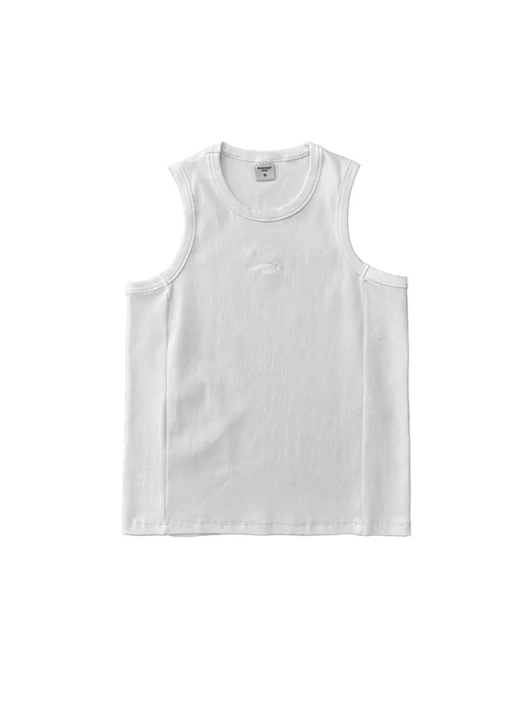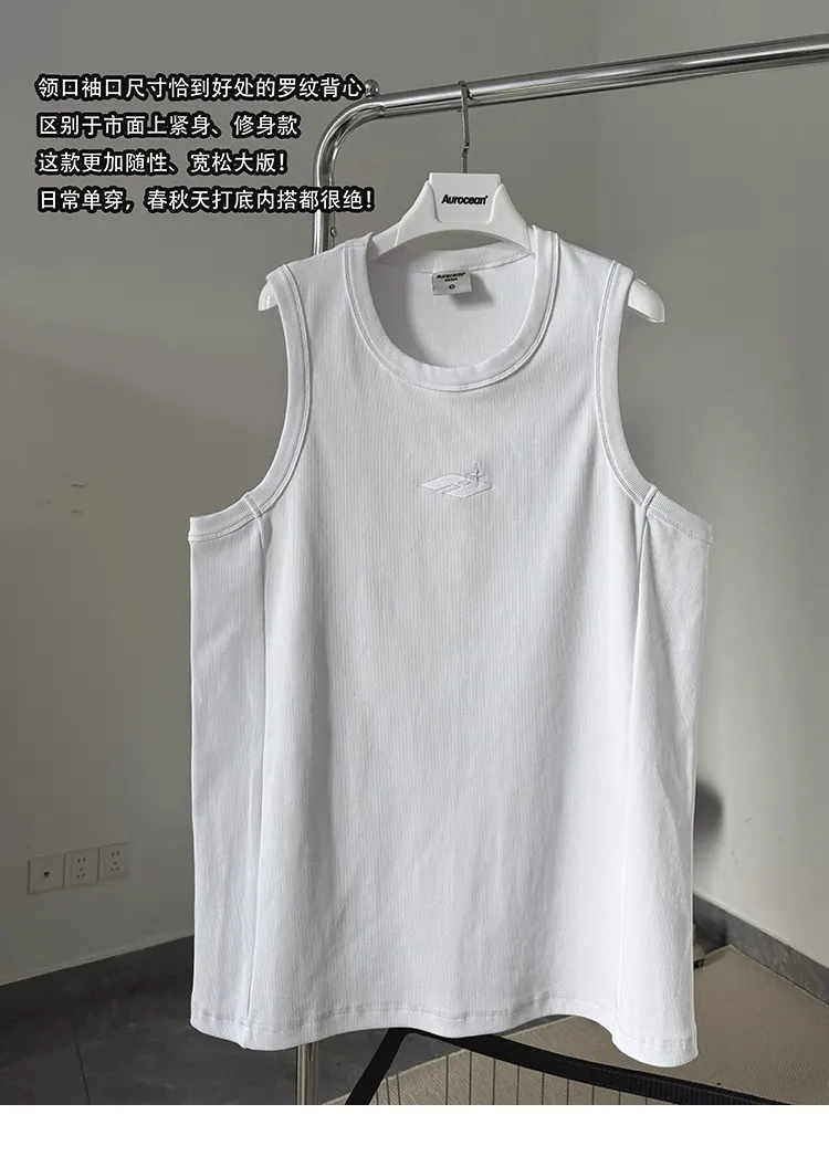 AUROCEAN 420G 重磅螺紋 刺繡 背心(白色)