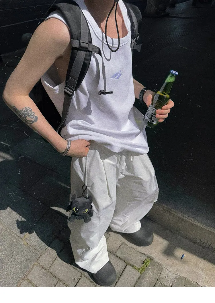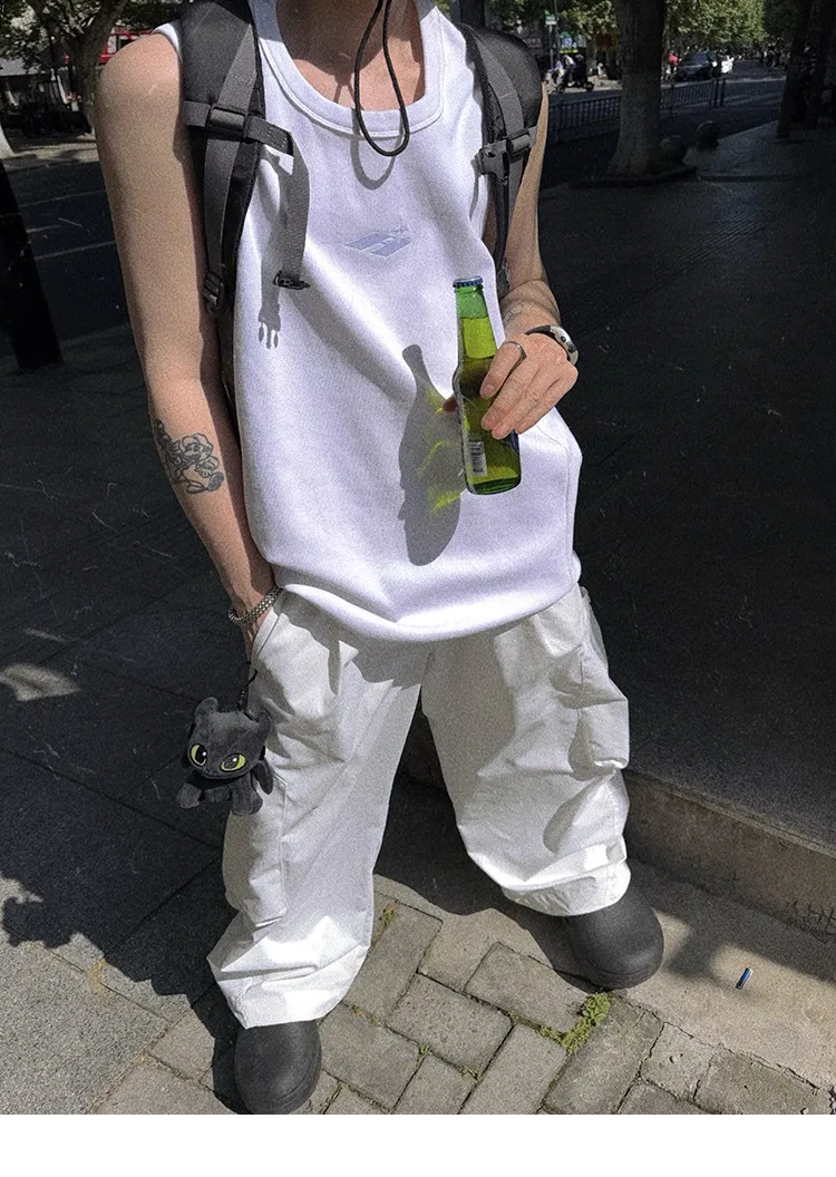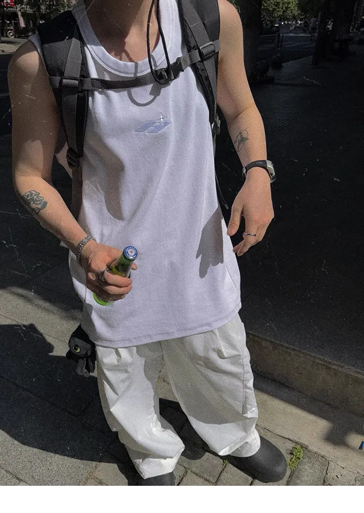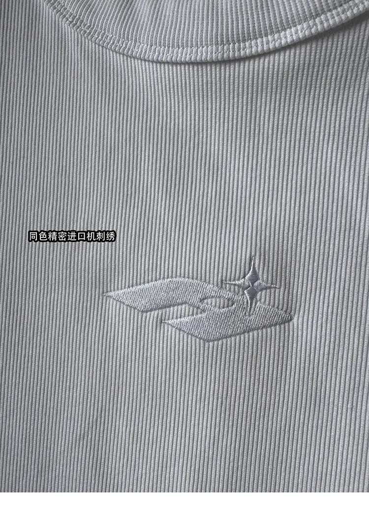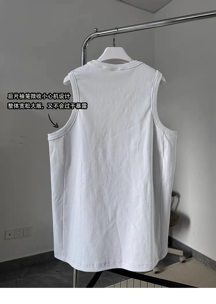 AUROCEAN 420G 重磅螺紋 刺繡 背心(白色)