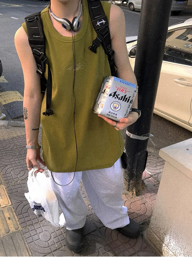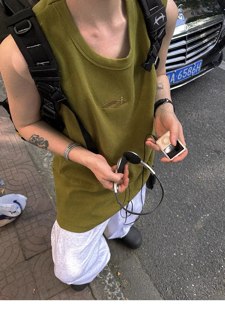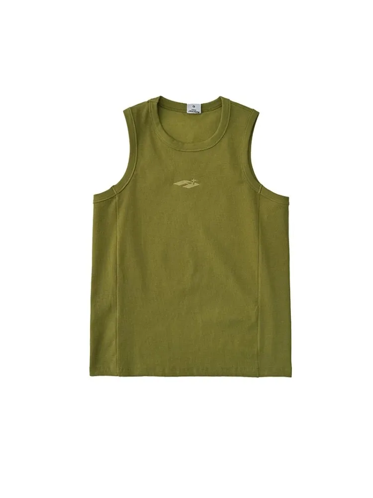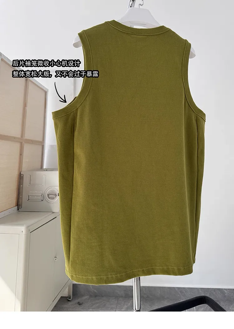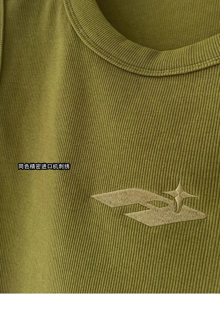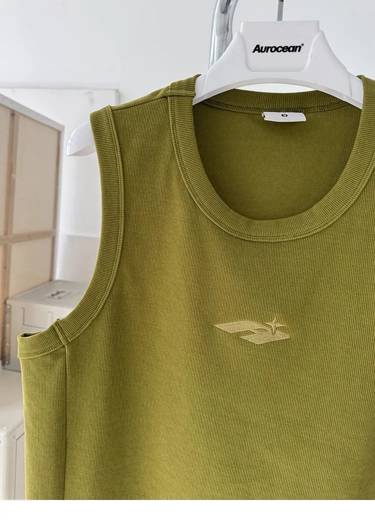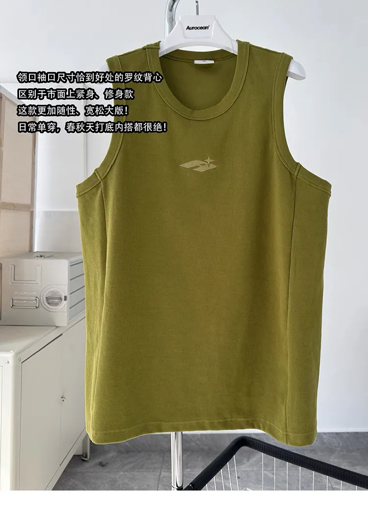 AUROCEAN 420G 重磅螺紋 刺繡 背心(花果綠)