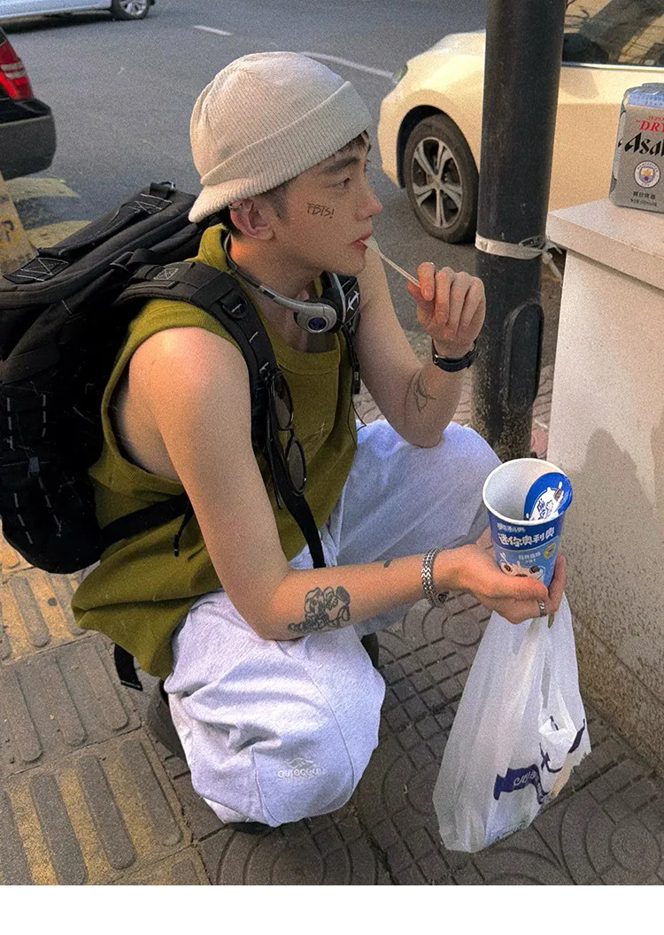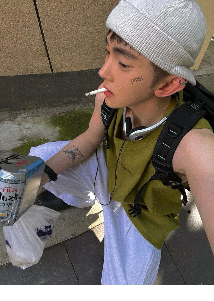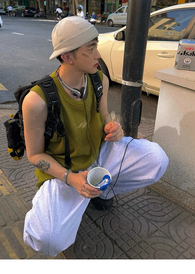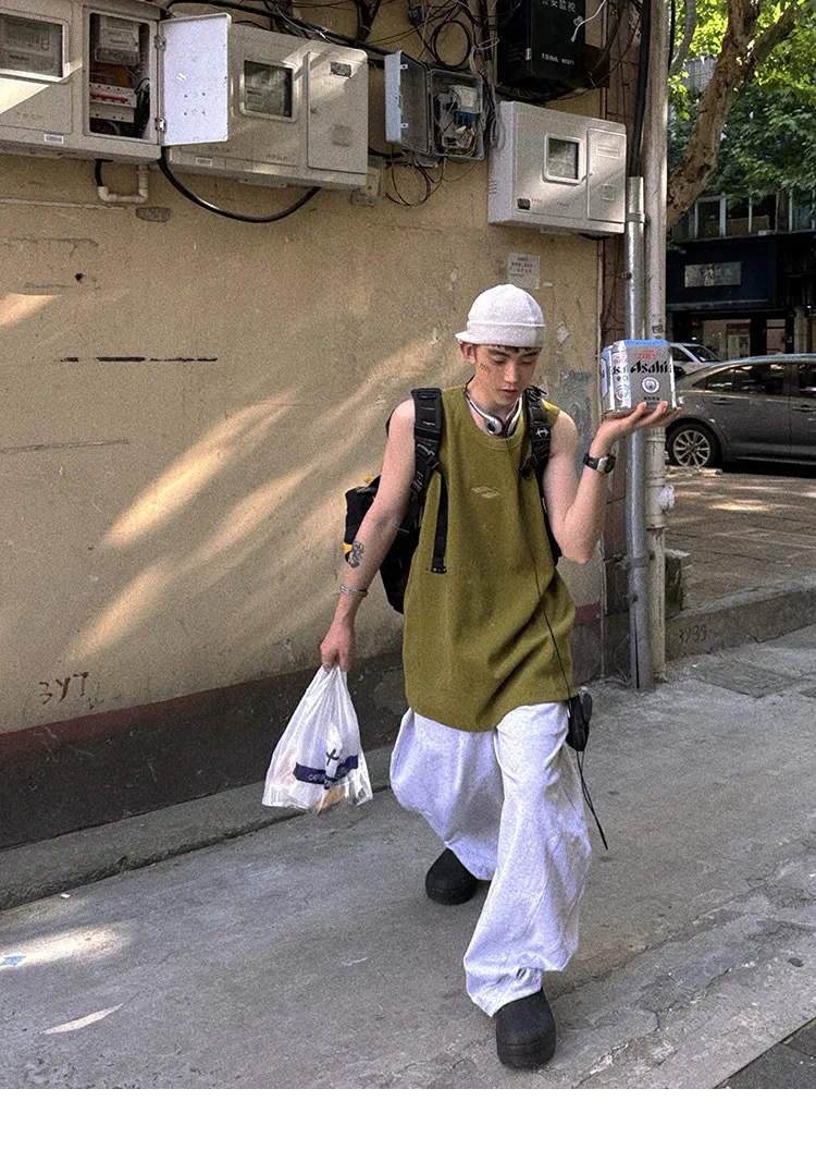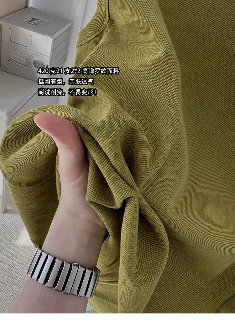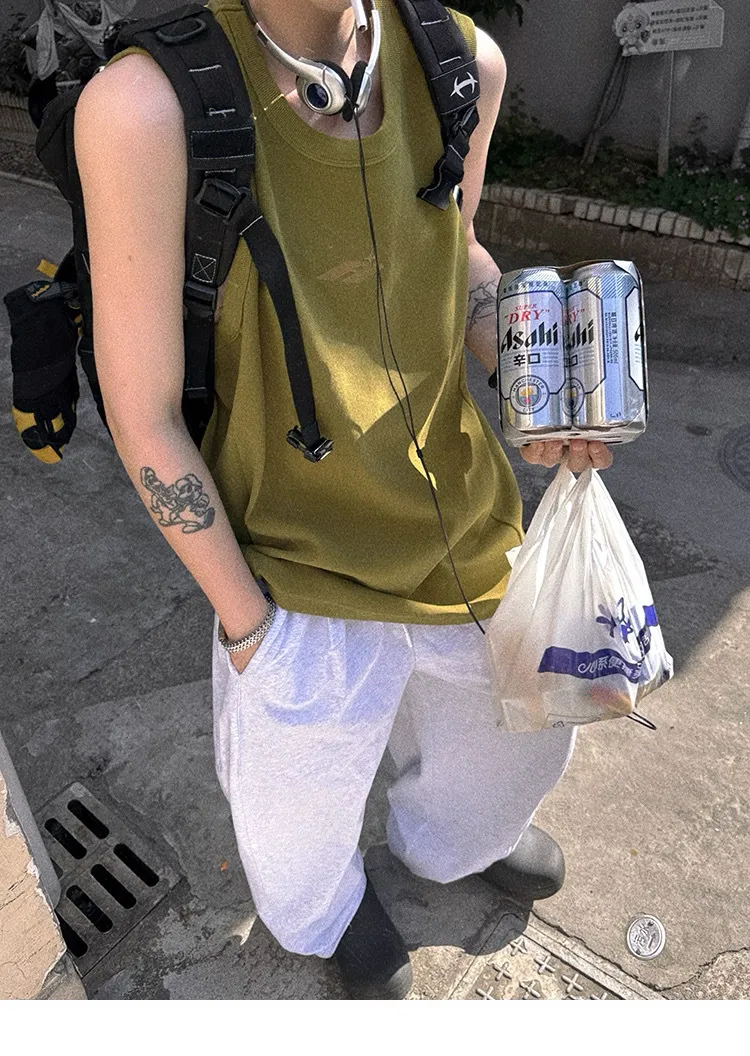 AUROCEAN 420G 重磅螺紋 刺繡 背心(花果綠)